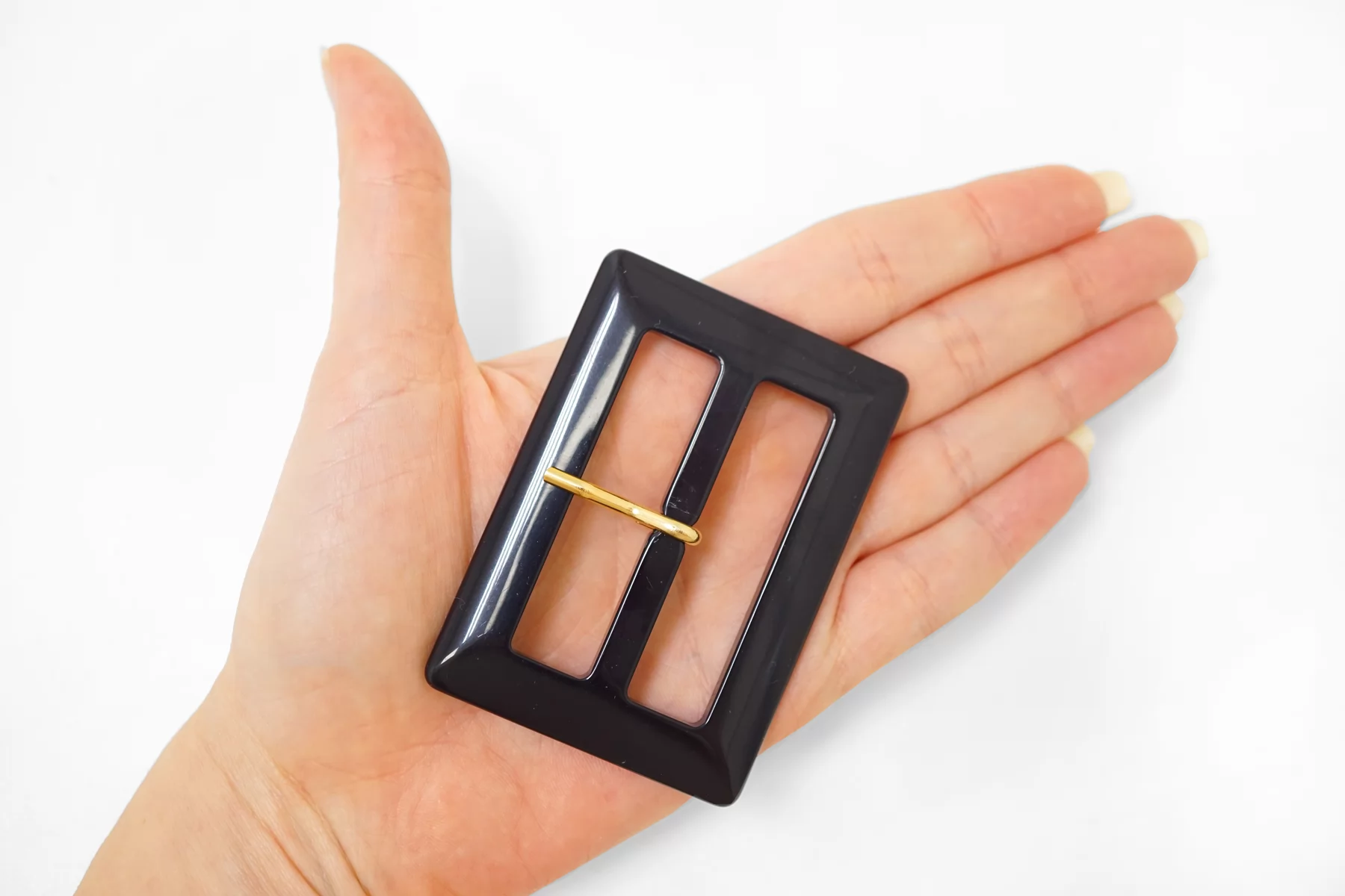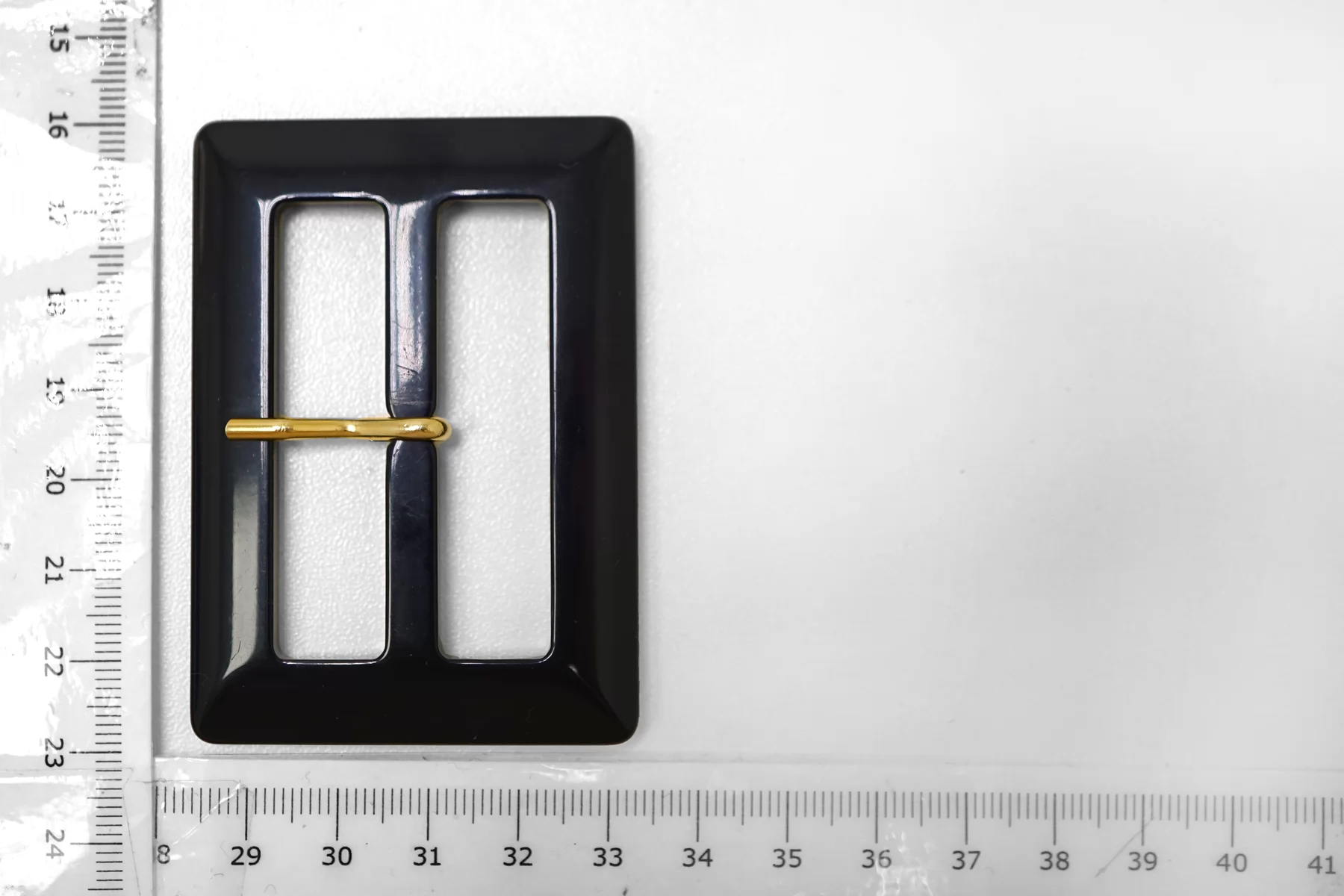 Пряжка из пластмассы, черно-синего цвета. Внутренний размер (для ремешка) - 50 мм. Пряжка с металлическим язычком.
