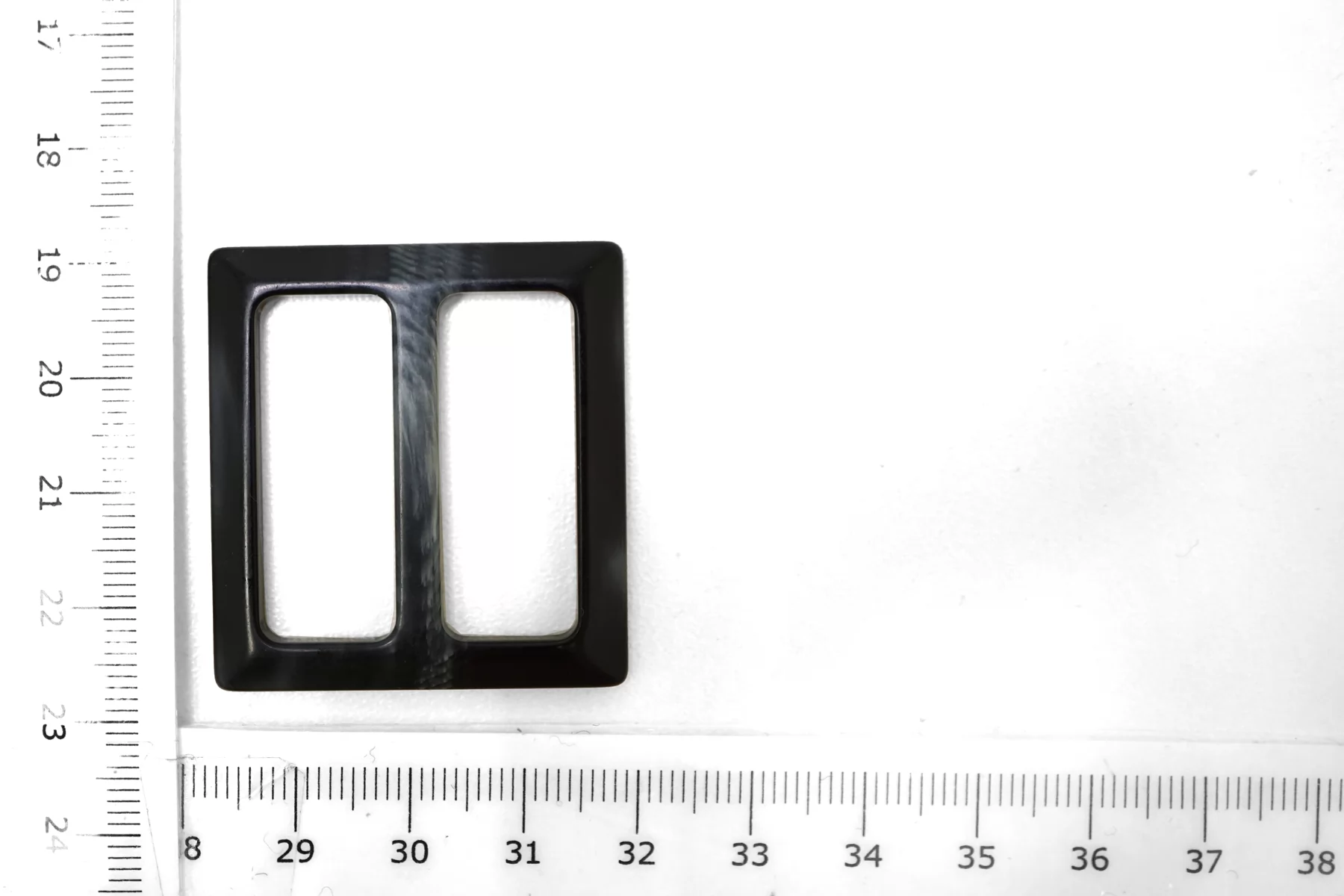 Пряжка прямоугольная из пластмассы, цвета графит (тёмно-серый). Внутренний размер (для ремешка) - 30 мм.