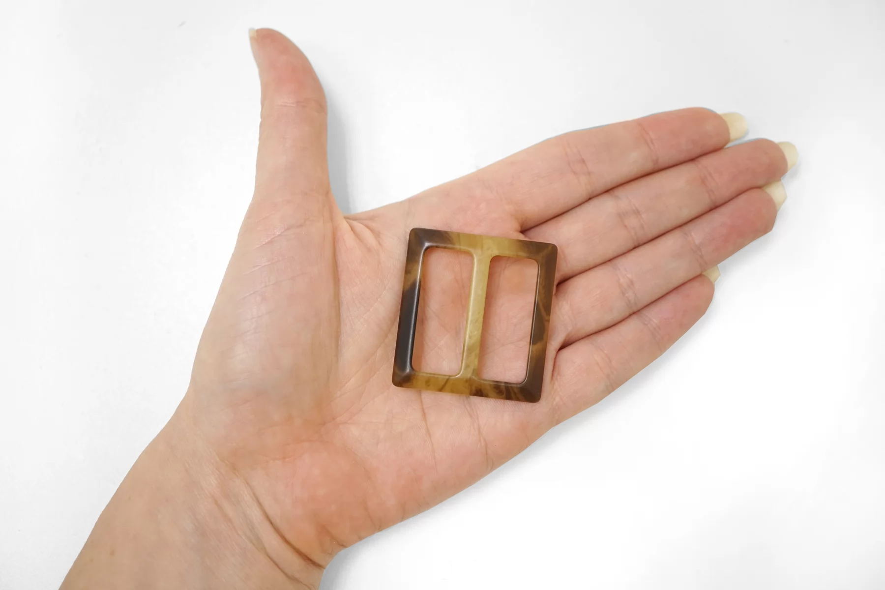 Пряжка прямоугольная из пластмассы, коричнево-бежевого цвета под рог . Внутренний размер (для ремешка) - 30 мм.