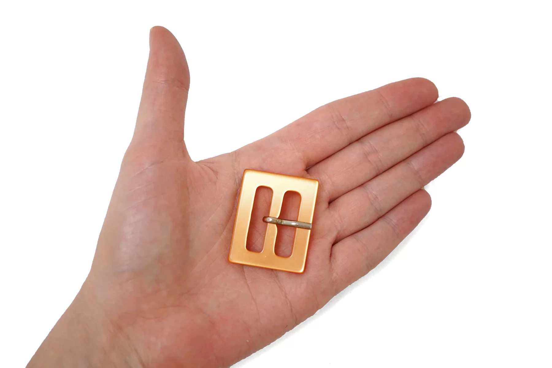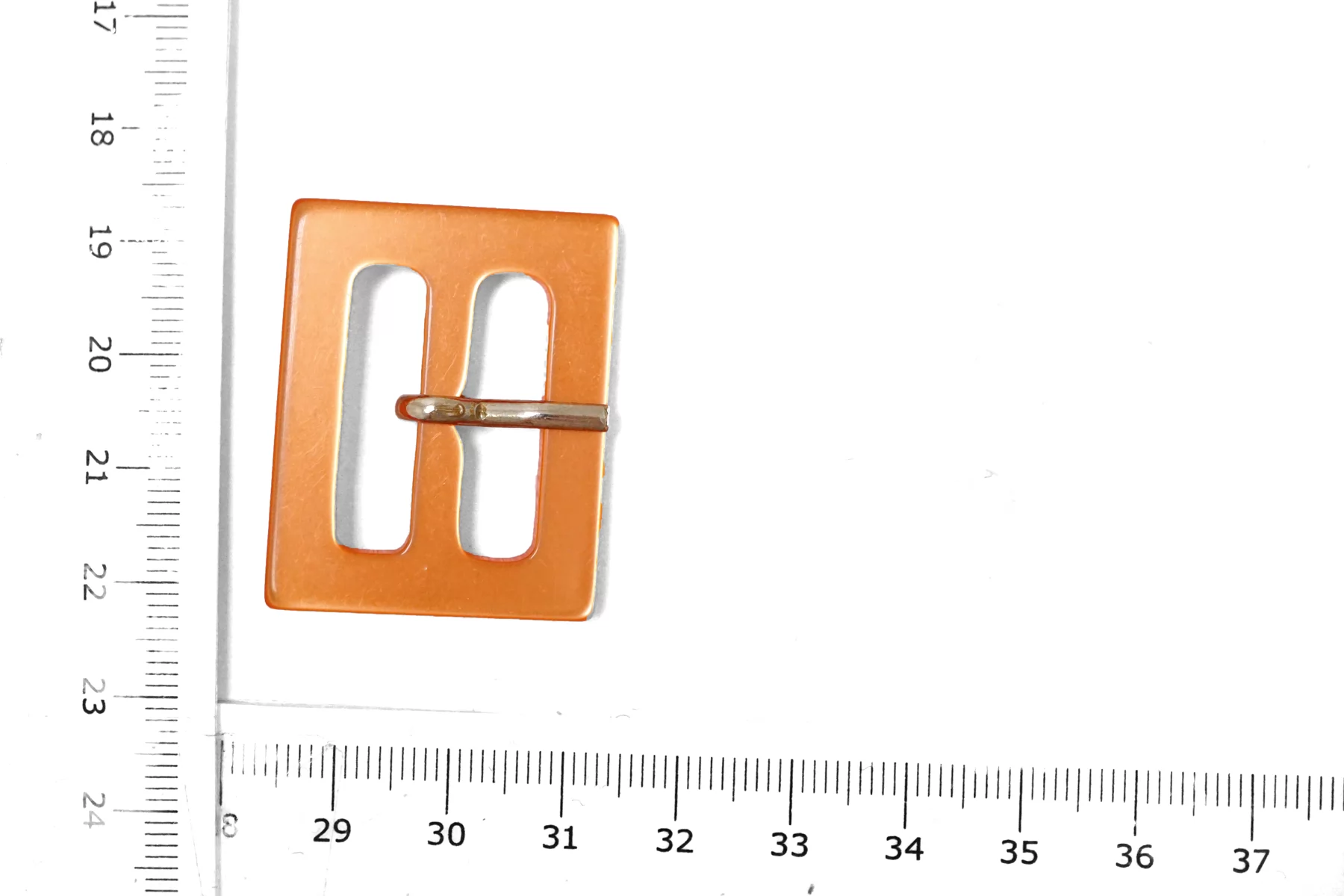 Пряжка прямоугольная из пластмассы, оранжевого цвета с перламутром . Внутренний размер (для ремешка) - 25 мм.
