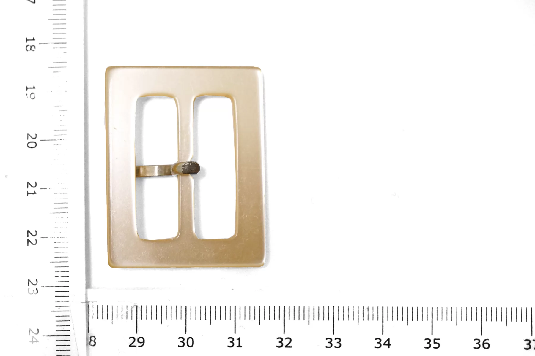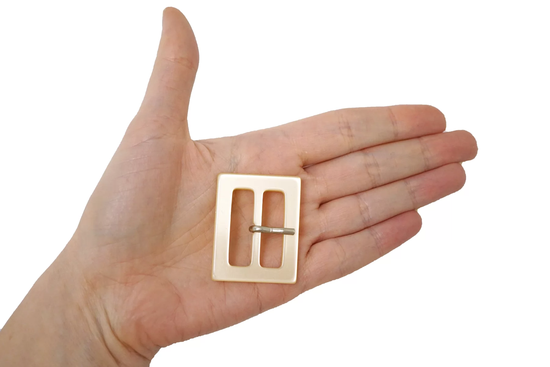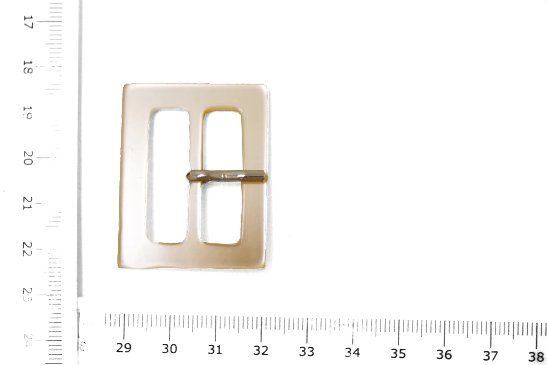 Пряжка прямоугольная из пластмассы, светлого персикового цвета с перламутром . Внутренний размер (для ремешка) - 30 мм.