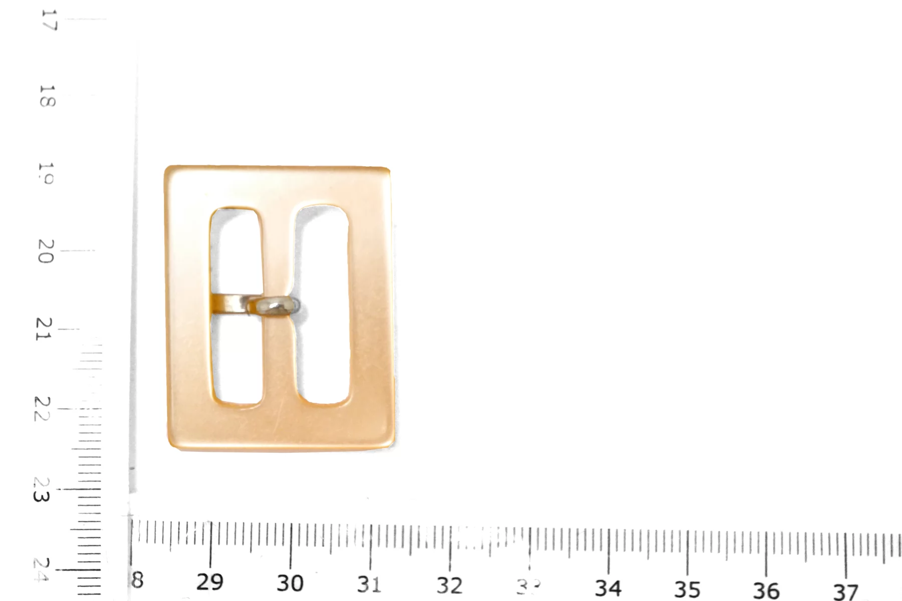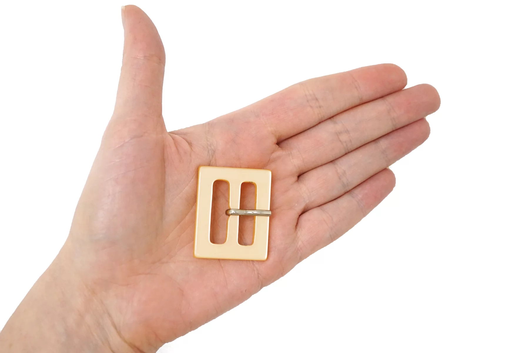 Пряжка прямоугольная из пластмассы, светло-персикового цвета с перламутром . Внутренний размер (для ремешка) - 25 мм.