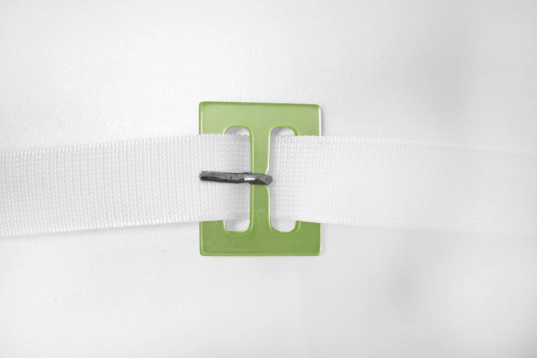 Прямоугольная пряжка из пластмассы, зелёного цвета с перламутром. Внутренний размер (для ремешка) - 25 мм. Пряжка с металлическим язычком.