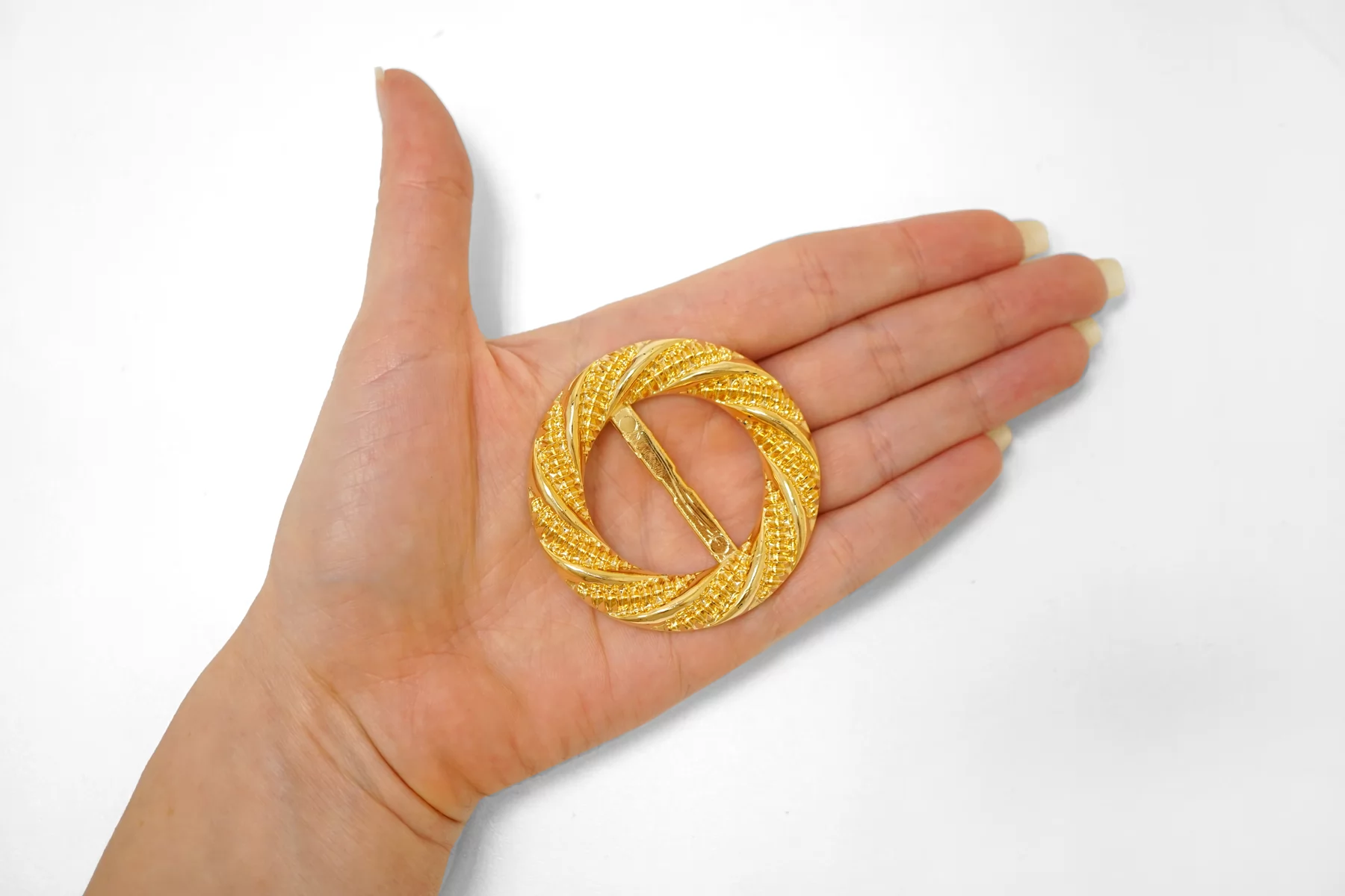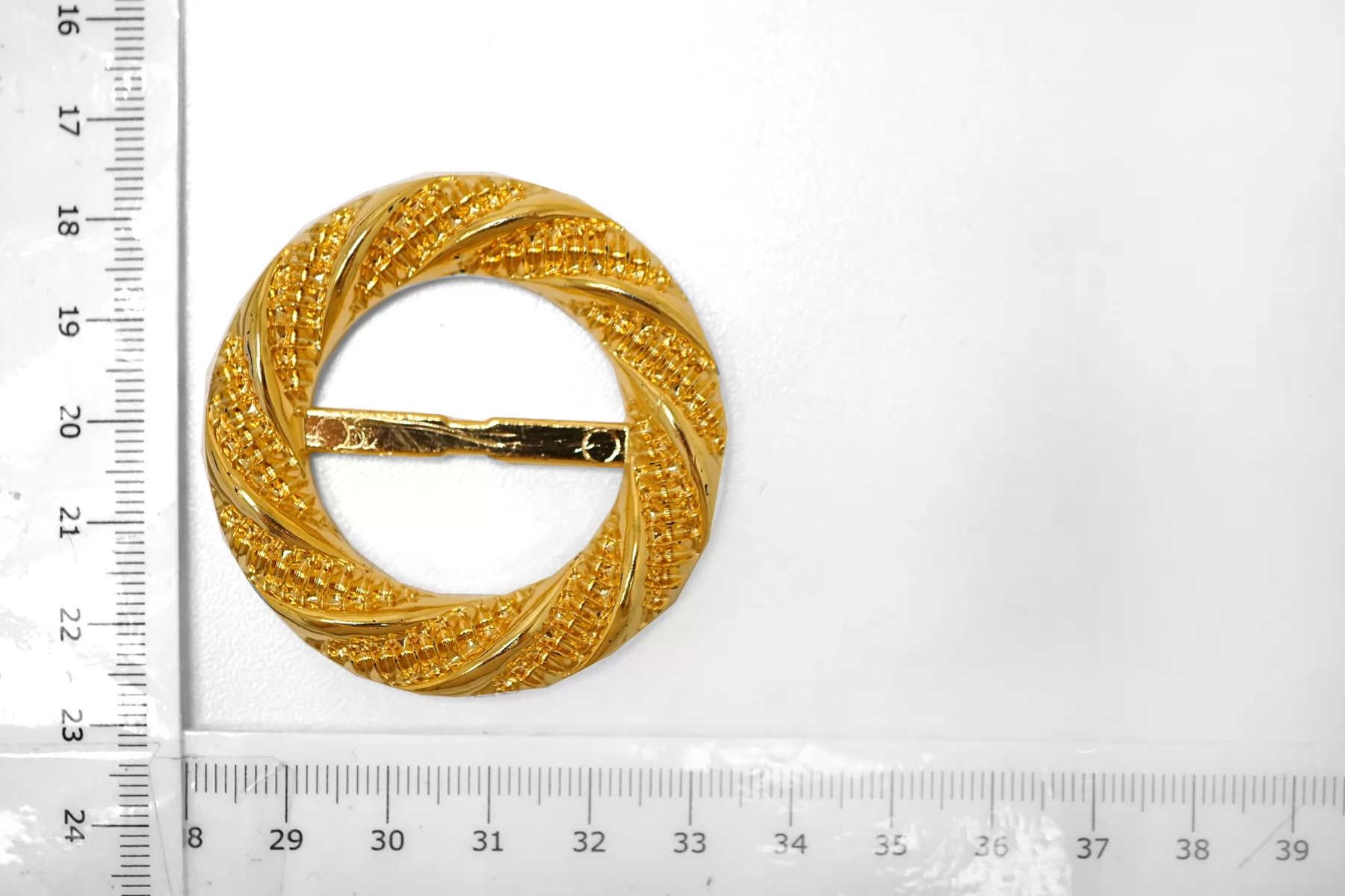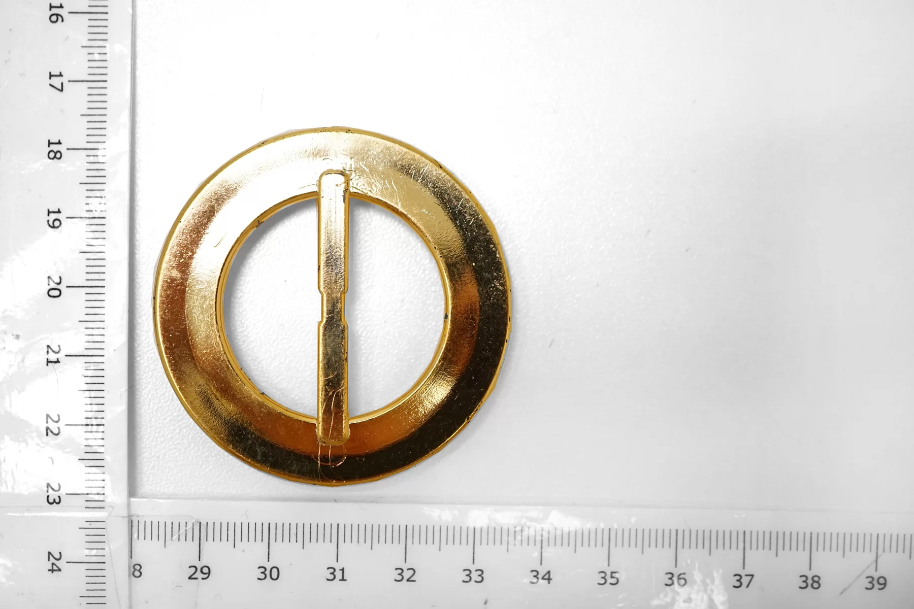 Круглая пряжка из пластмассы под металл, золотого цвета . Внутренний размер (для ремешка) - 30 мм.