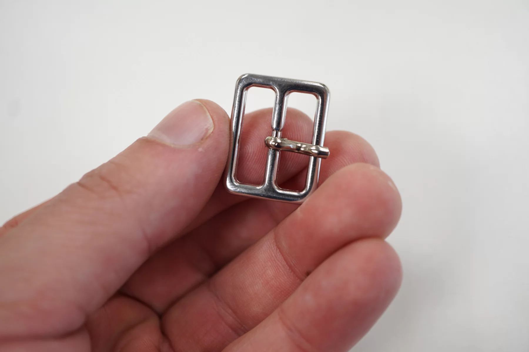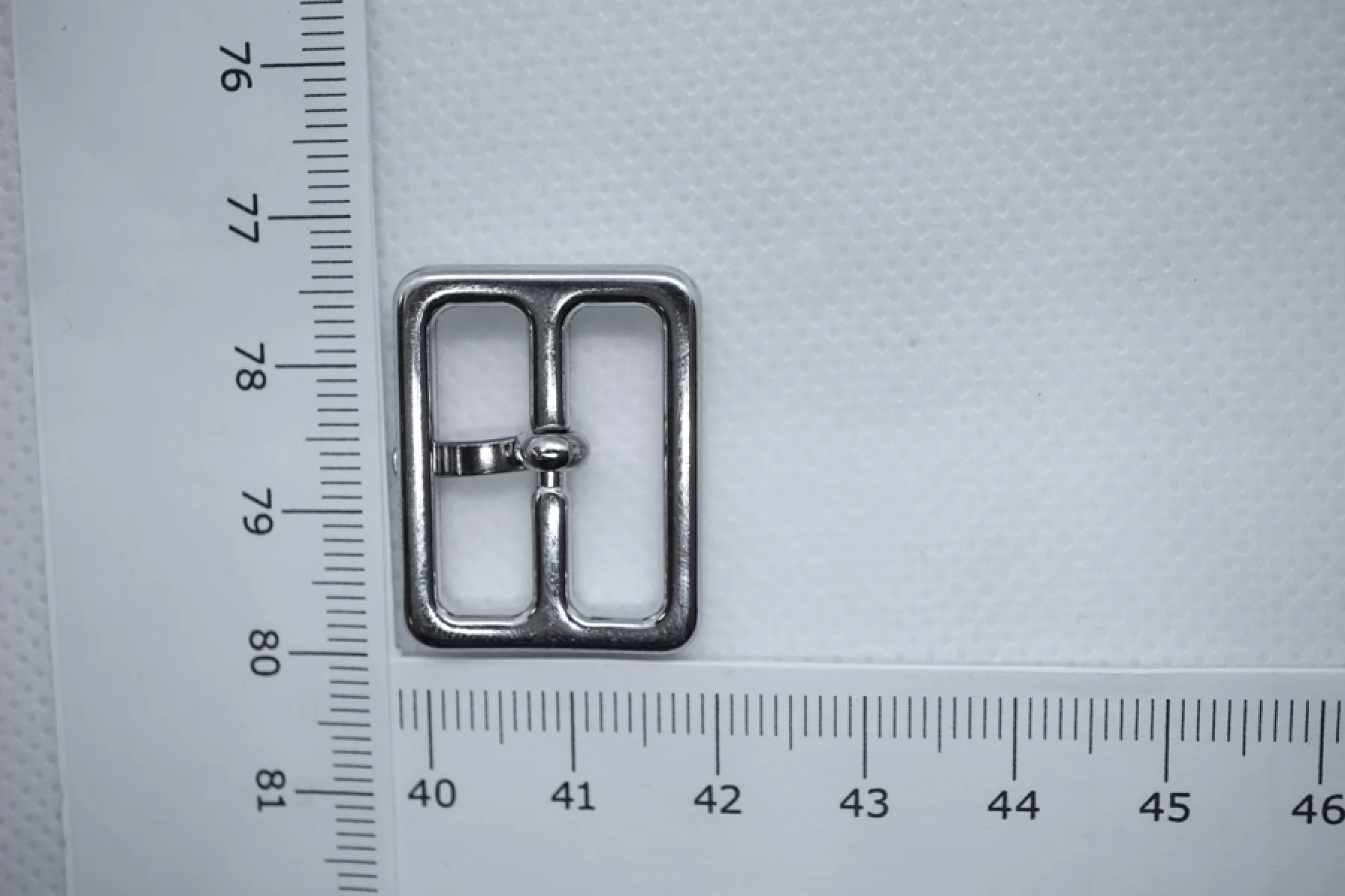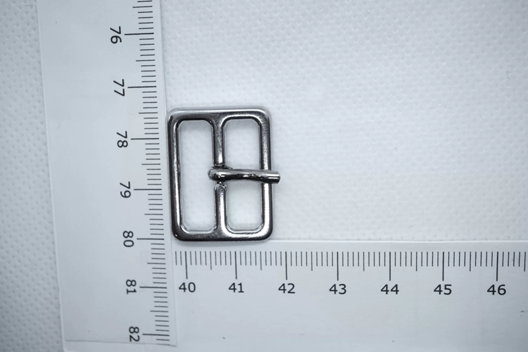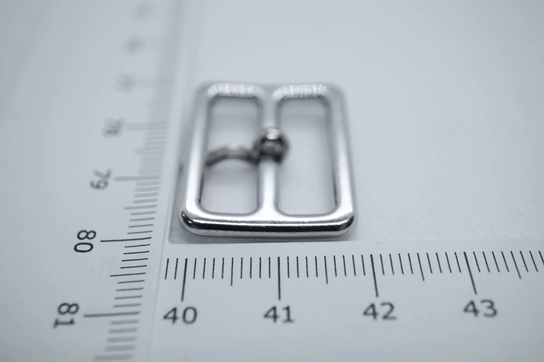 Прямоугольная пряжка из серебристого металла, размер 20х15 мм.