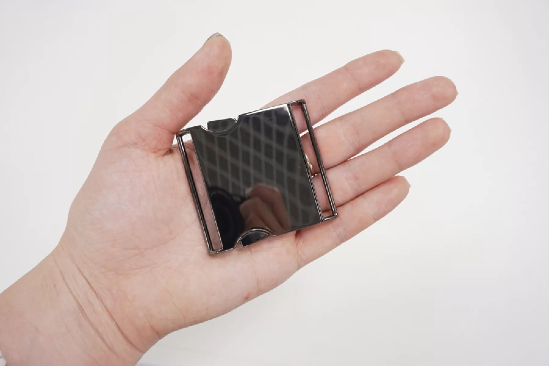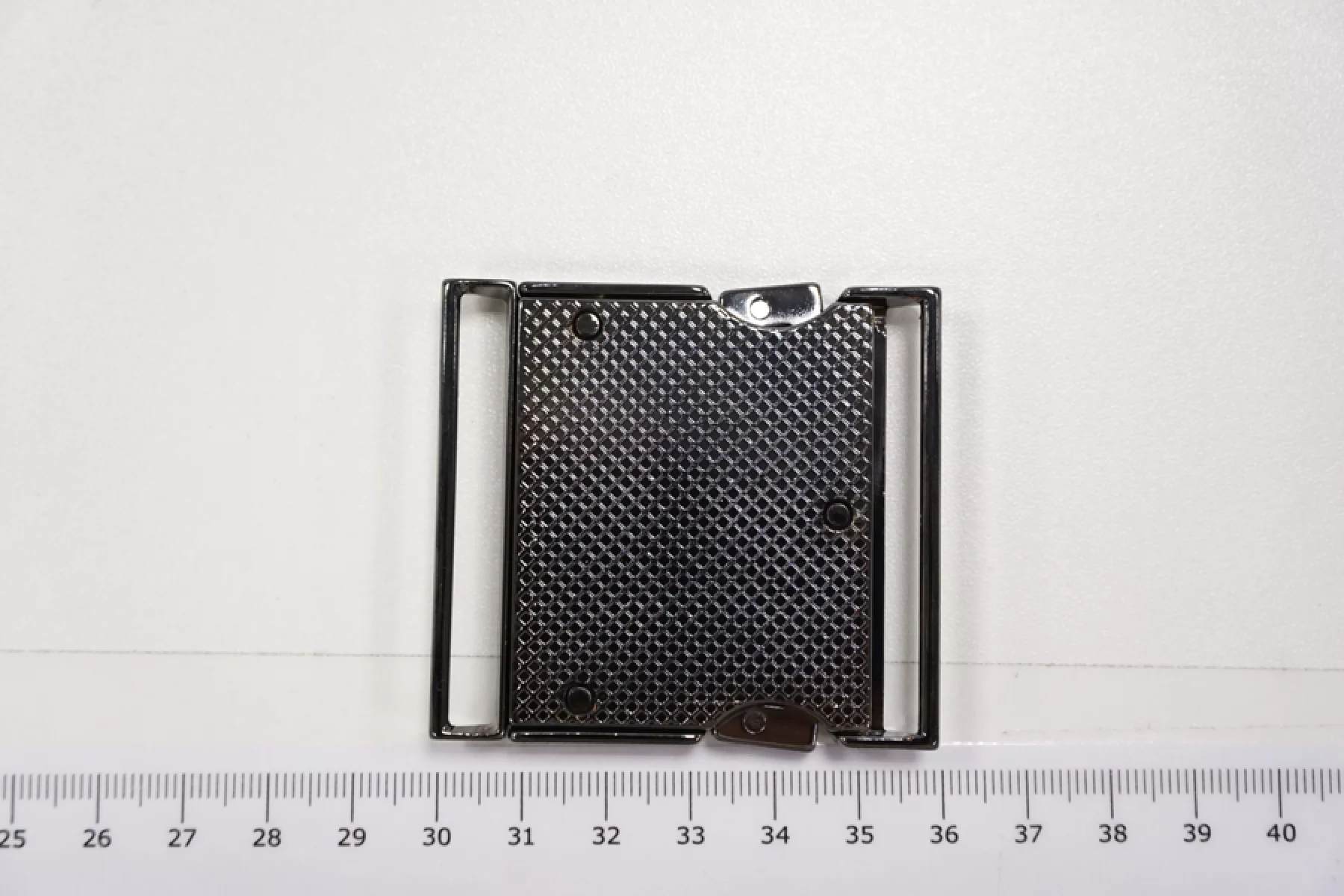 Прямоугольная объёмная пряжка из серебристого металлацвета темного никеля, двусоставная, автоматическая. размер 53х45 мм. Внутренний размер (под ширину ремешка) - 50х6 мм.