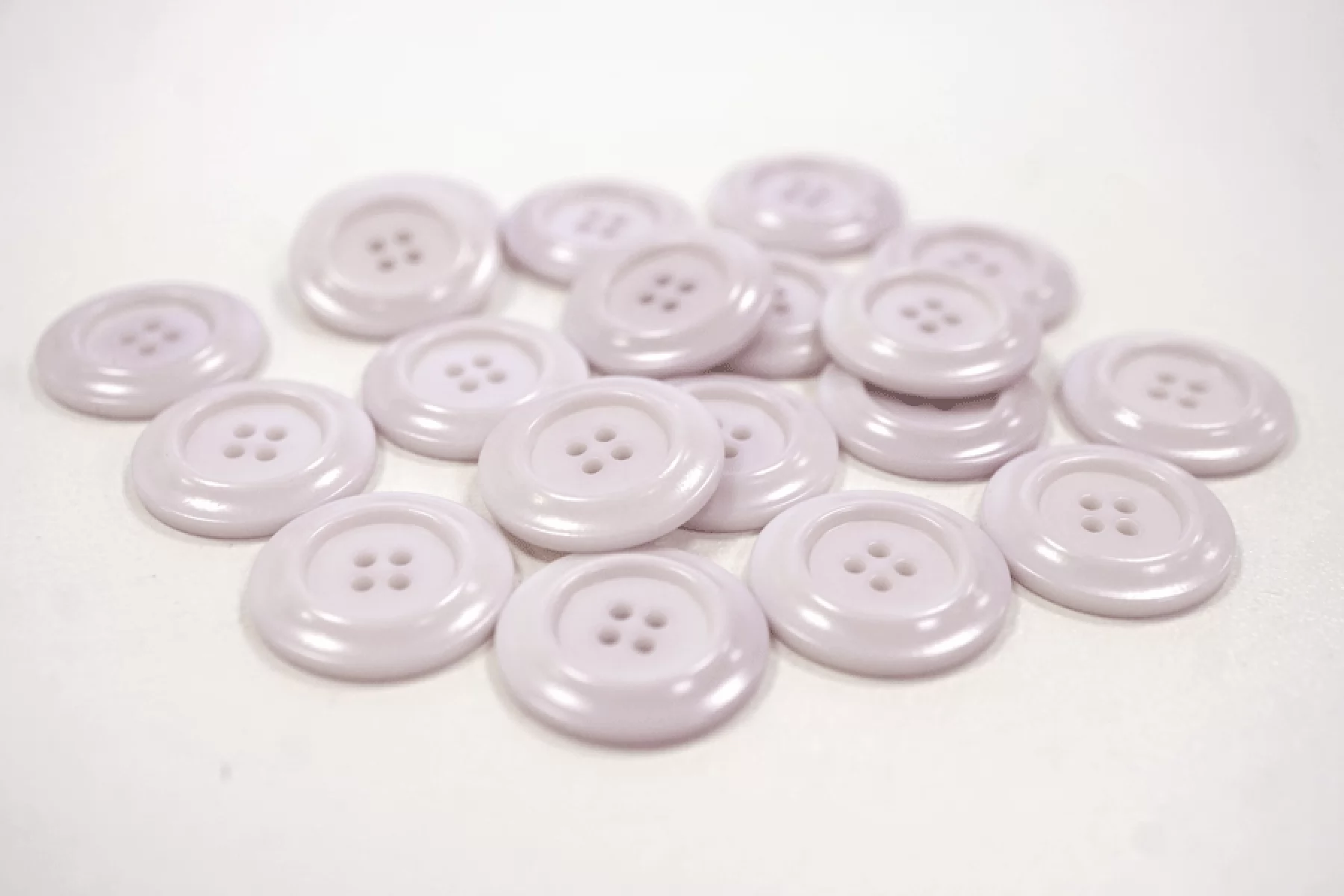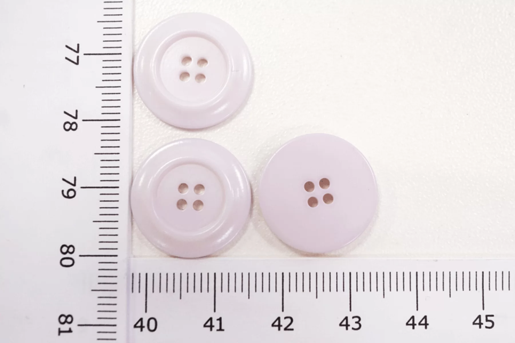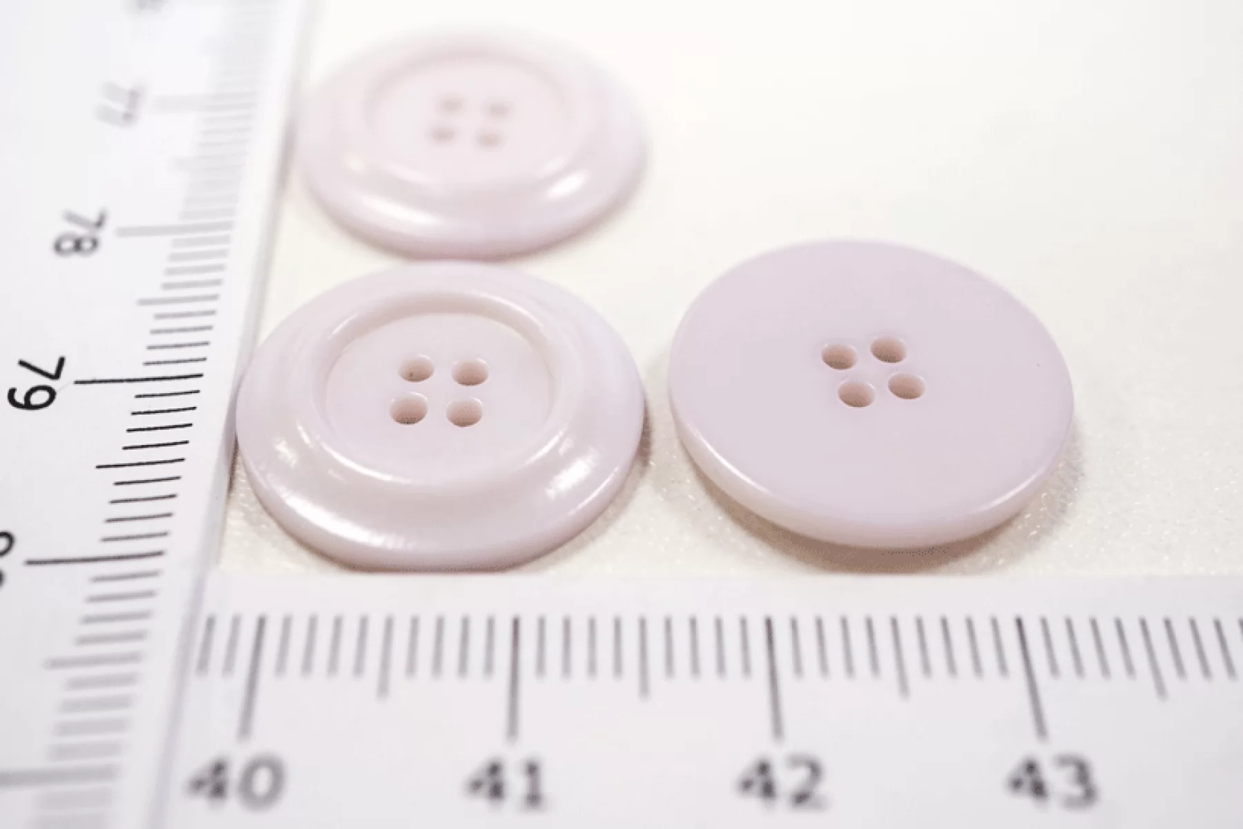 Пуговица костюмно-плательная из пластмассы, размер 17 мм, белая с розово-сиреневым подтоном.