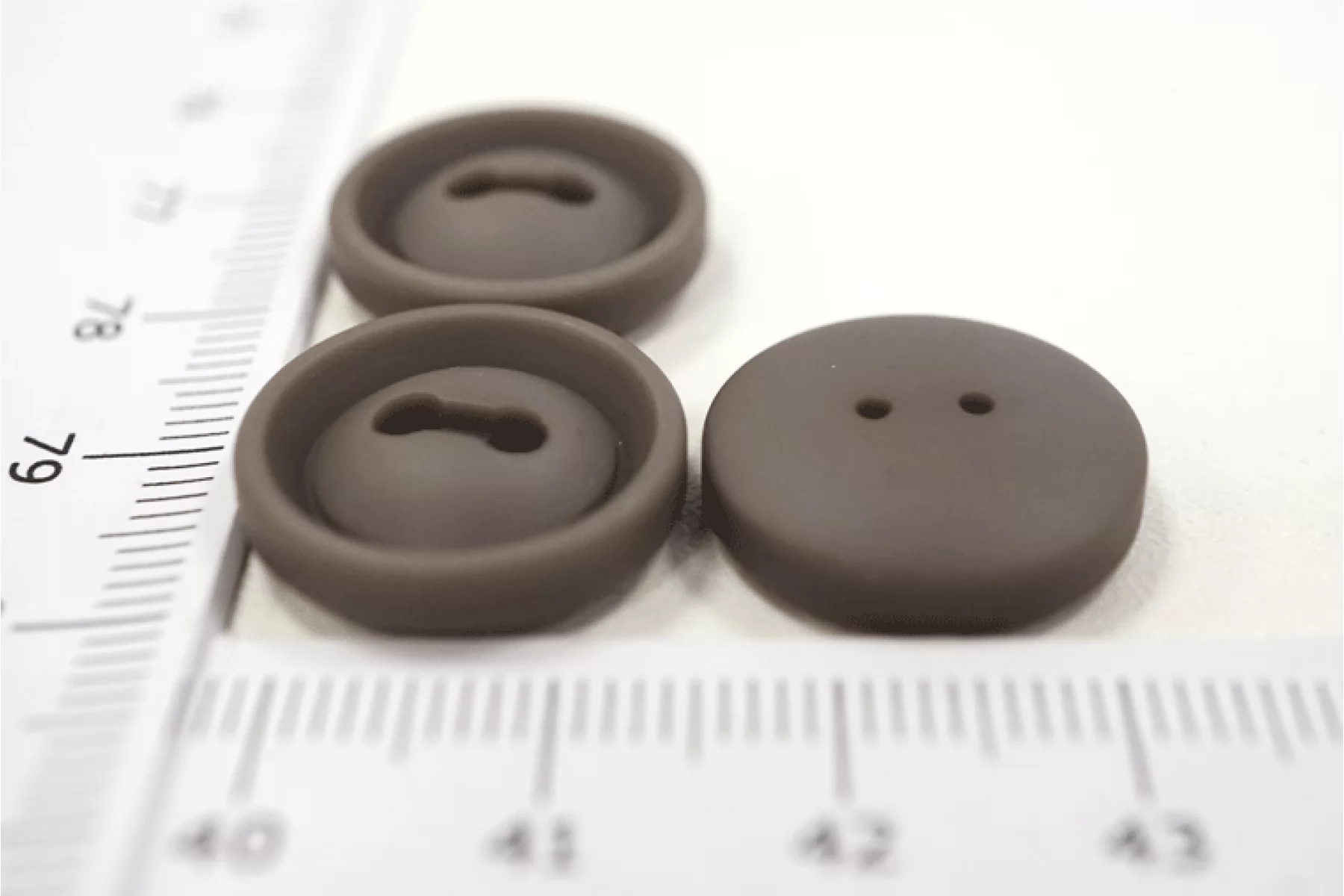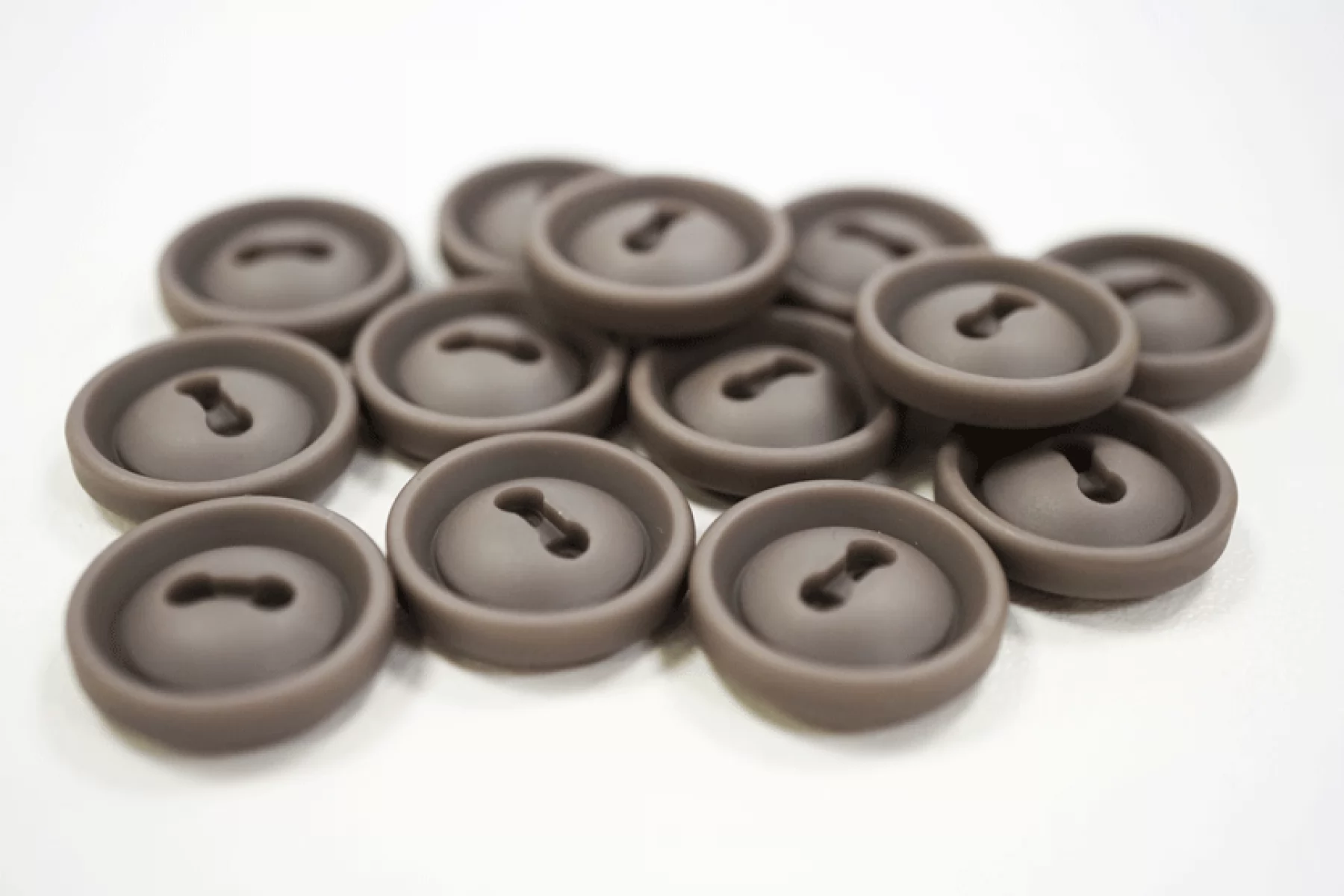 Пуговица костюмно-плательная из пластмассы, размер 17 мм, кофейного цвета, с матовой поверхностью.
