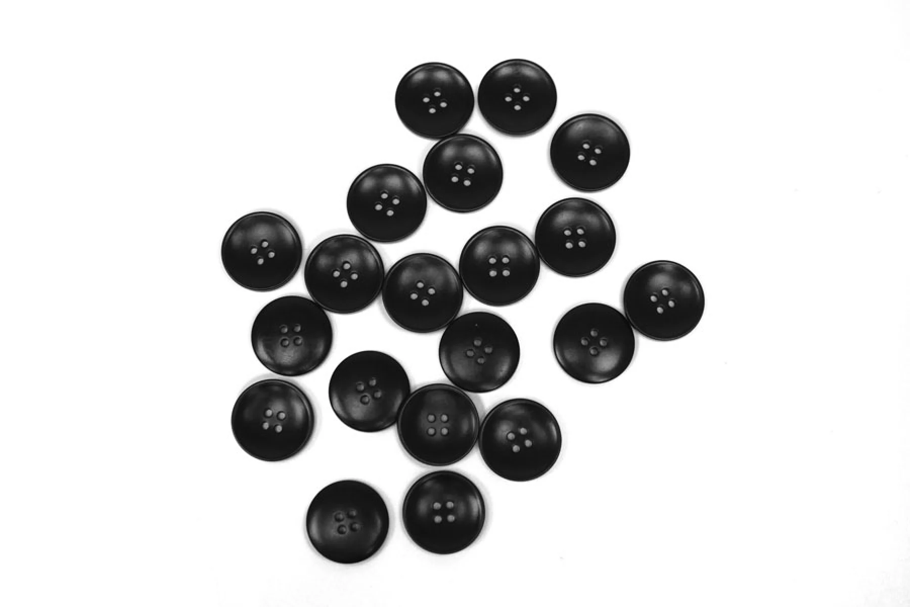 Пуговица матовая костюмно-пальтовая из пластмассы, размер 25 мм, чёрного цвета.
