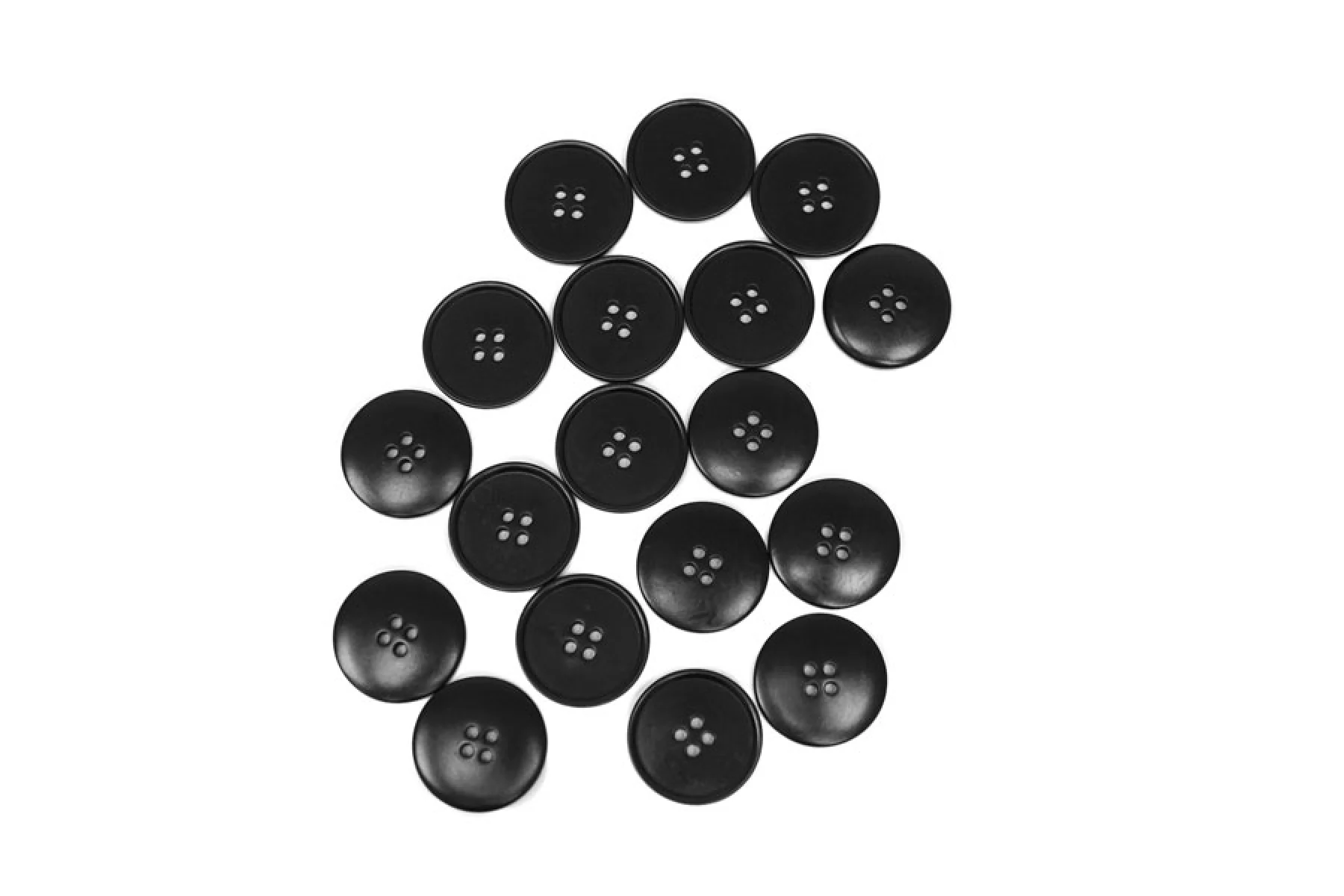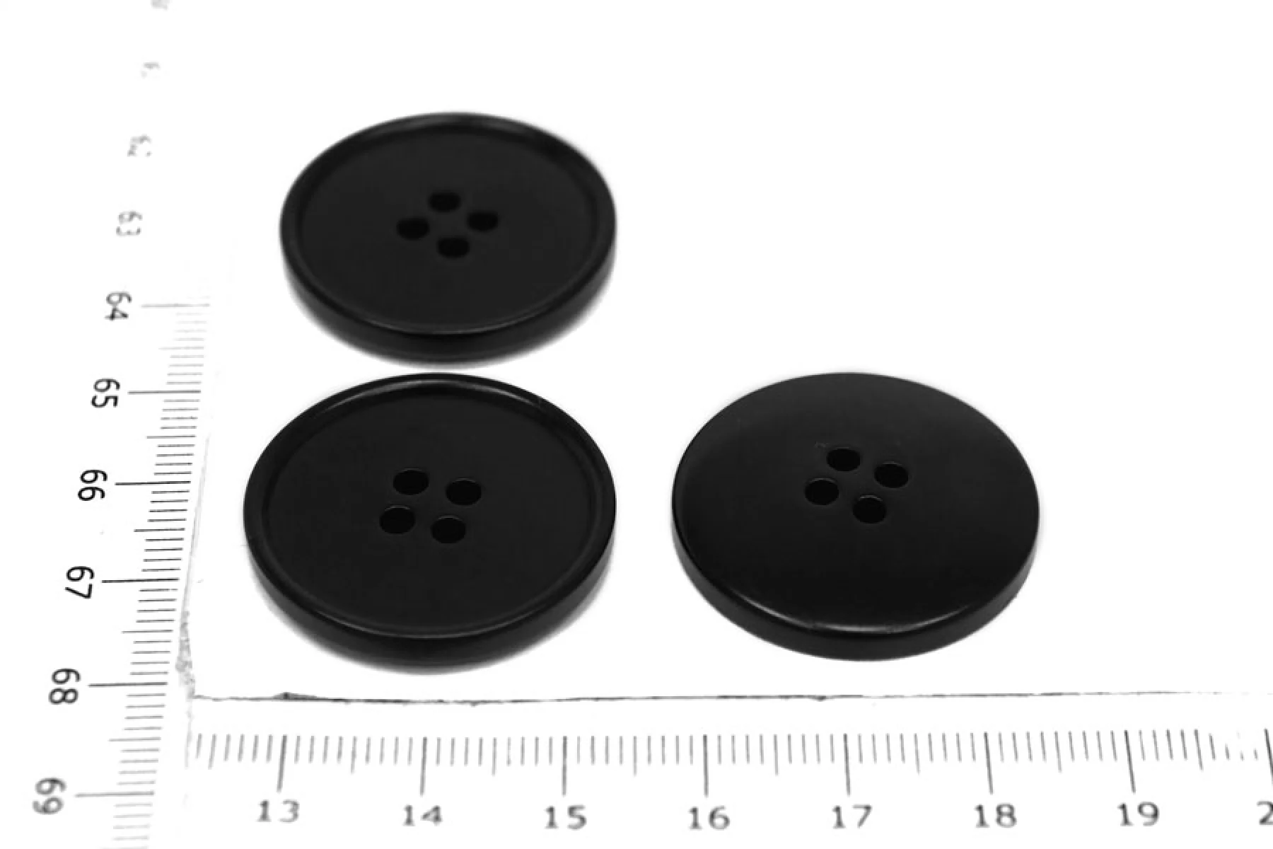 Пуговица матовая костюмно-пальтовая из пластмассы, размер 27 мм, чёрного цвета.