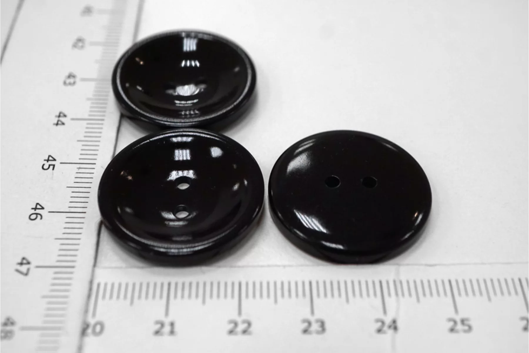 Пуговица глянцевая костюмно-пальтовая из пластмассы, размер 26 мм, чёрно-синего цвета.