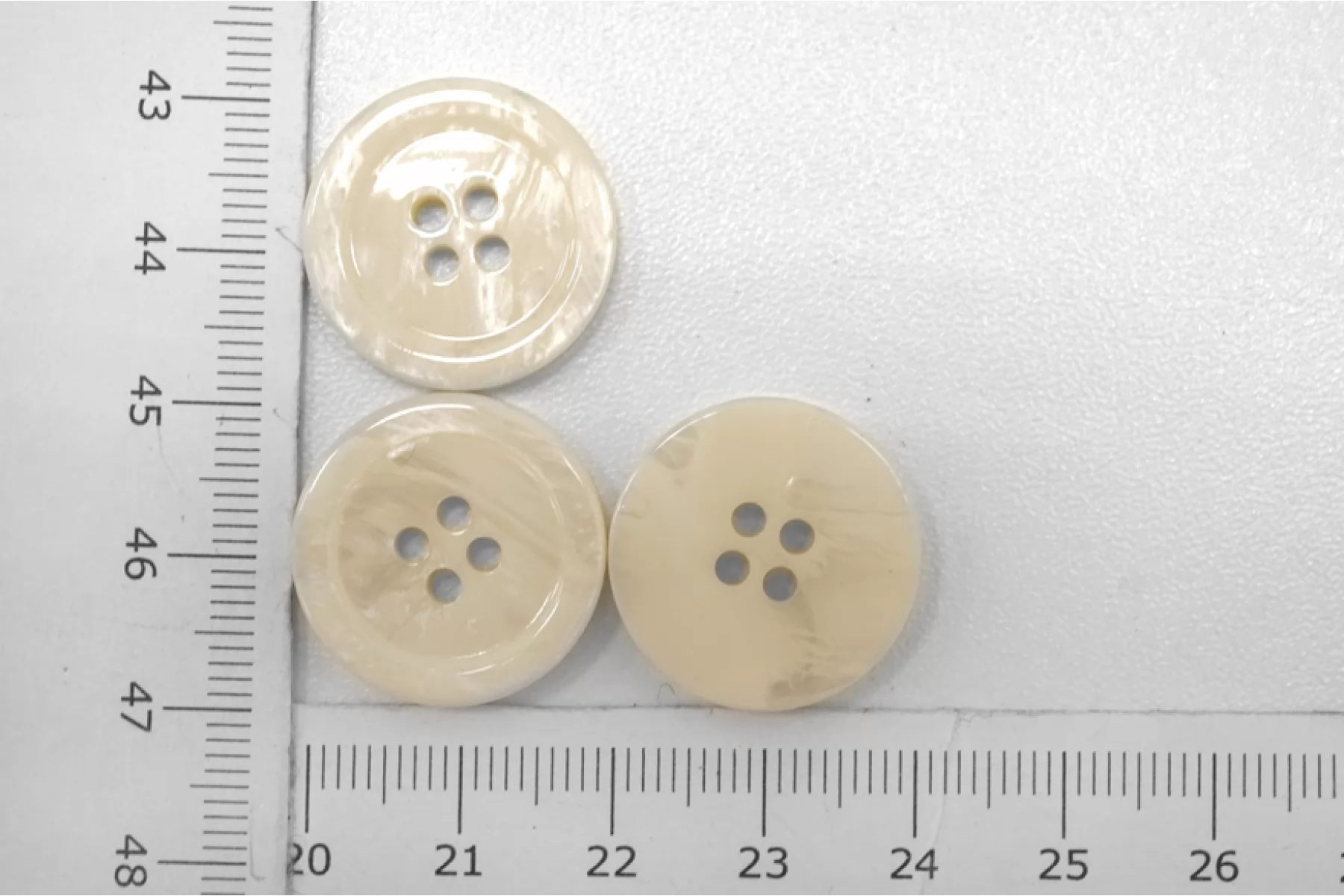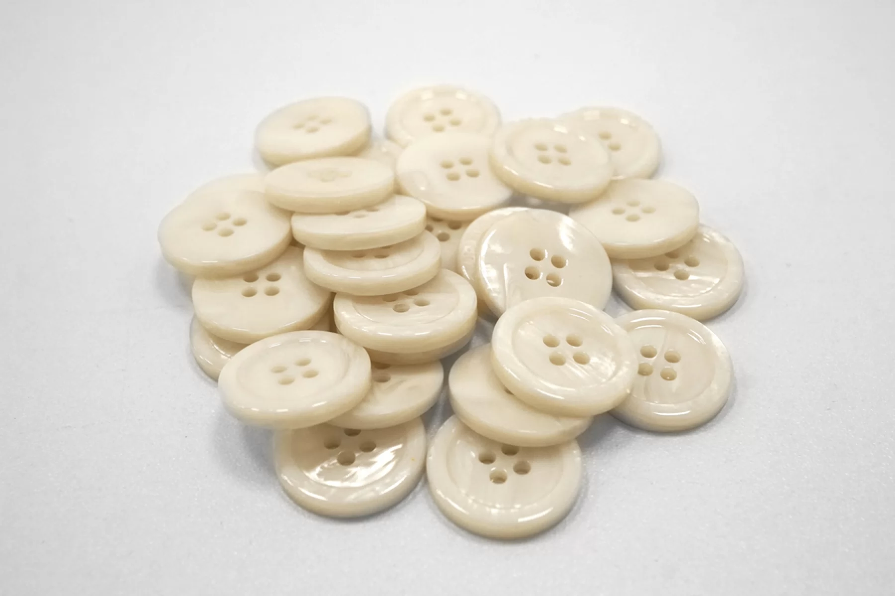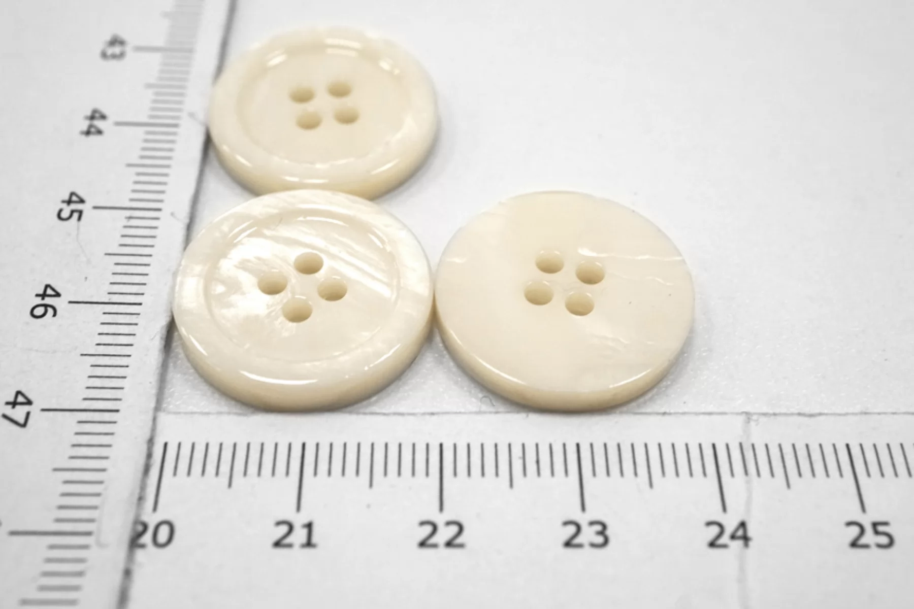 Пуговица глянцевая костюмно-пальтовая из пластмассы, размер 21 мм, молочного цвета.