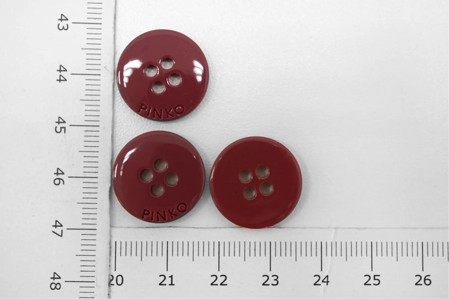 Пуговица глянцевая костюмно-пальтовая из пластмассы, размер 18 мм, ягодного цвета.