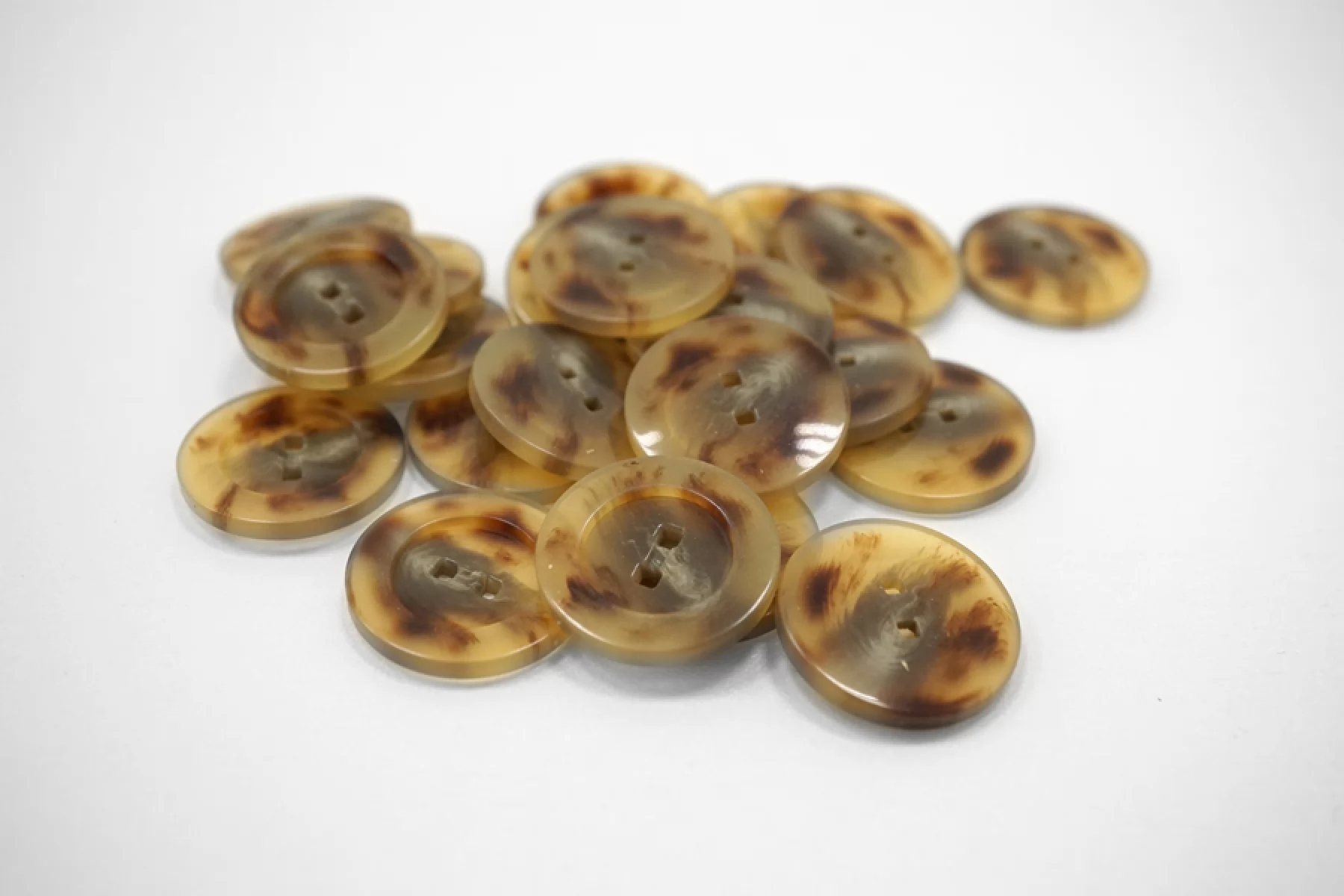 Пуговица глянцевая костюмно-пальтовая из пластмассы, размер 26 мм, под рог, янтарного цвета.