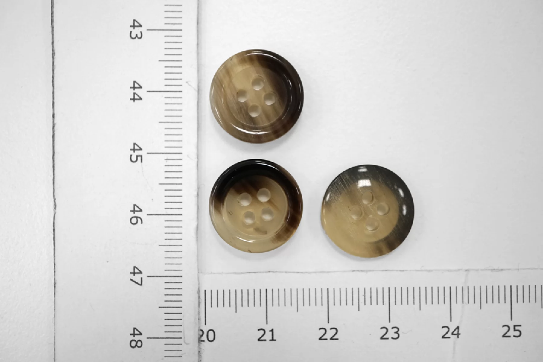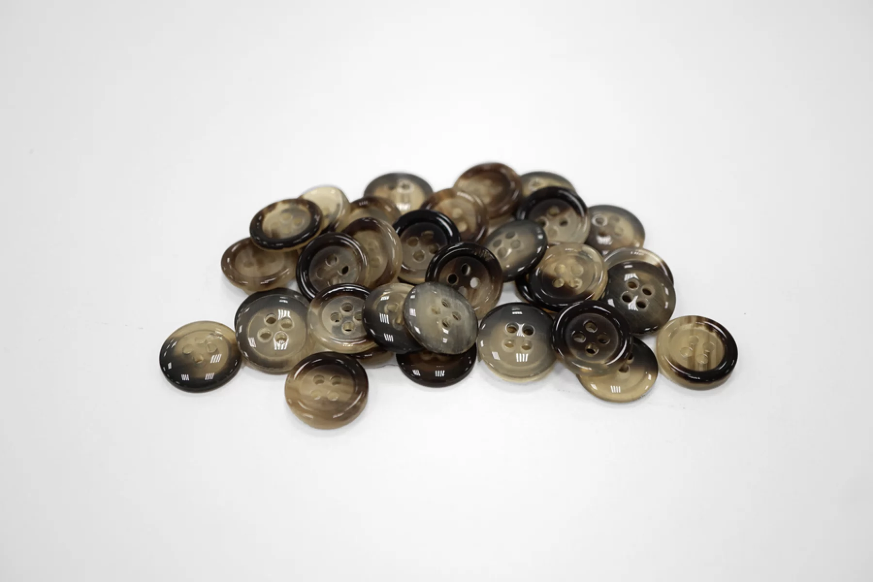 Пуговица глянцевая костюмно-рубашечная пластик 16 мм бежево-коричневая под рог (Q1) 6012249