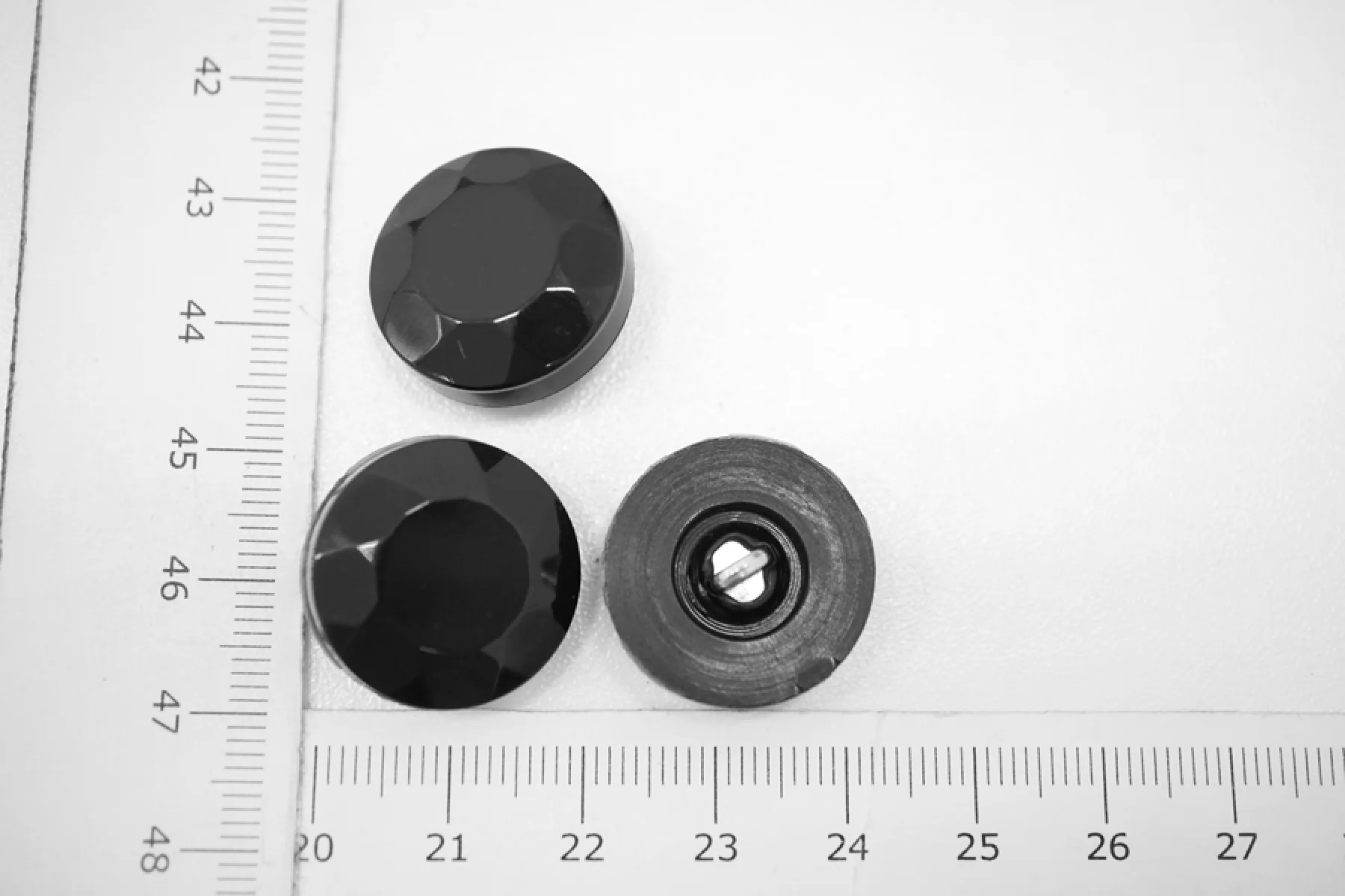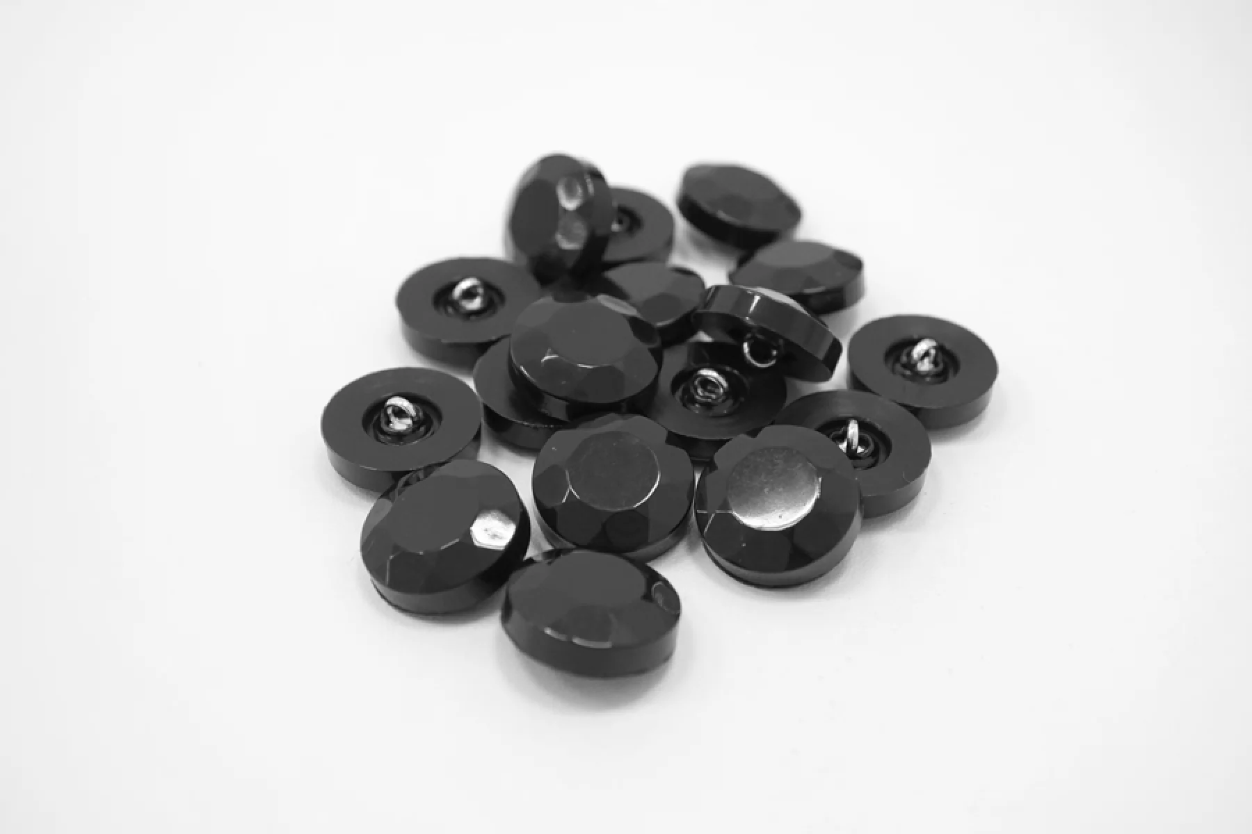 Пуговица глянцевая многогранная костюмно-пальтовая из пластмассы, размер 20 мм, чёрного цвета.