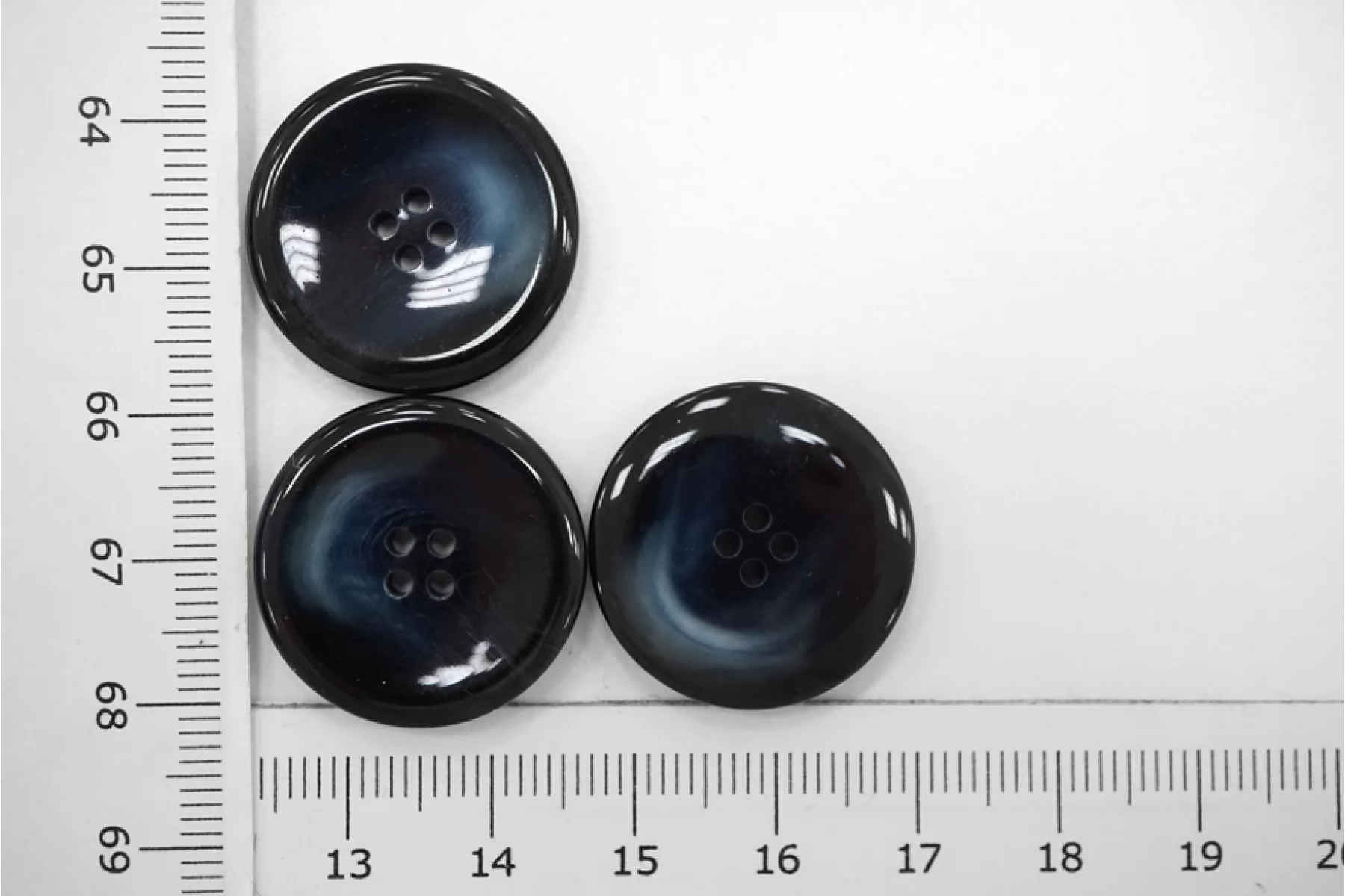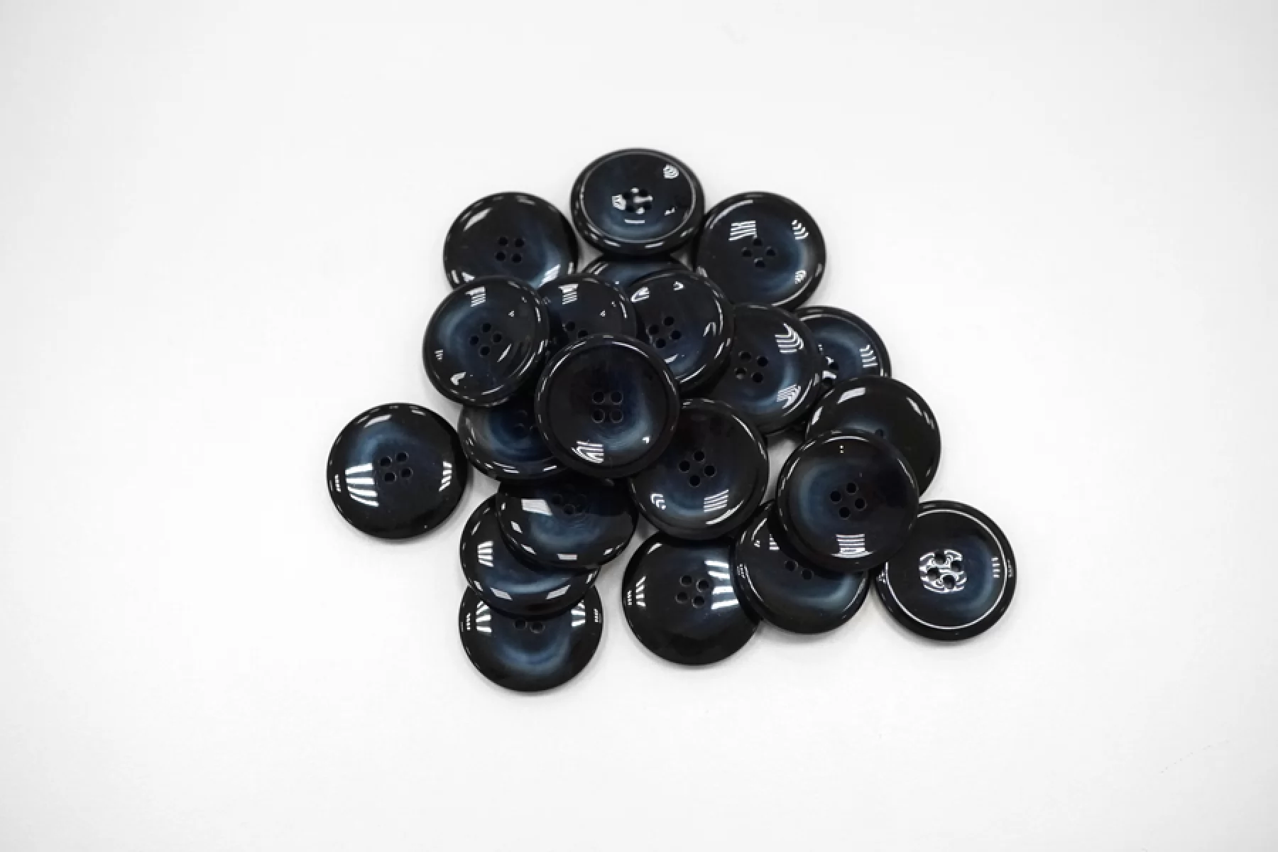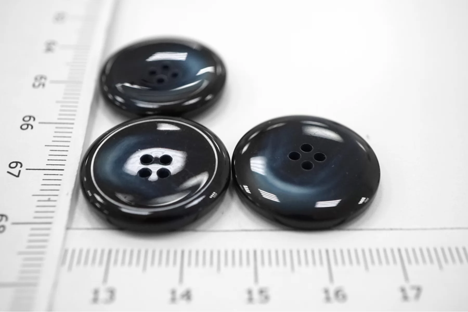 Пуговица глянцевая плательно-костюмная пластик черно-синяя 22 мм под рог-(i1)- 6032211
