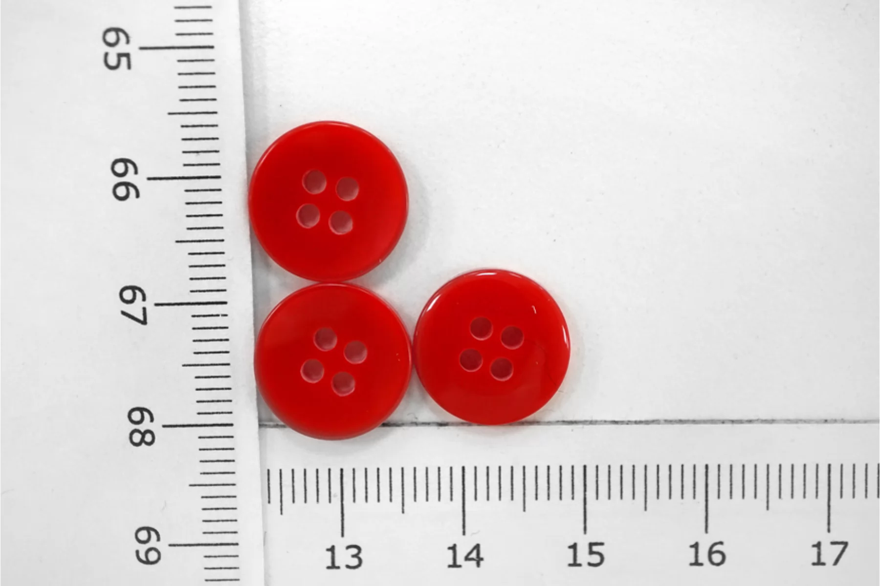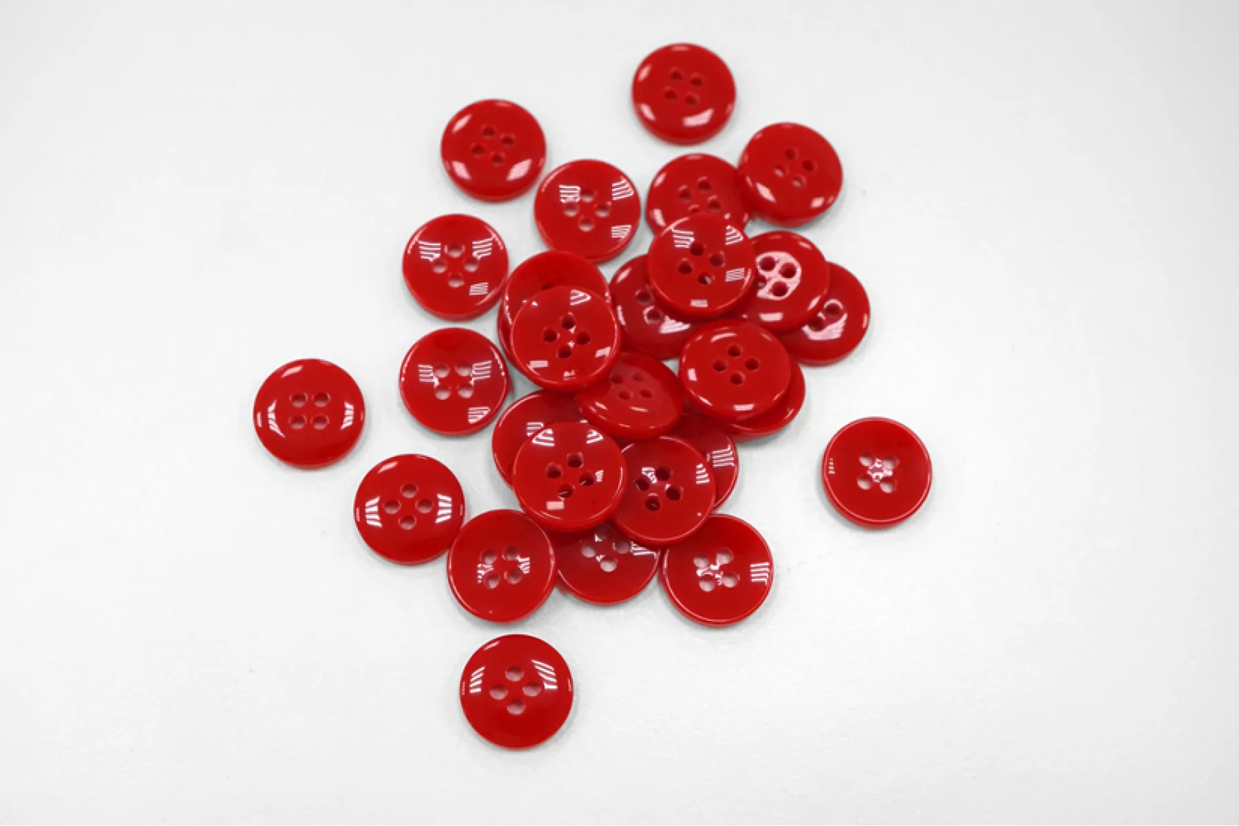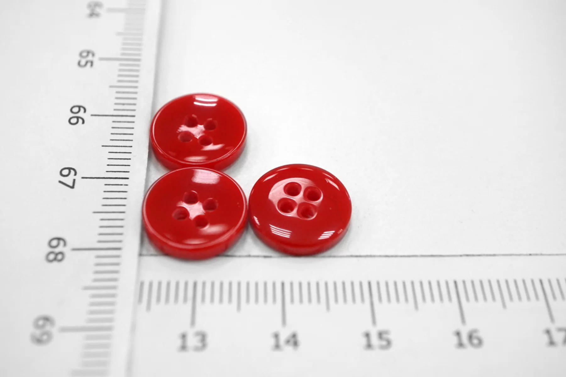 Пуговица глянцевая плательно-рубашечная из пластмассы, красного цвета, размер 11 мм.