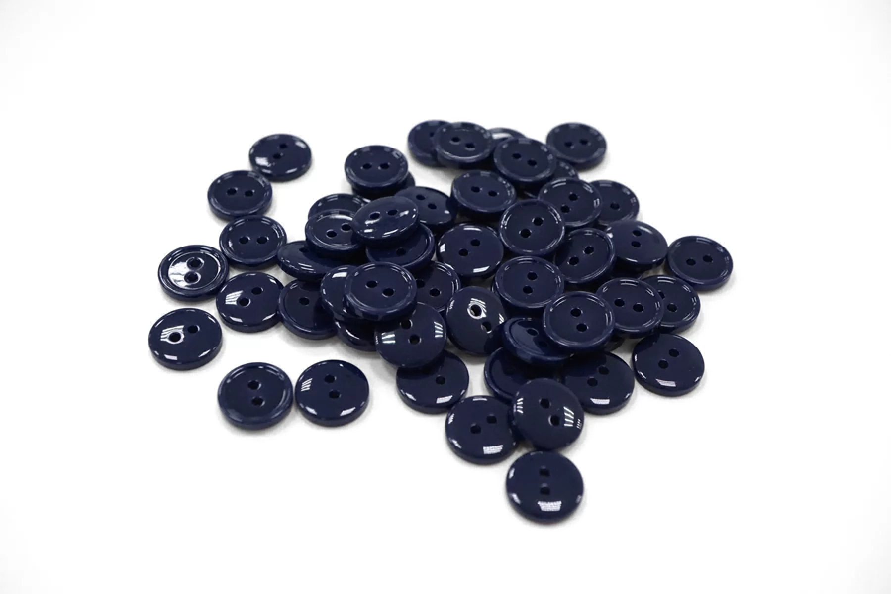 Пуговица глянцевая рубашечная из пластмассы, тёмно-синего цвета, размер 13 мм.