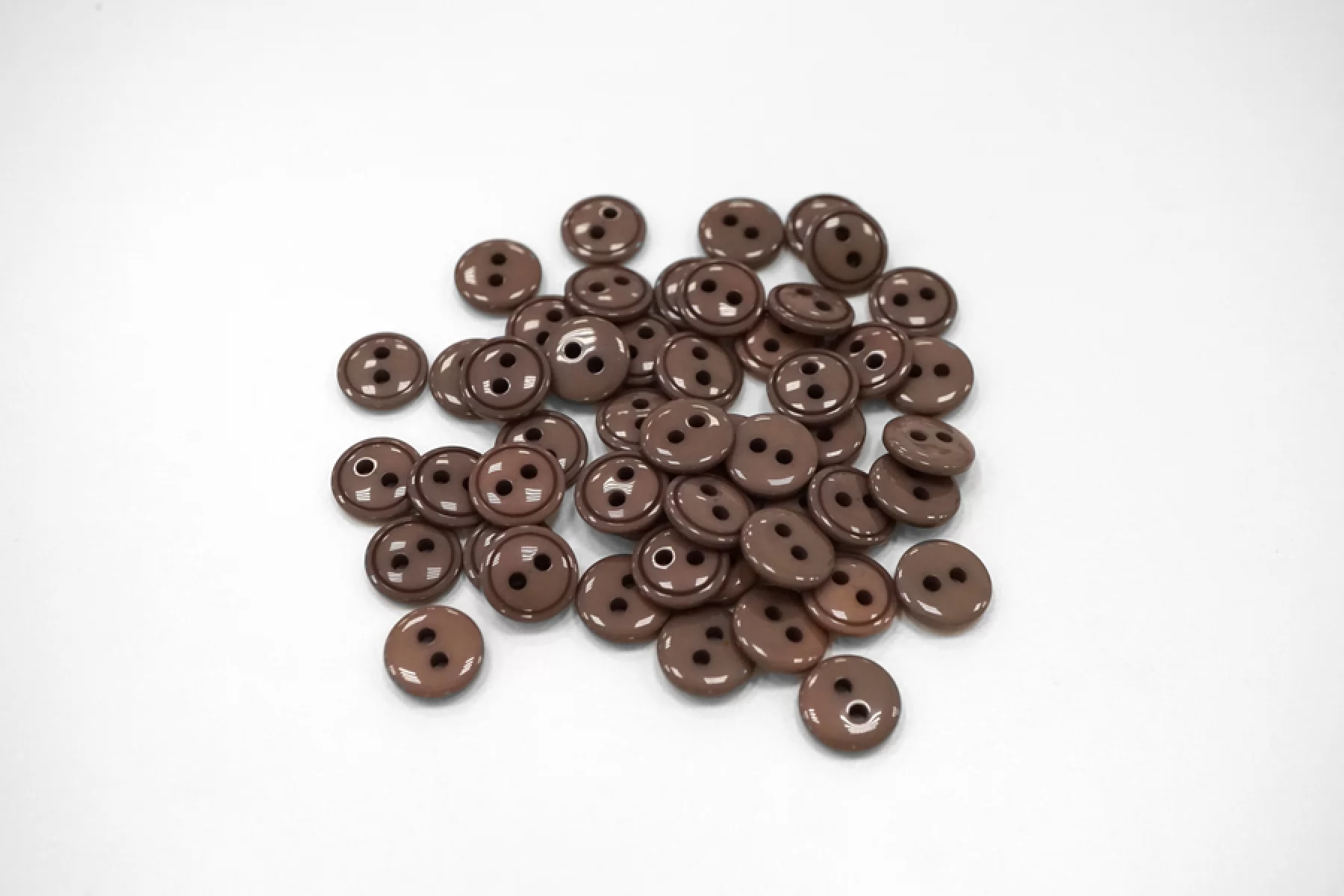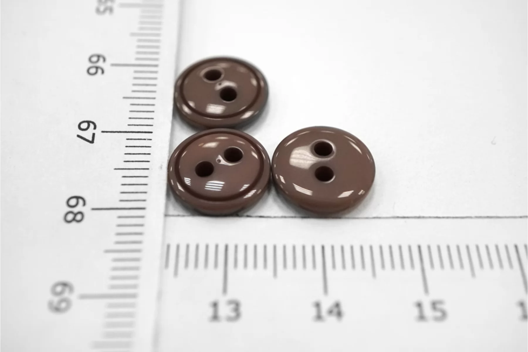 Пуговица глянцевая рубашечная из пластмассы, коричневого цвета, размер 11 мм.