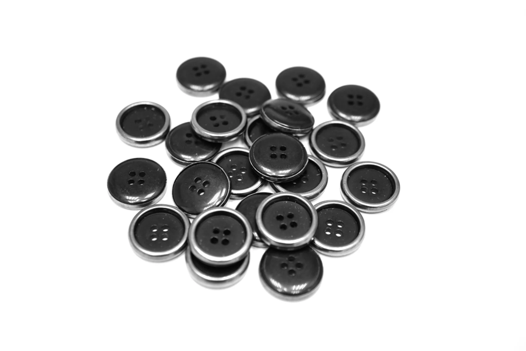 Пуговица костюмная, пластиковая, черного цвета с металлическим ободком, размер 19 мм.