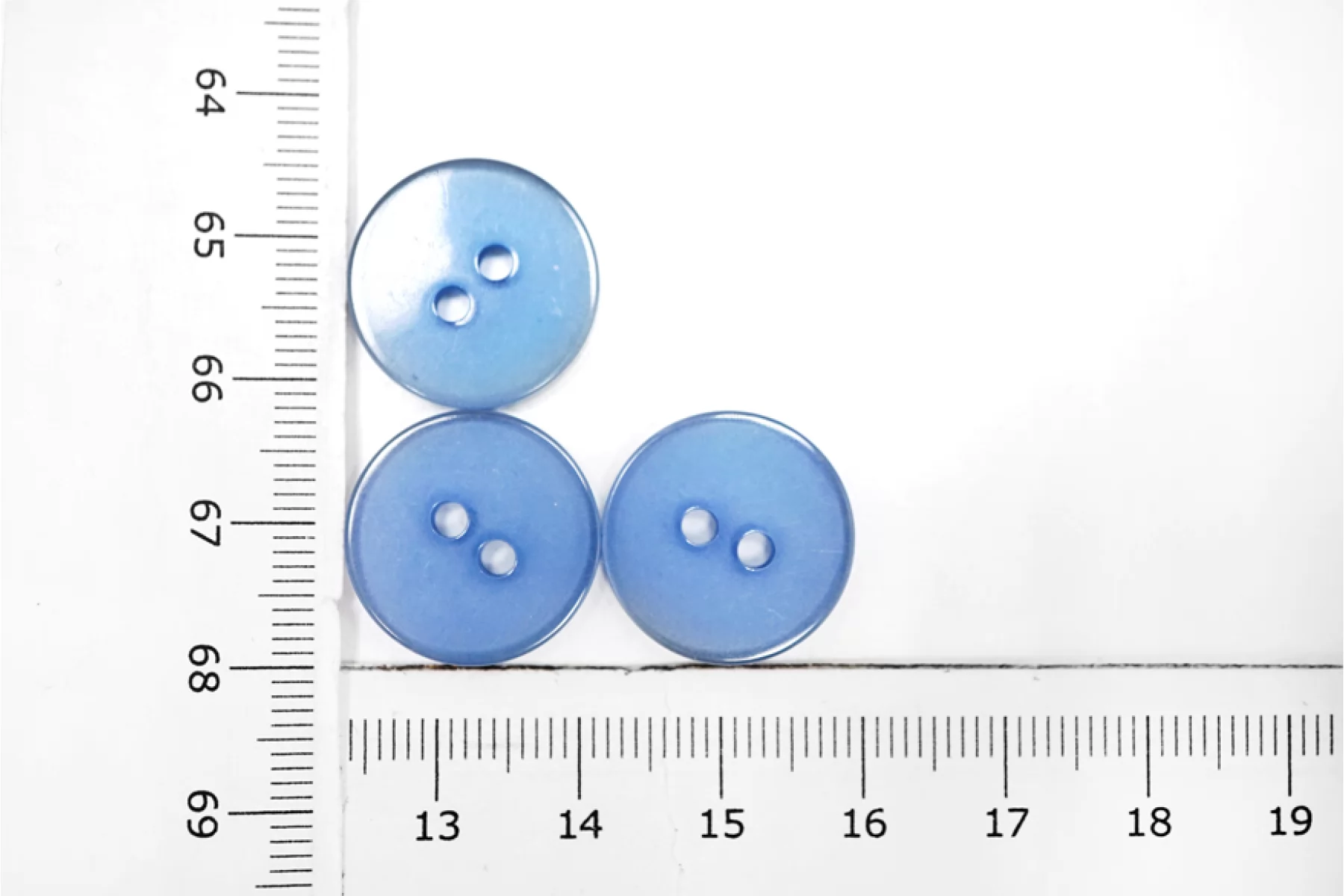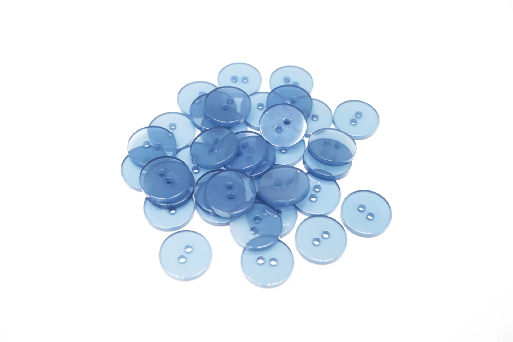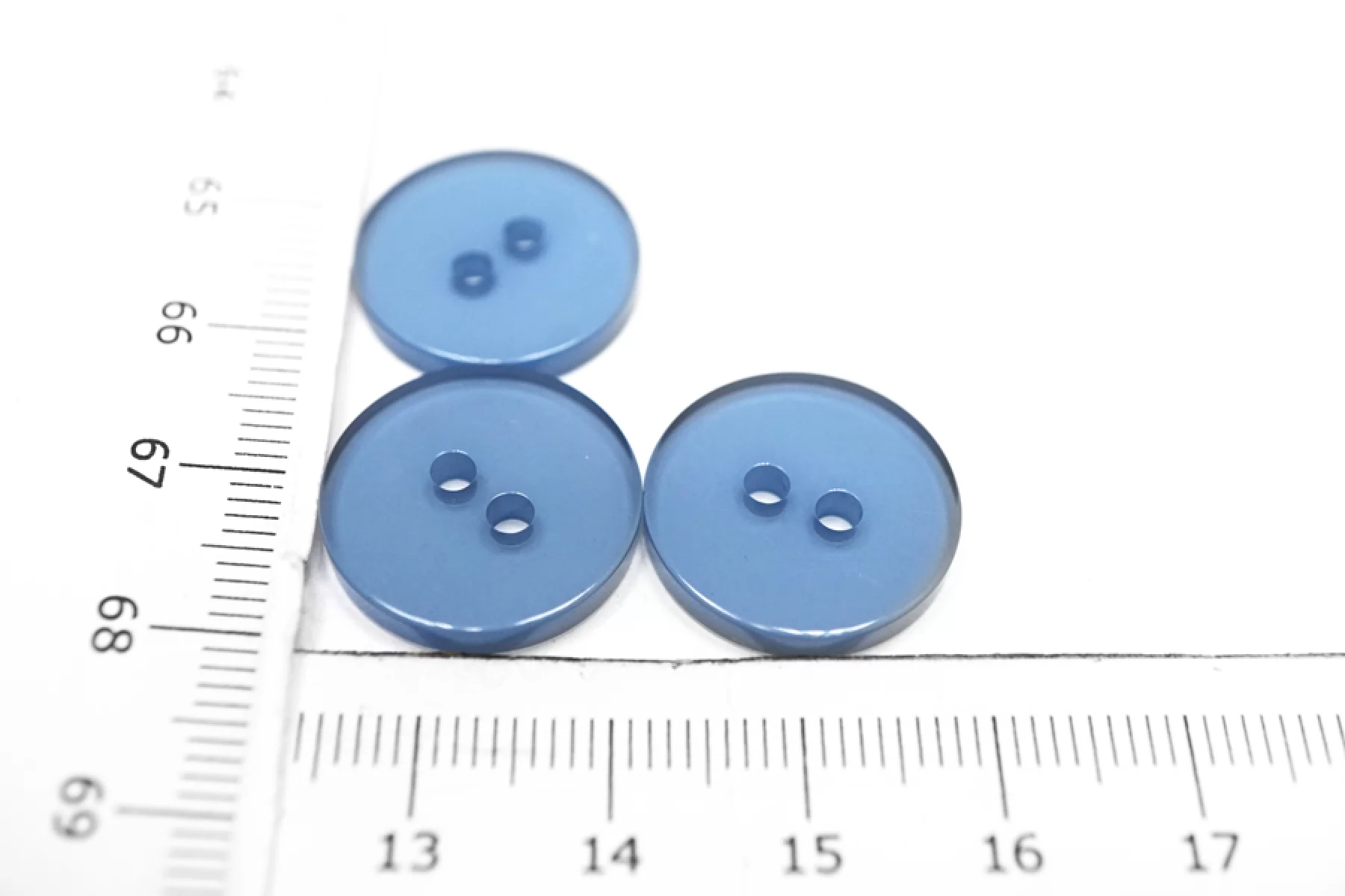 Пуговица глянцевая, полупрозрачная костюмная , пластиковая, голубого цвета размер 18 мм.