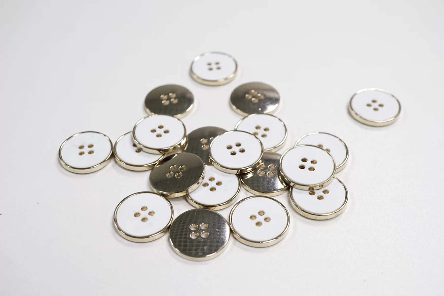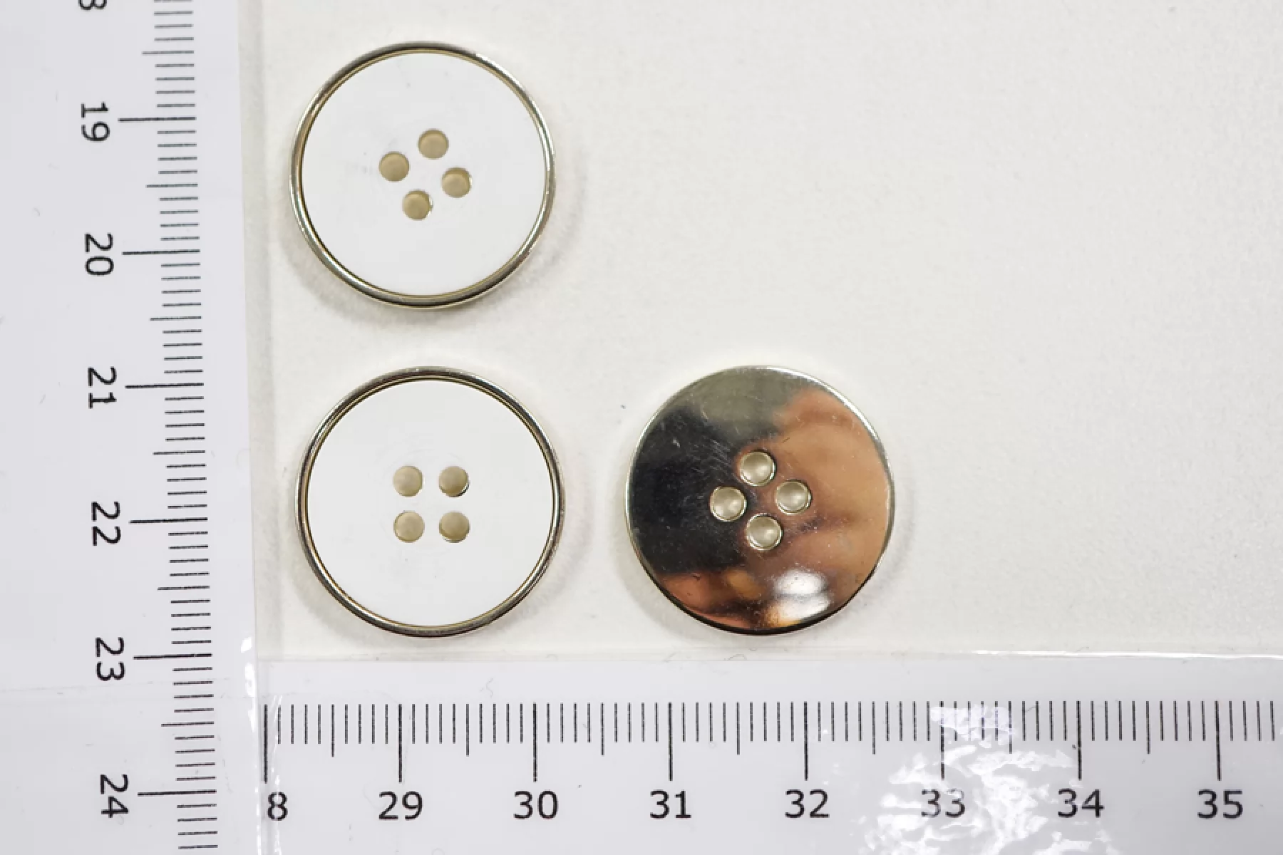 Пуговица костюмная металлическая, размер 20 мм, со вставкой из белого полимерного пластика.