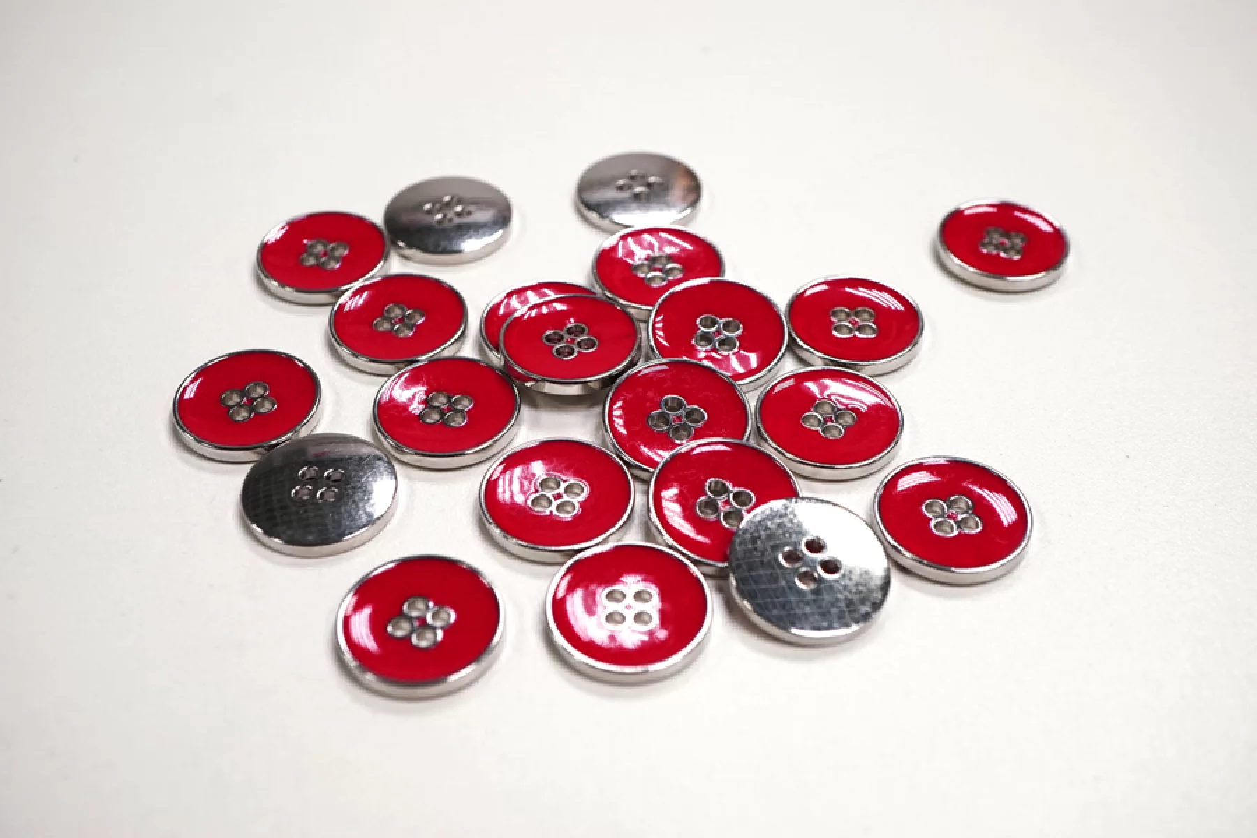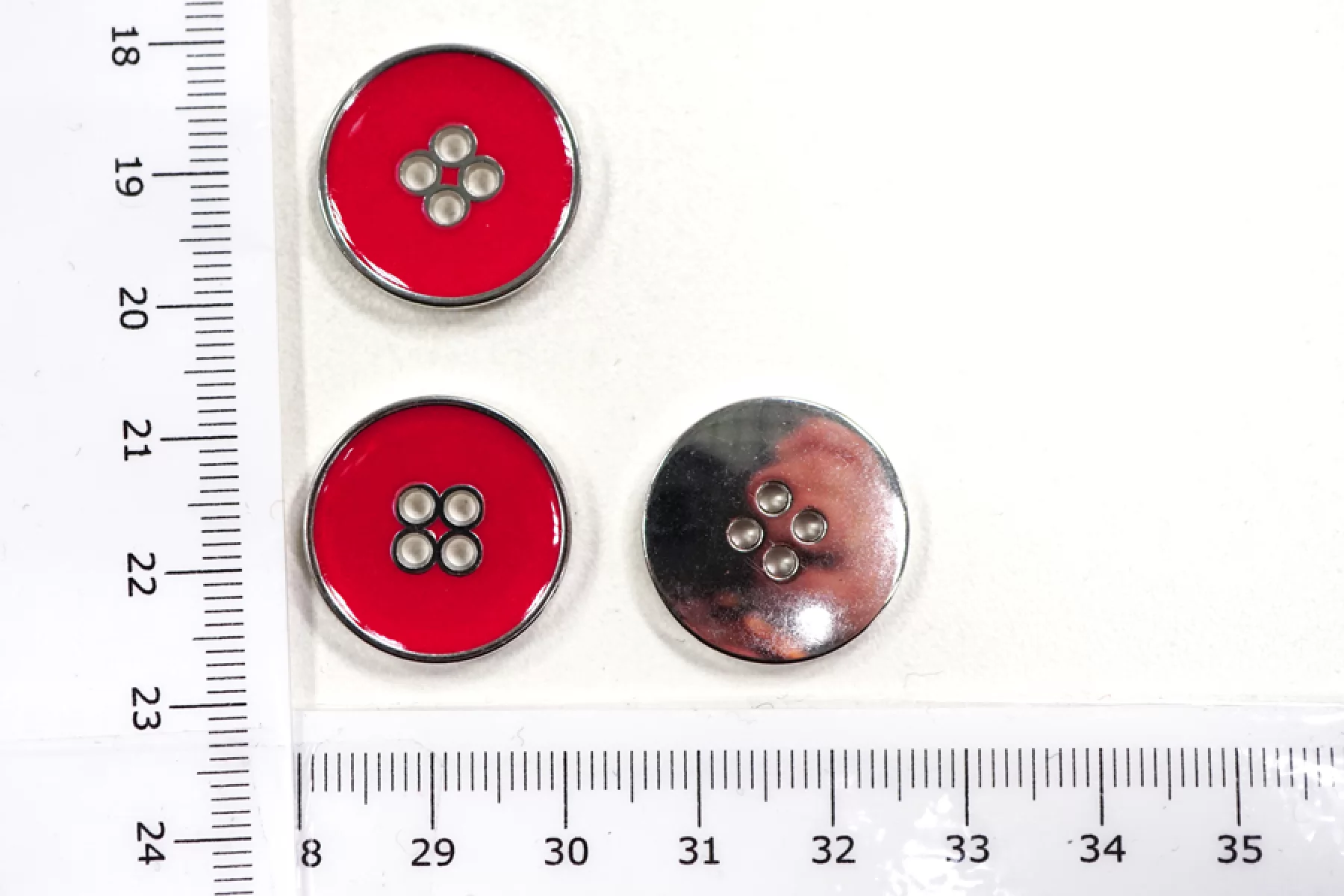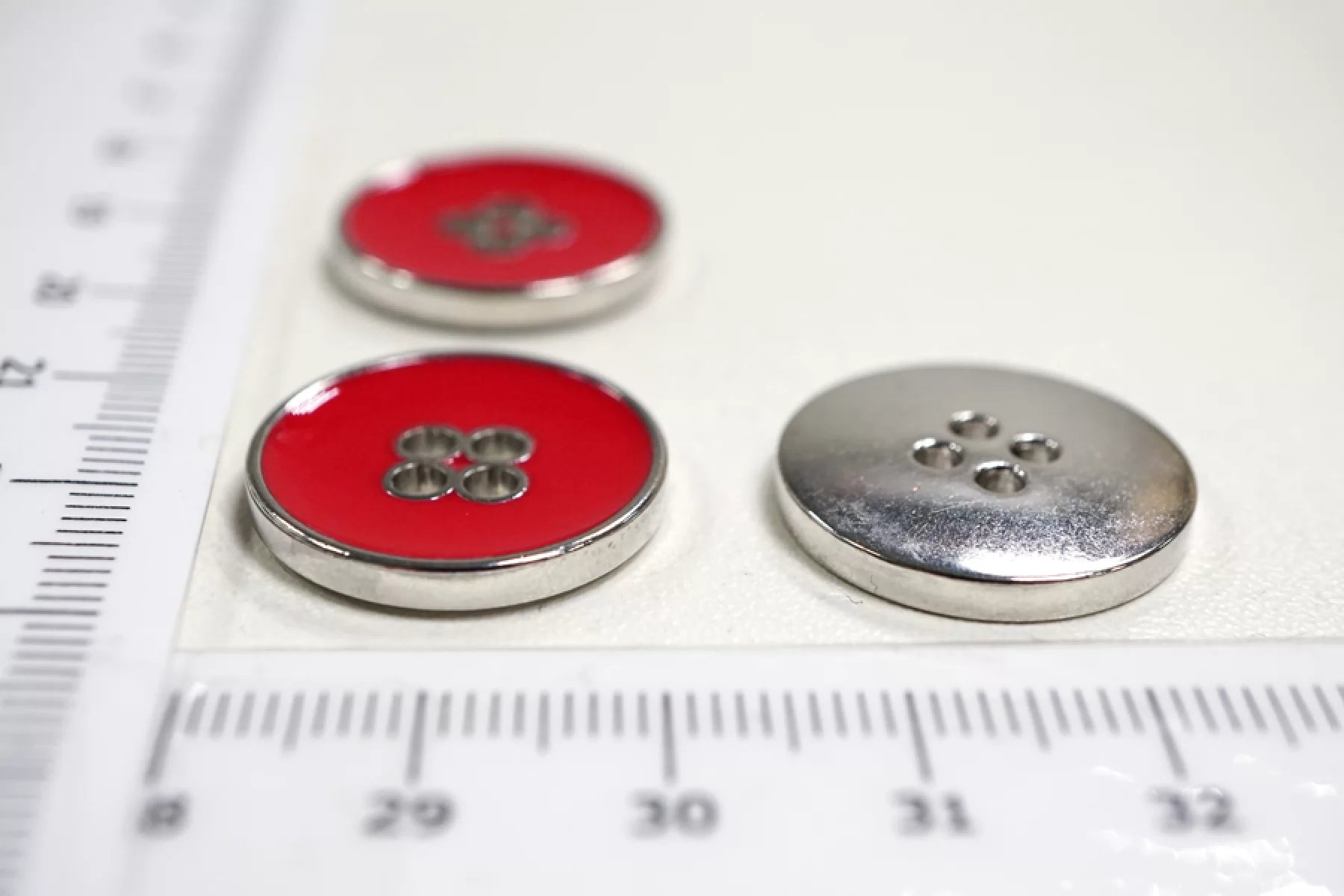 Пуговица костюмная металлическая, размер 20 мм, покрыта красной эмалью.