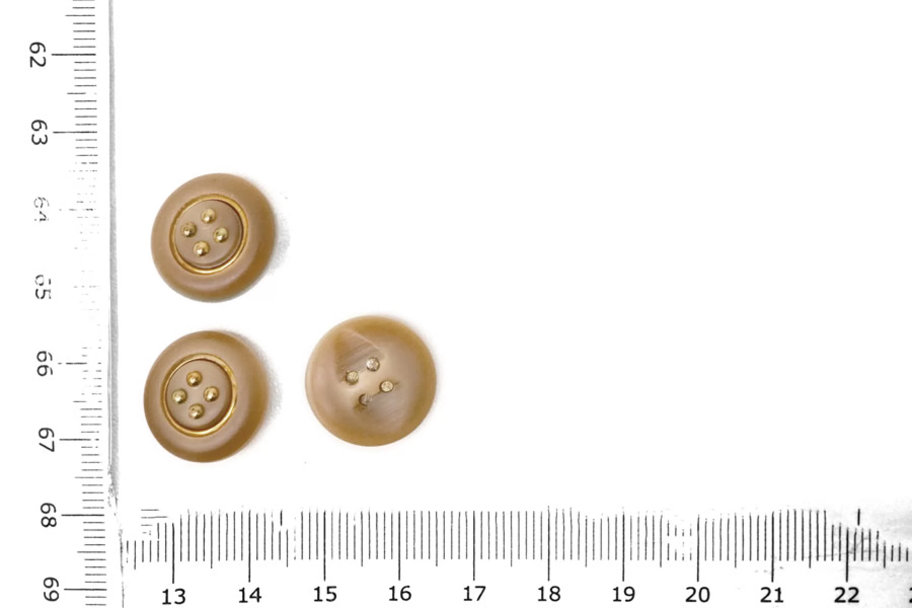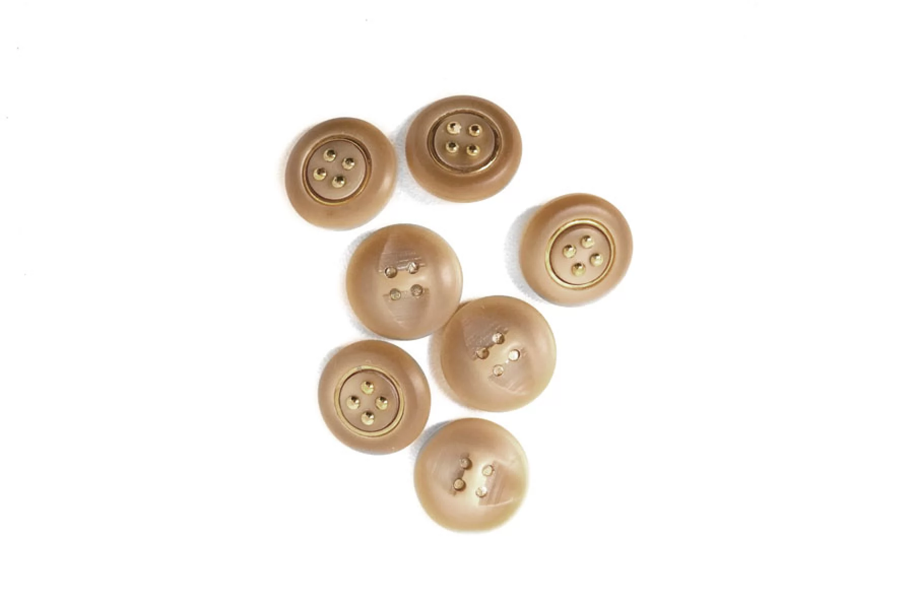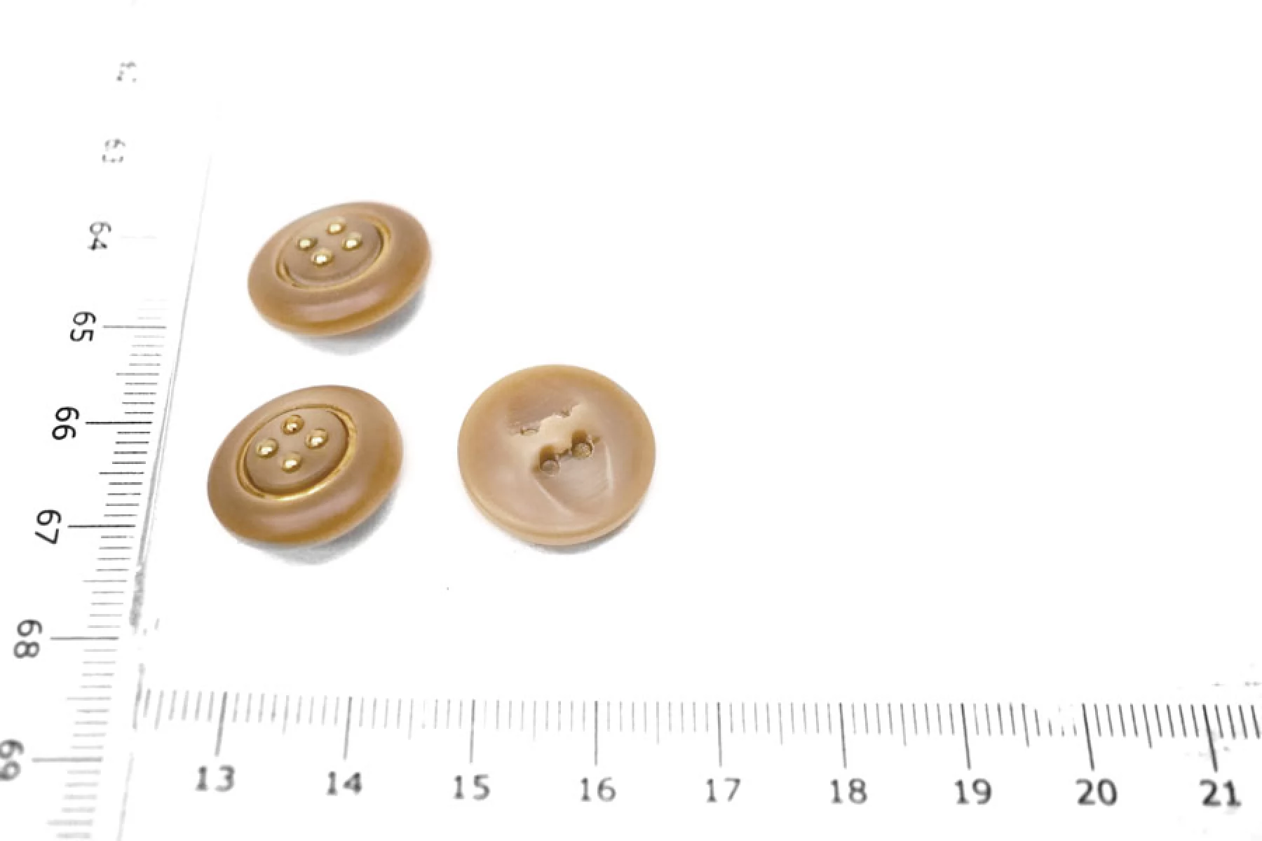 Пуговица пластиковая бежевого цвета с золотой вставкой , размер 18 мм.