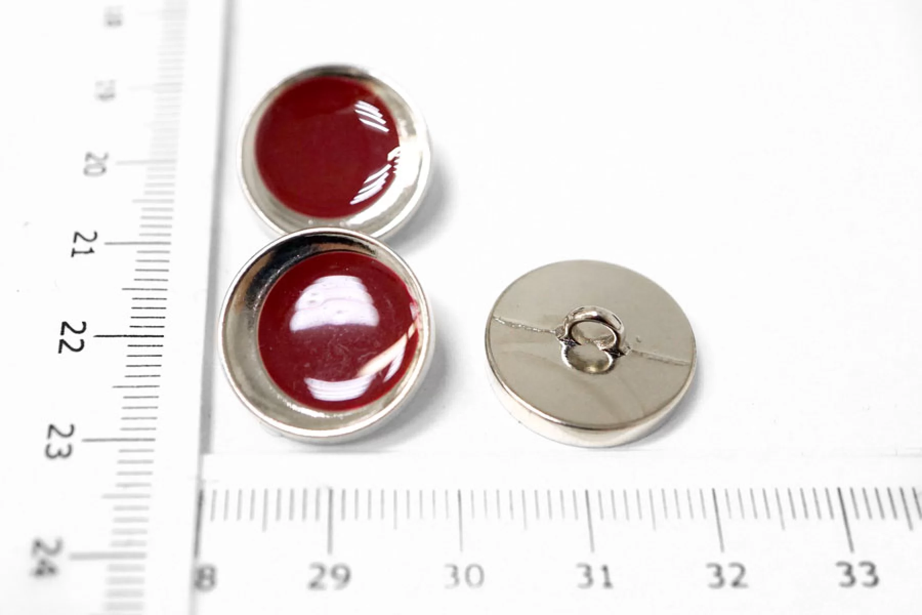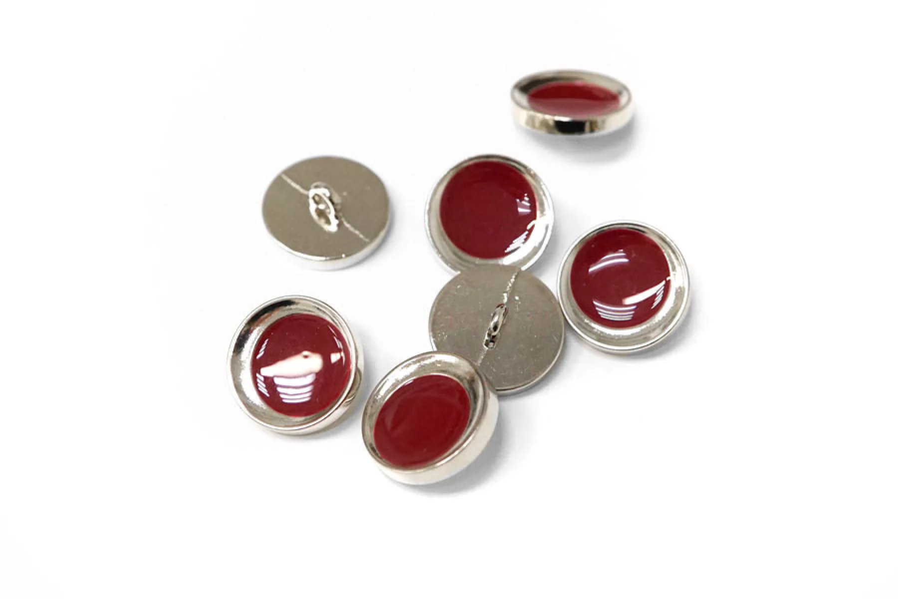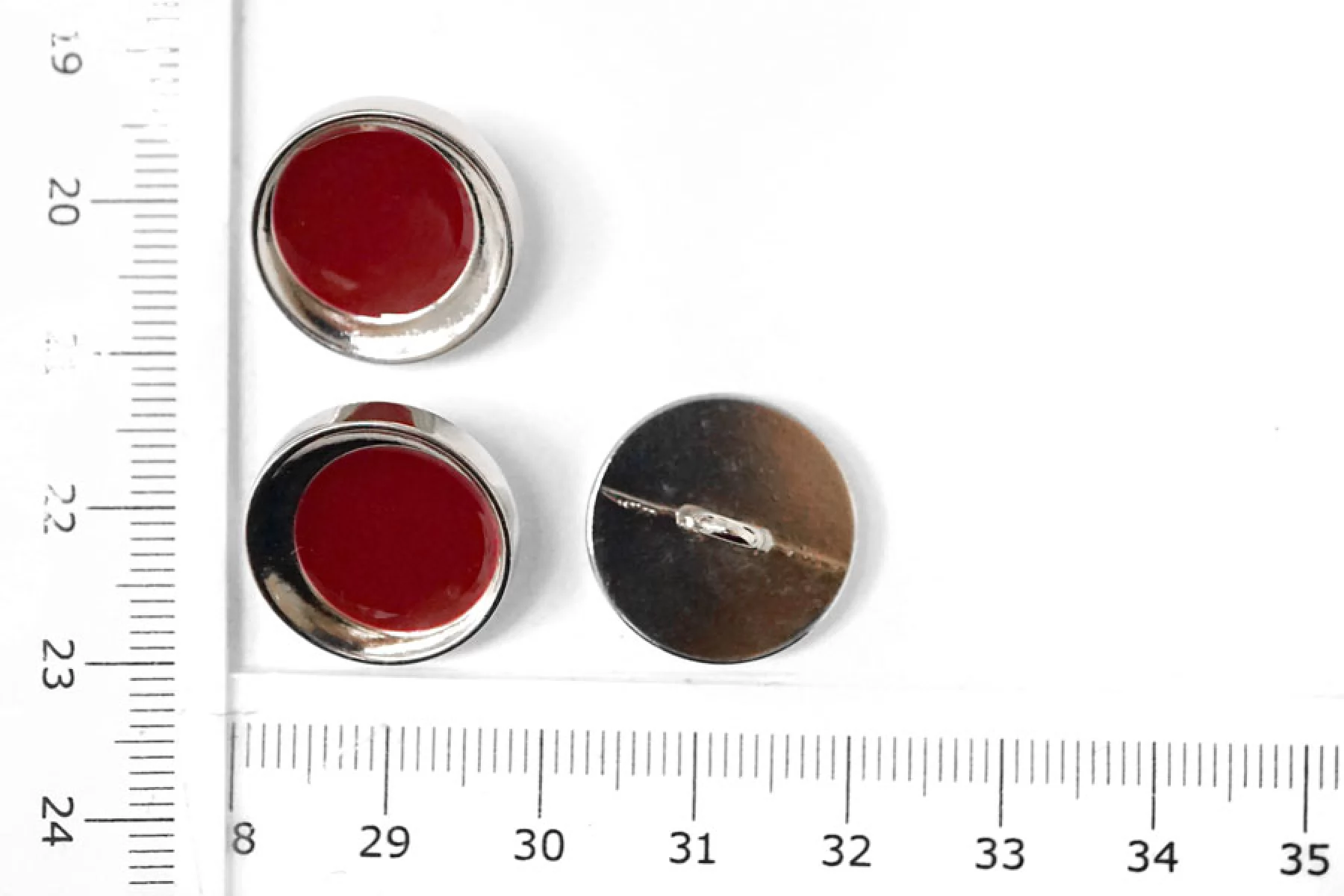 Пуговица костюмная из серебристого металла, покрыта эмалью вишневого цвета. Диаметр - 18 мм. Пуговица компаньон - 11122018 - 15 мм.