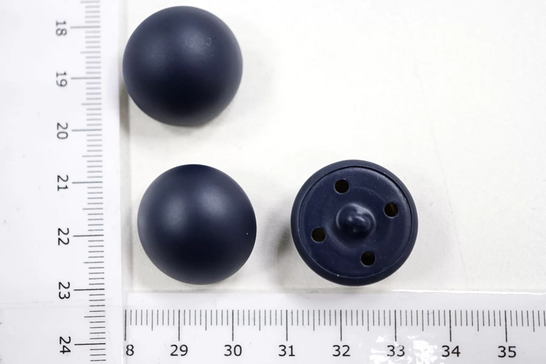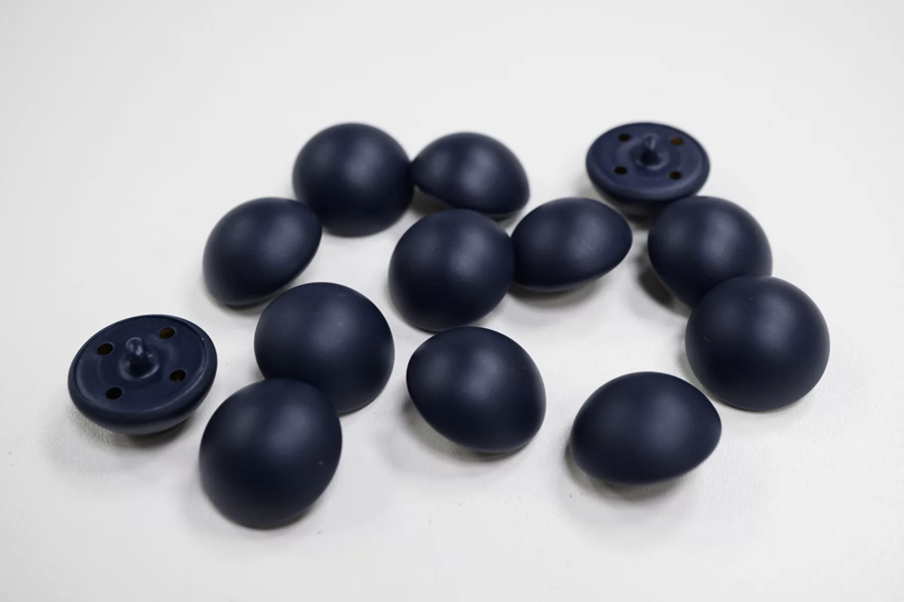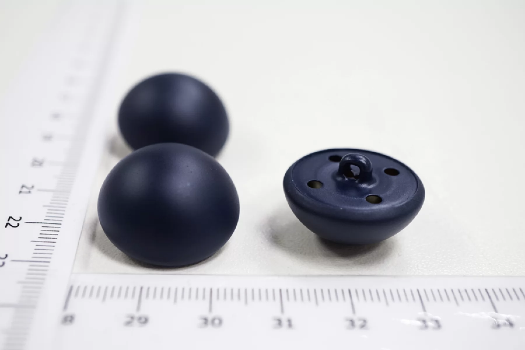 Пуговица костюмная из пластика, темно-синего цвета с гладкой матовой поверхностью. Диаметр - 27 мм.
