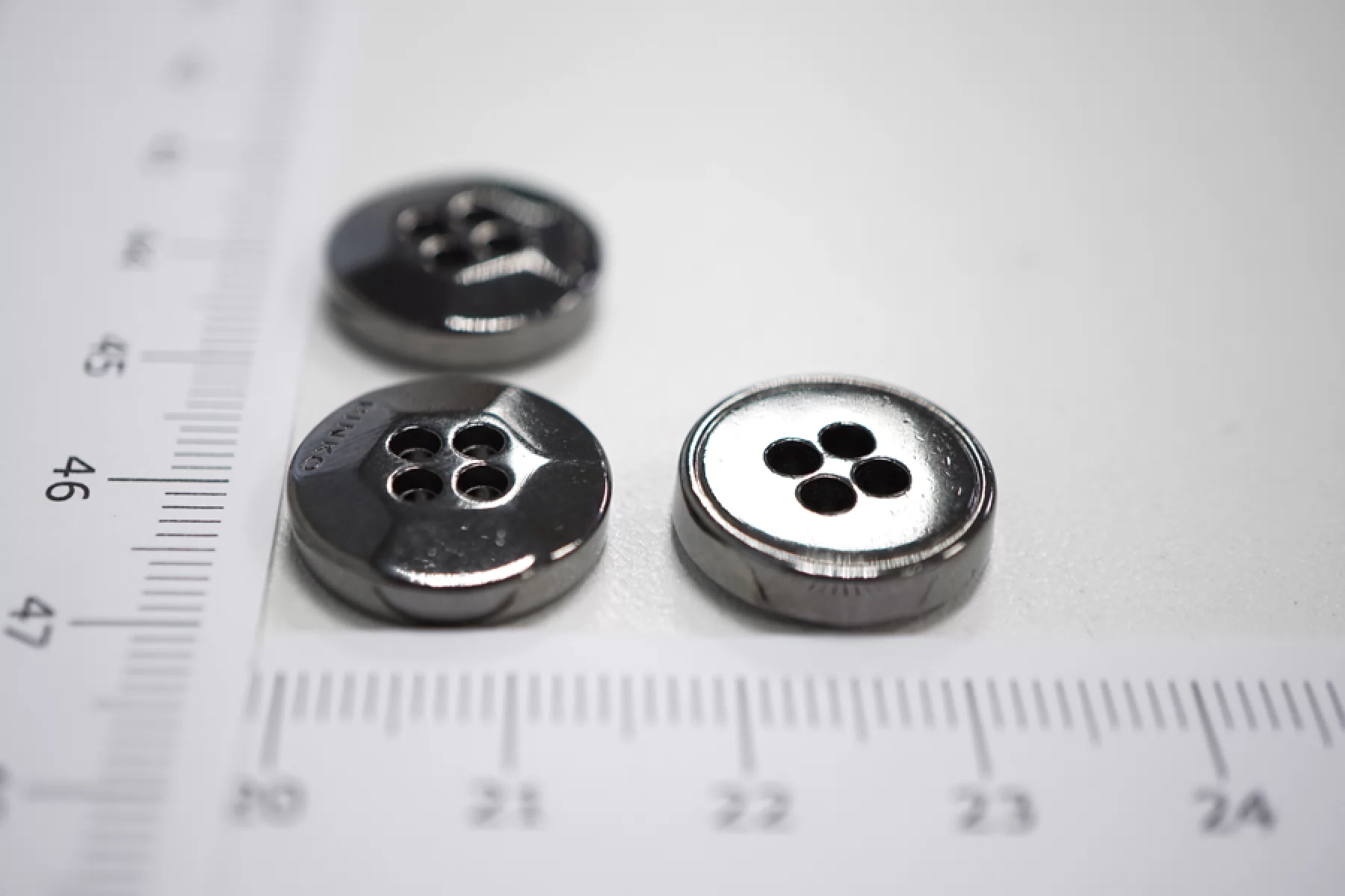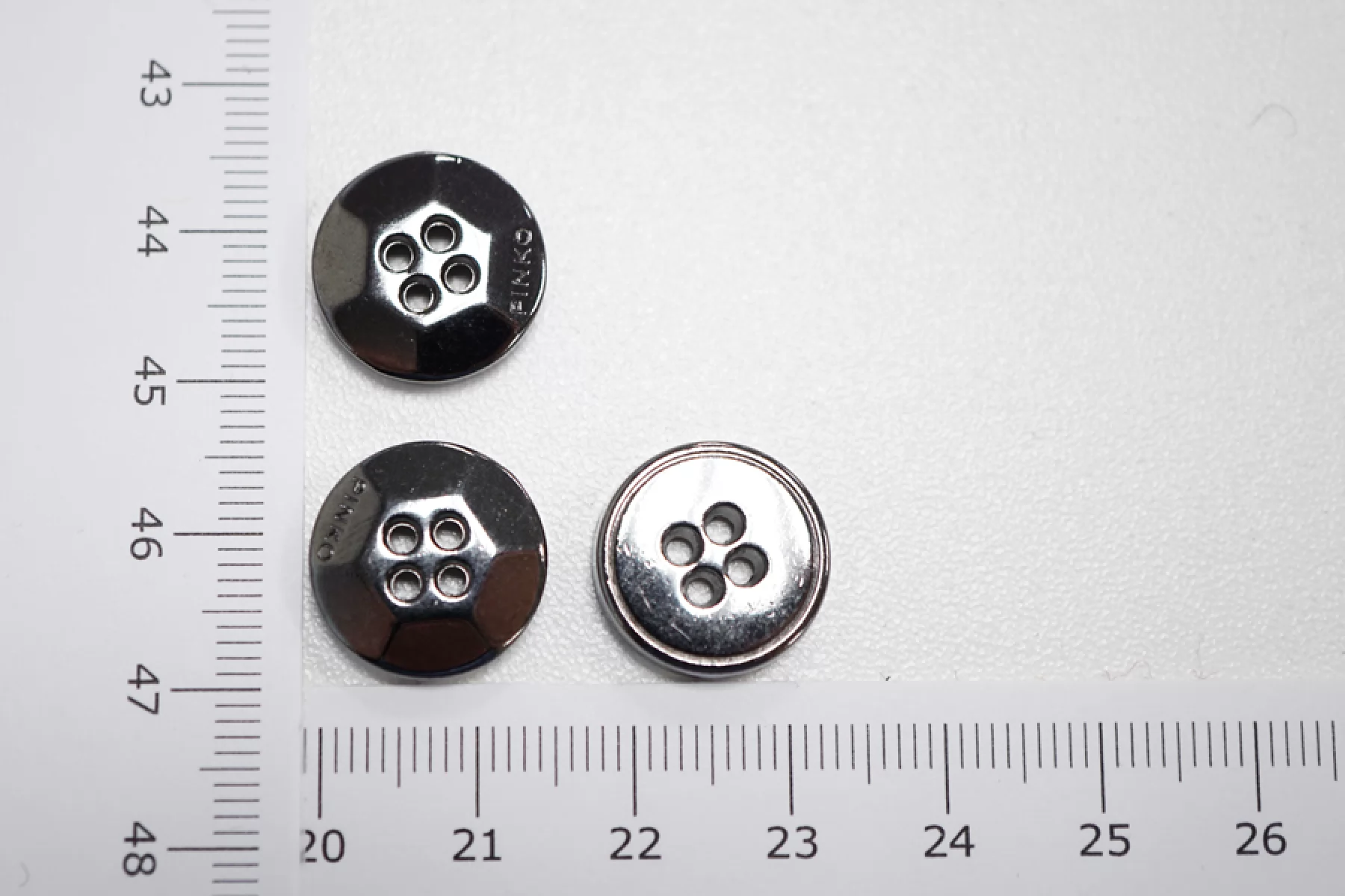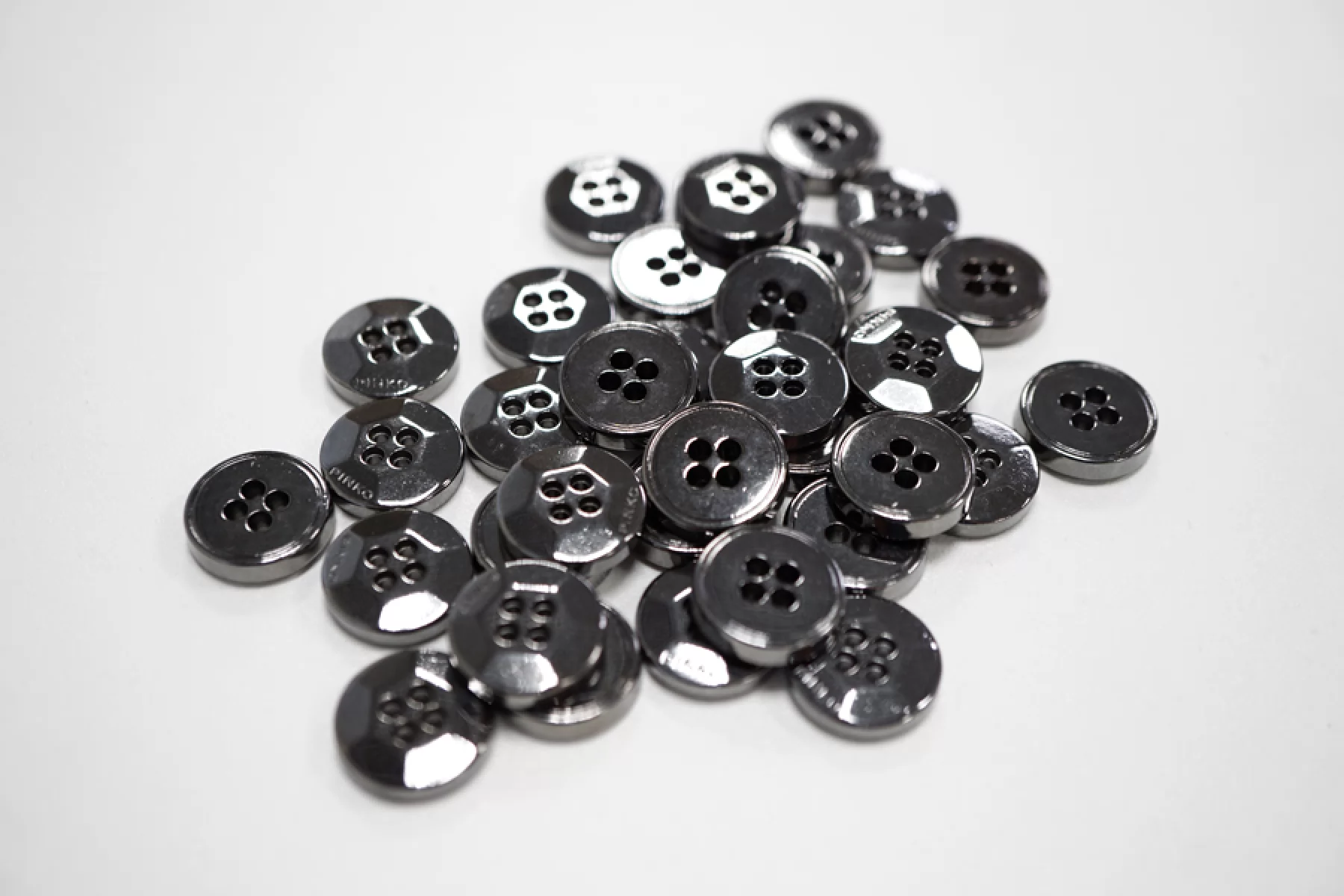 Пуговица костюмная из металла, размер 15 мм, цвета темного никеля с несколькими гранями.