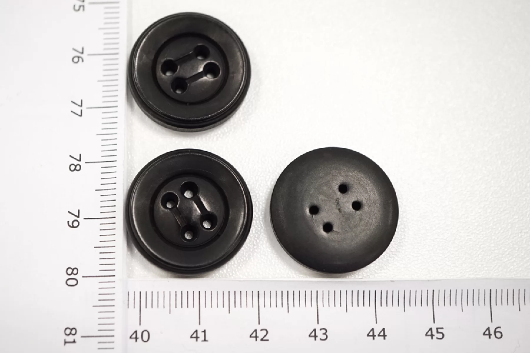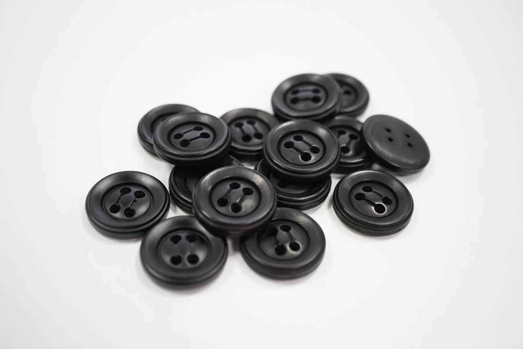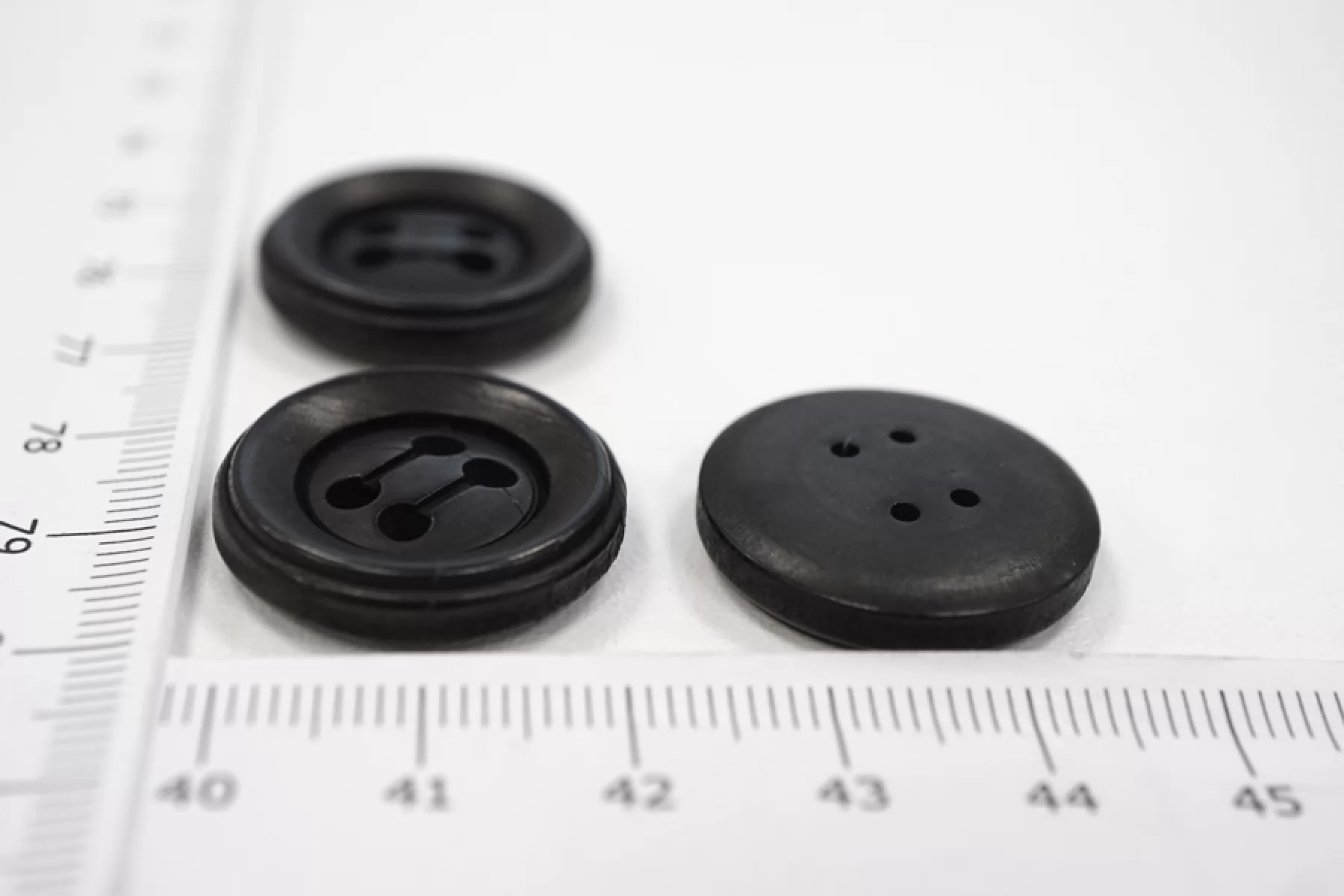 Пуговица костюмная из пластмассы, размер 22 мм, черного цвета.