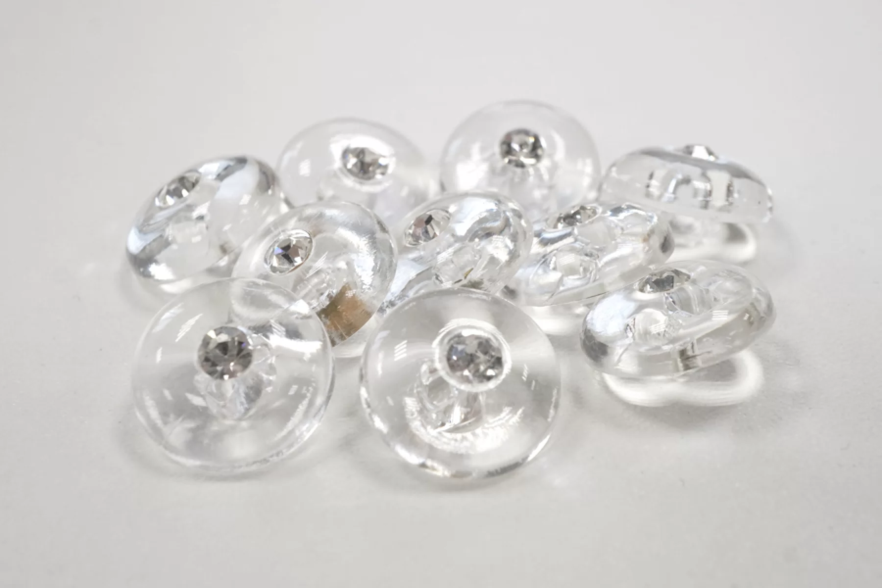 Пуговица костюмная из пластмассы, размер 18 мм, прозрачная со стразом в серединке.