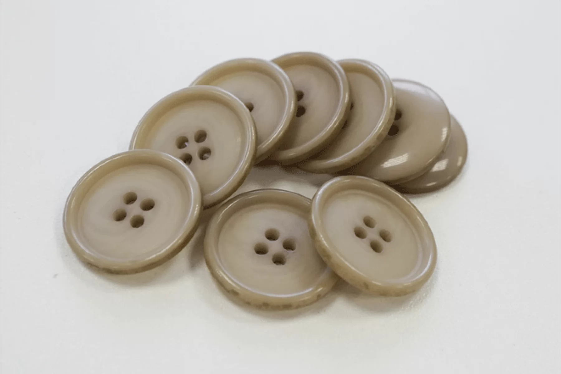 Пуговица костюмная из пластмассы, размер 23 мм, серо-бежевого цвета.