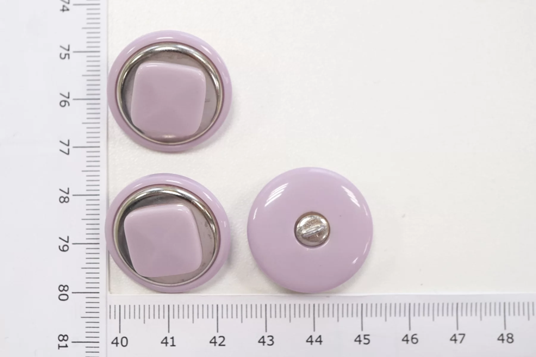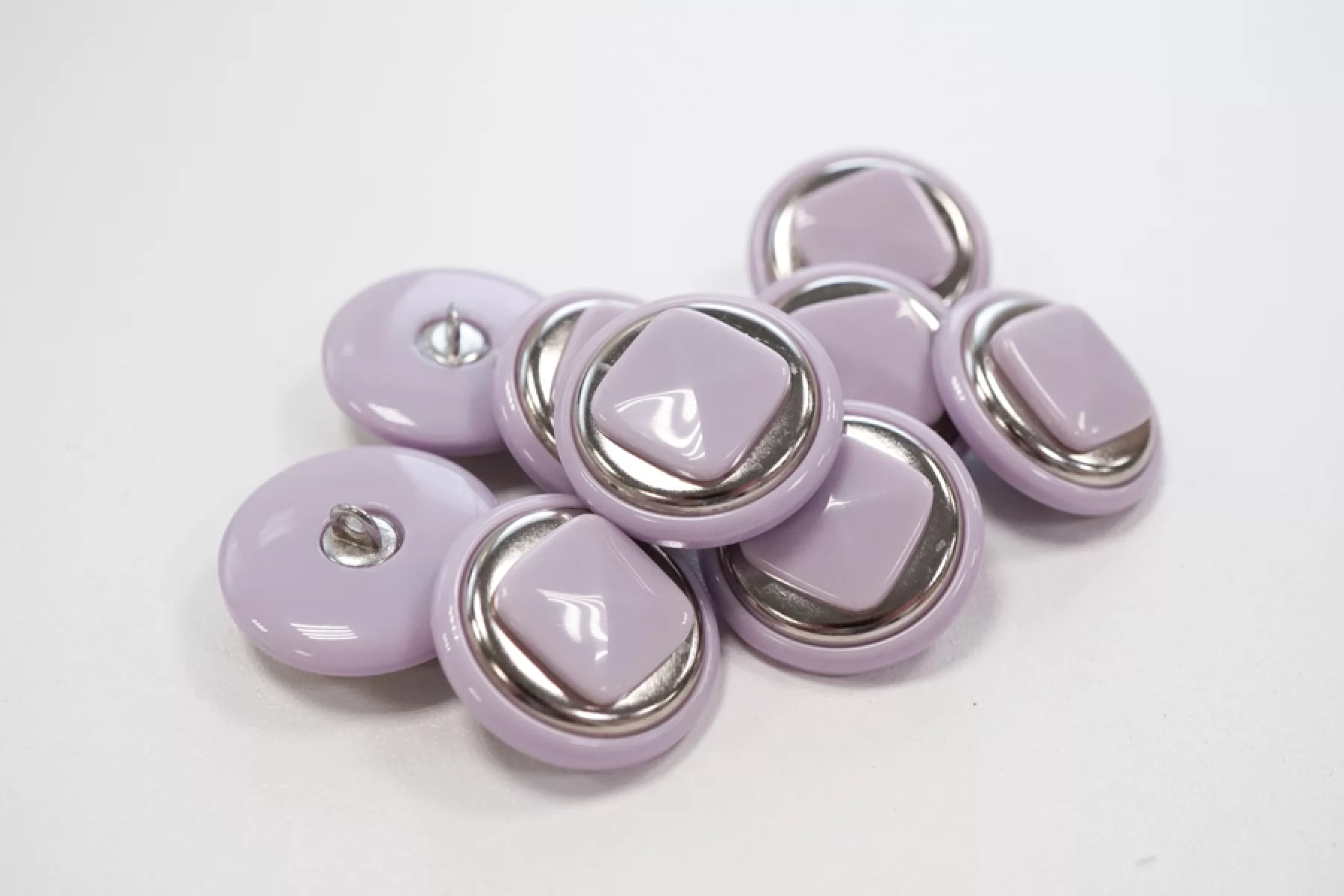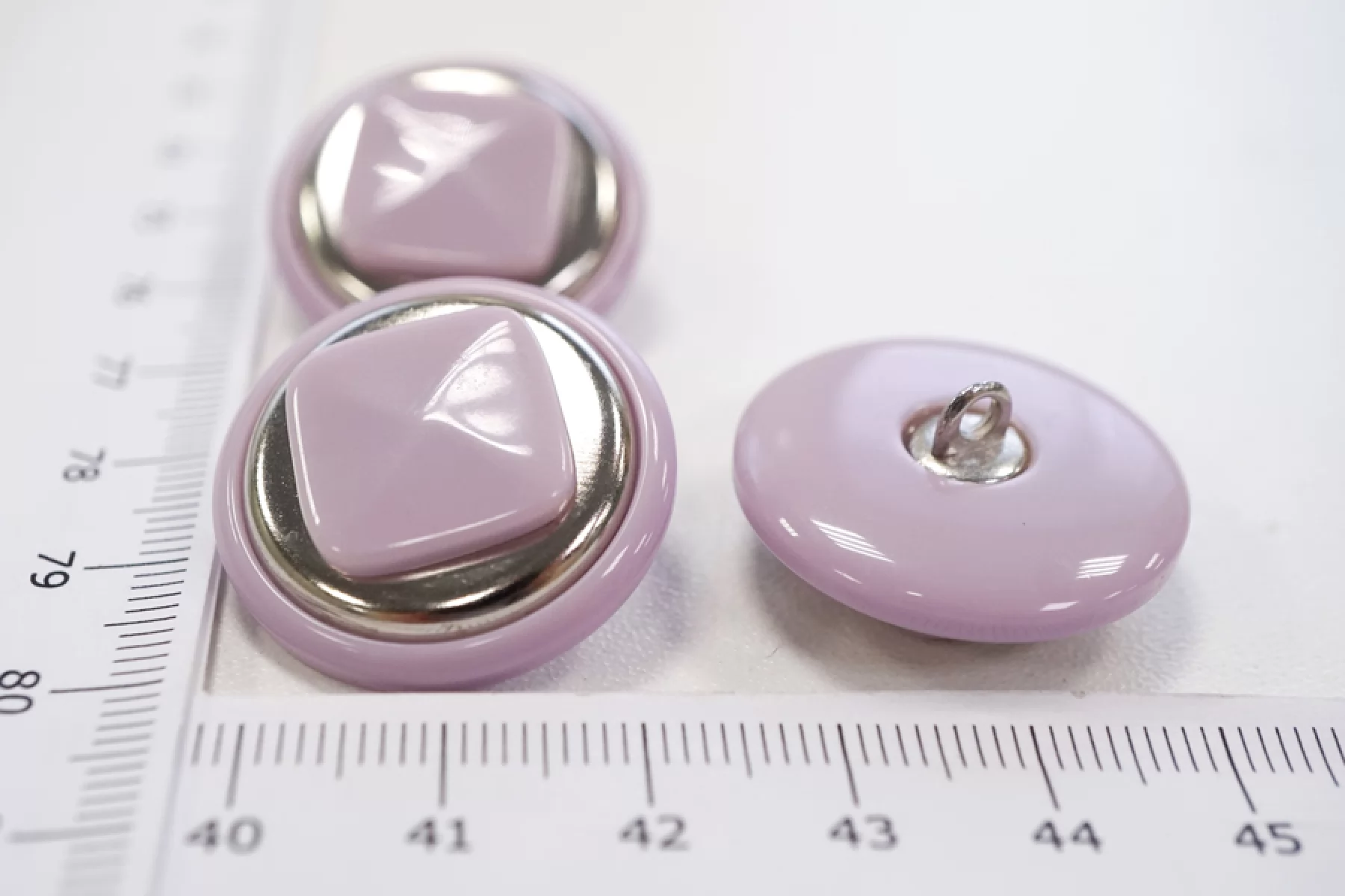 Пуговица костюмная из пластмассы, размер 25 мм, лавандового цвета с золотом.