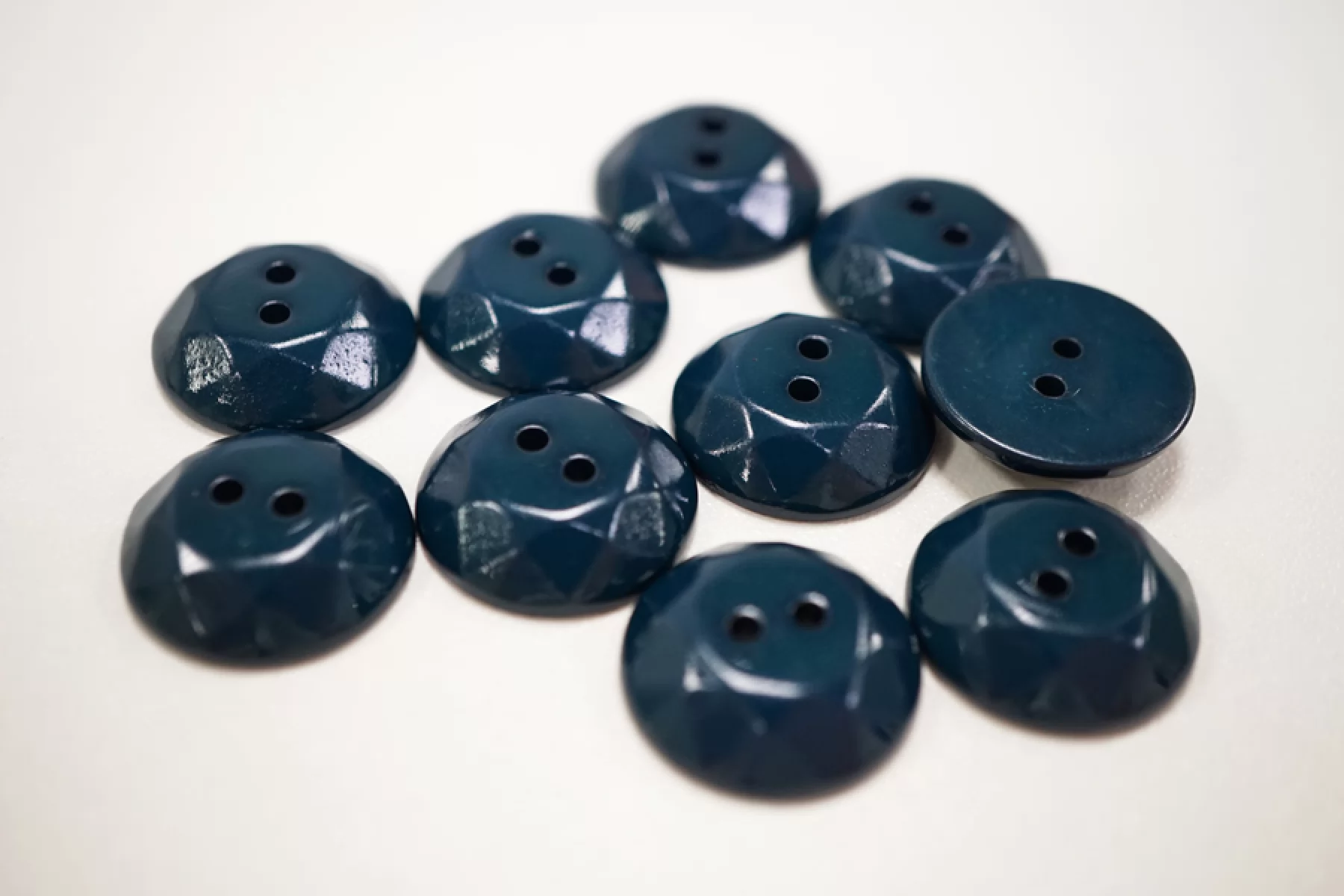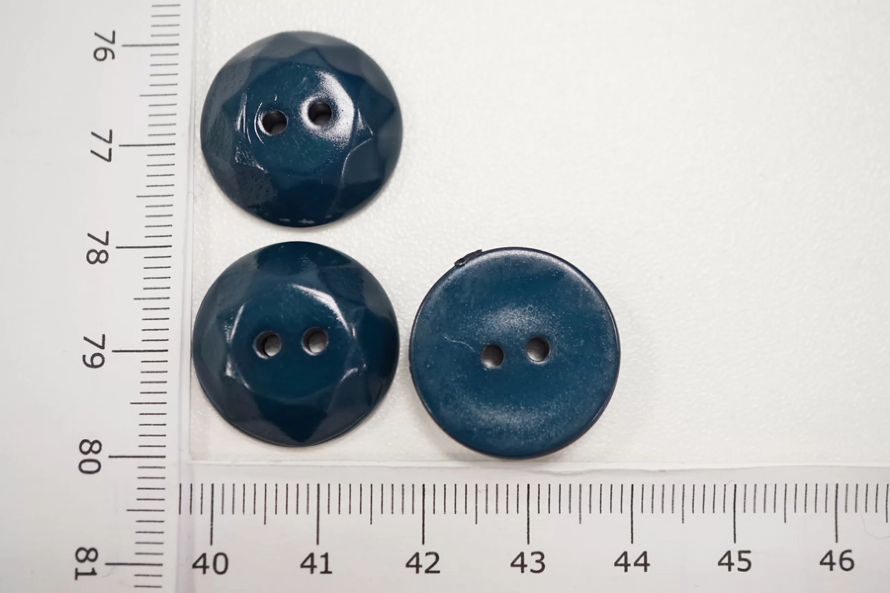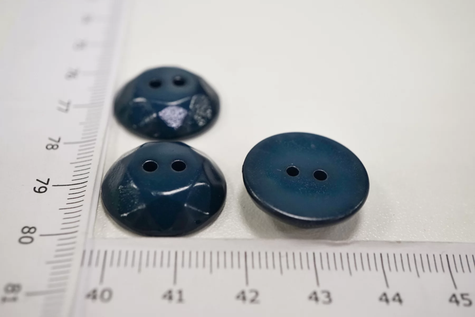 Пуговица костюмная из пластмассы, размер 20 мм, темно-бирюзового цвета, выпуклая полусферой, с имитацией огранки.