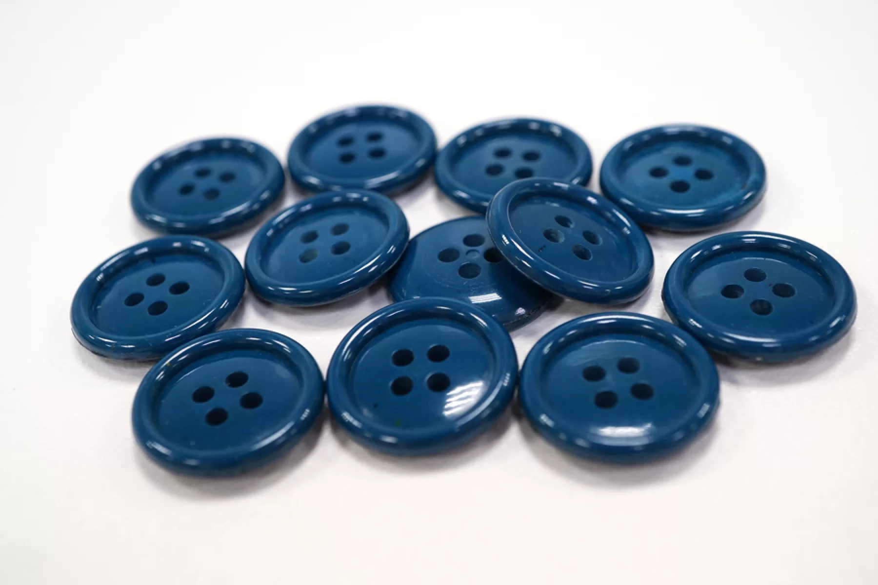 Пуговица костюмная из пластмассы, размер 18 мм, темно-лазурного цвета.