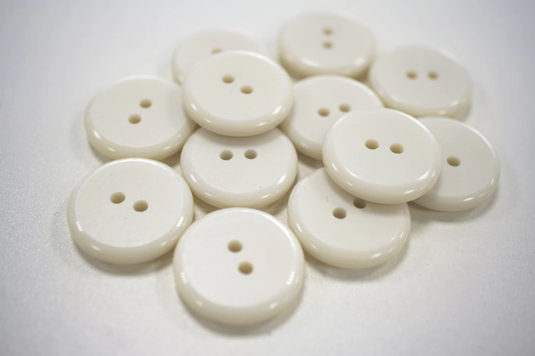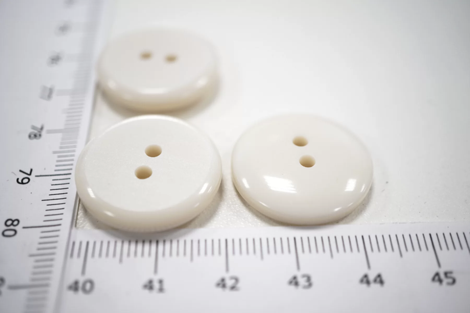 Пуговица костюмная пластиковая, размер 23 мм, туманно-белого цвета, с блеском.