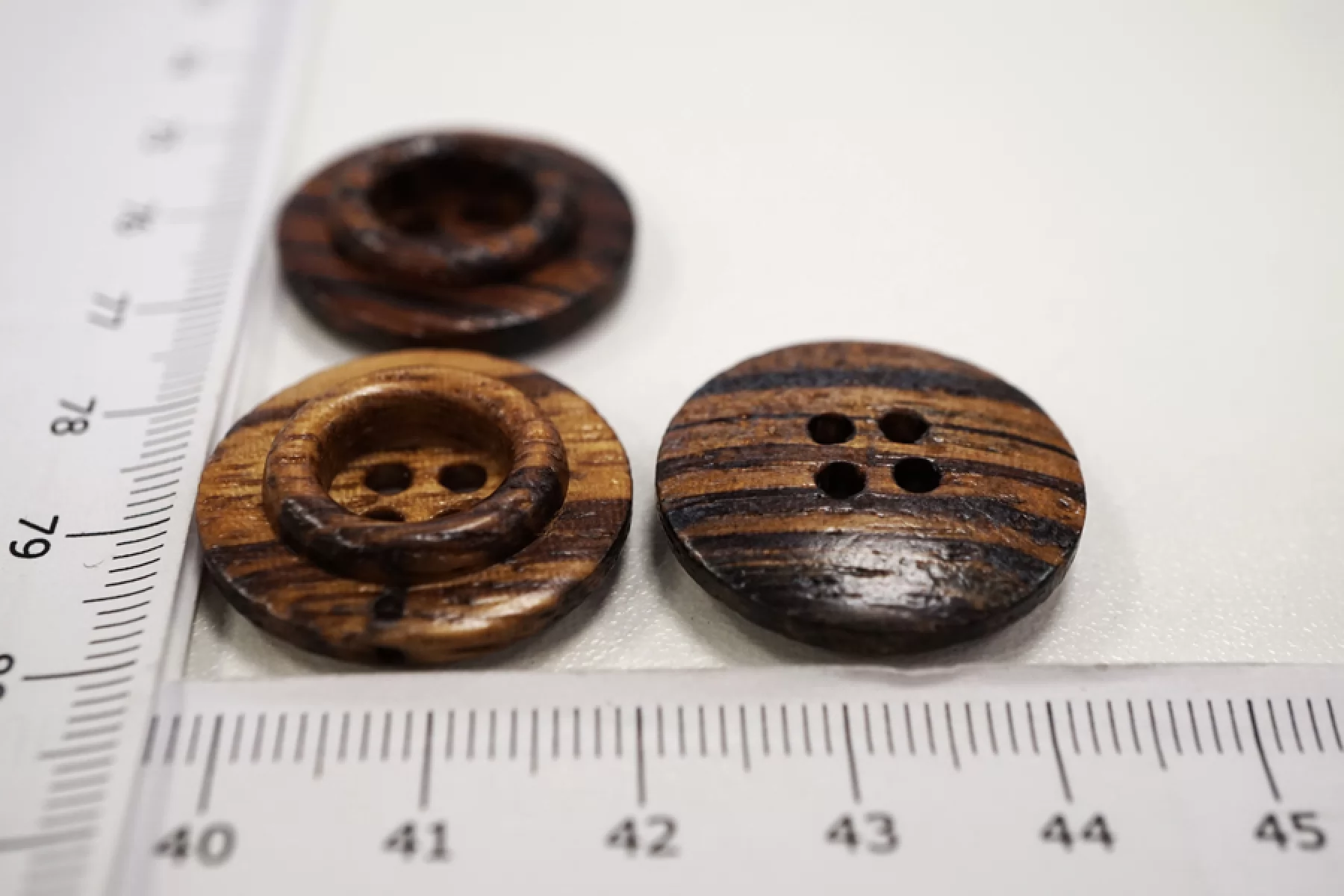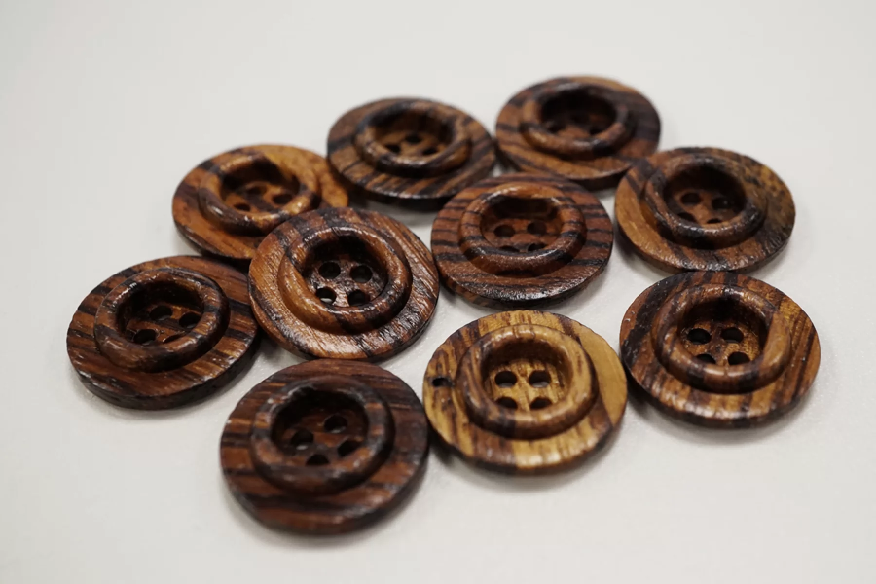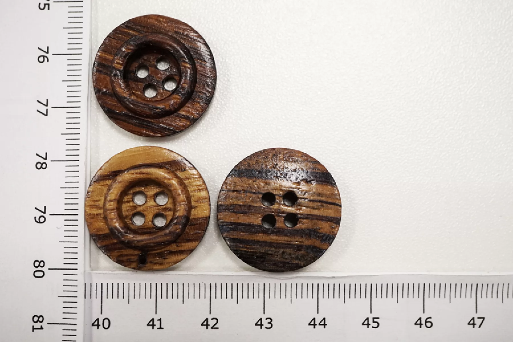 Пуговица костюмная из дерева, размер 20 мм, цвета дерева с характерными для древесины темными полосами.