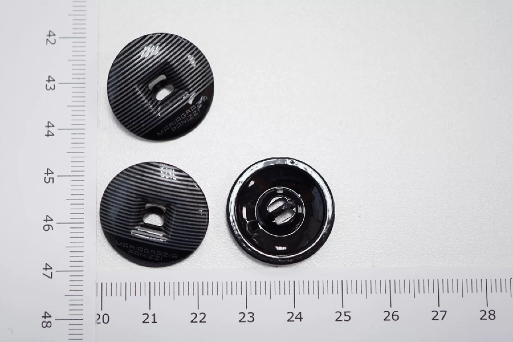 Пуговица костюмно-пальтовая "Mariagrazia Panizzi" металл черная в полоску 23 мм PRT (j2) 08102006