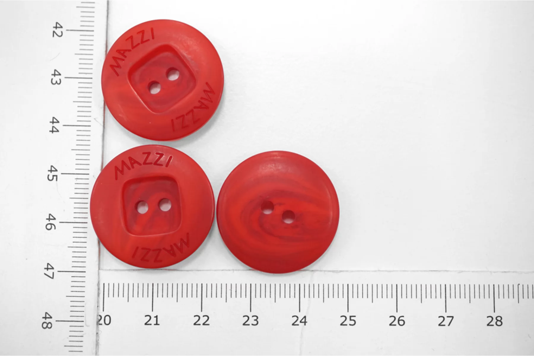 Пуговица костюмно-пальтовая Mazzi из пластмассы, размер 25 мм, красно-рыжего цвета, с волнообразным узором.