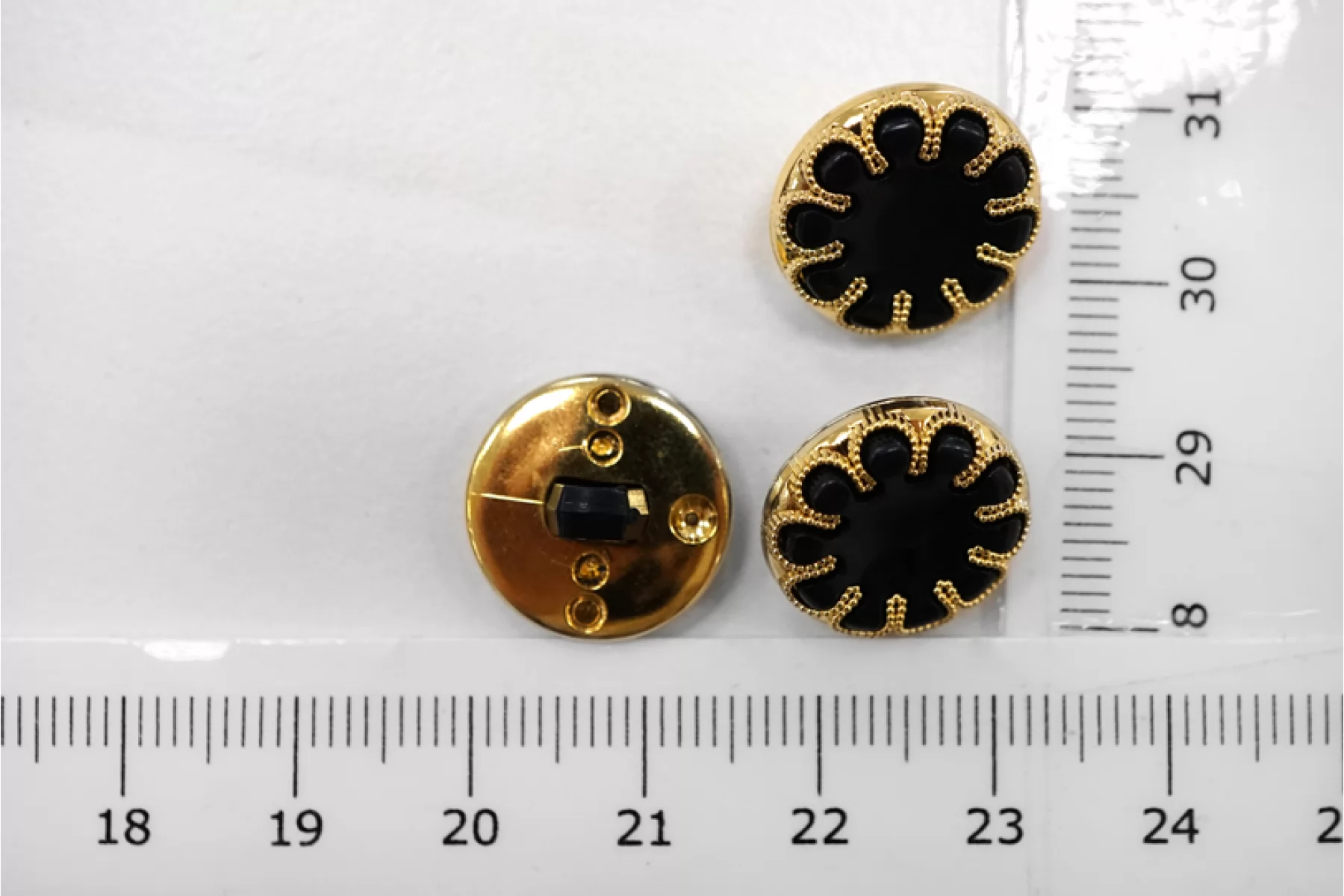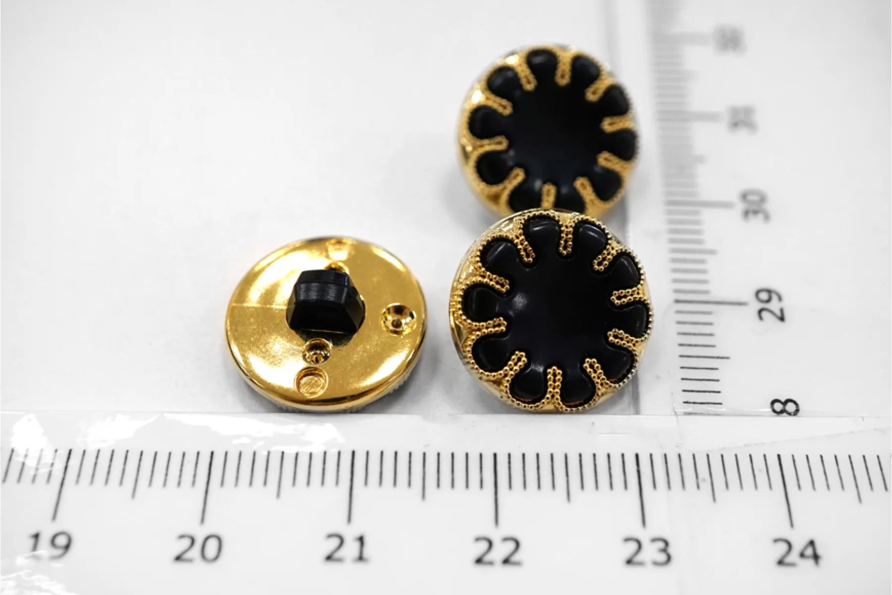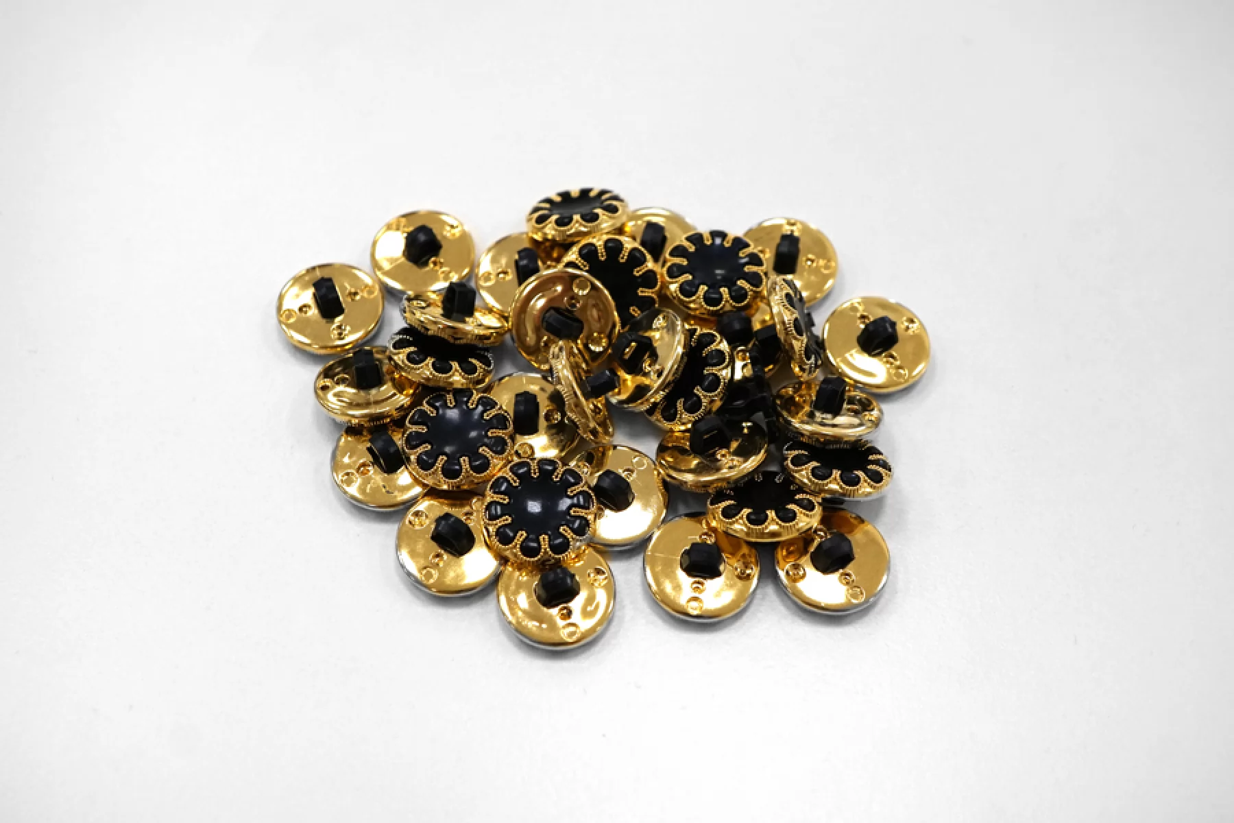 Пуговица костюмно-пальтовая на ножке пластик черно-золотистая 15 мм (A2) 8032201