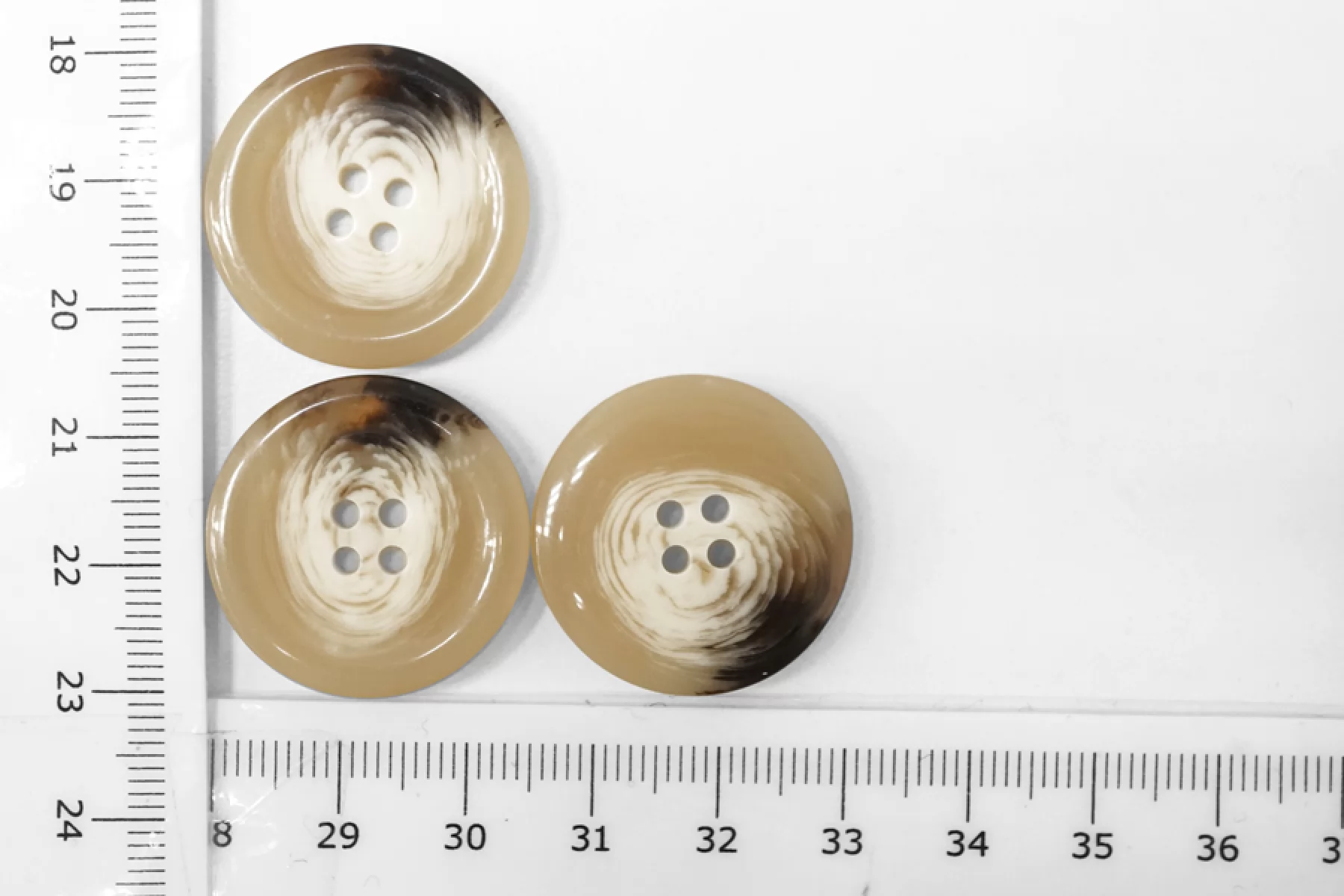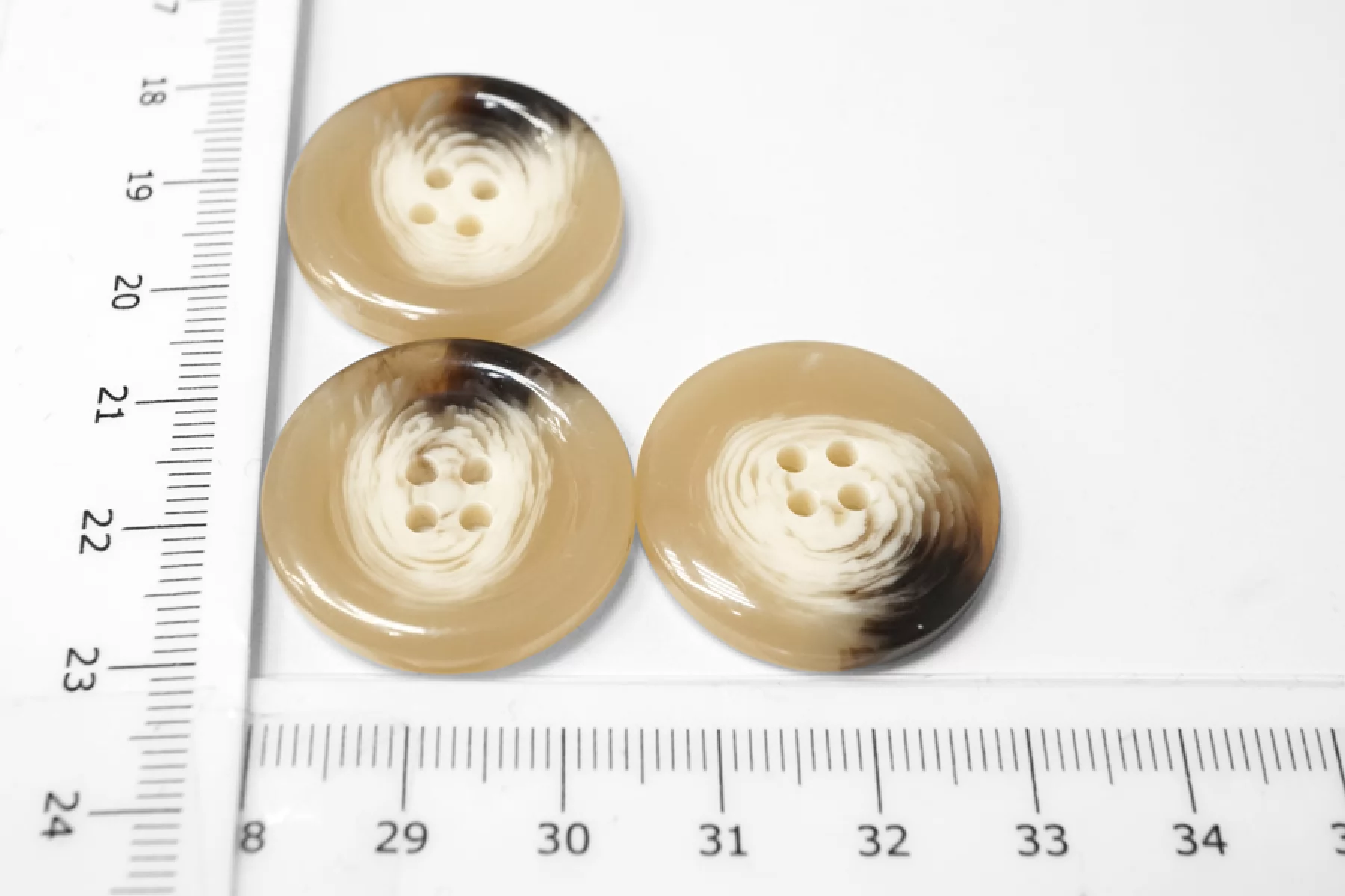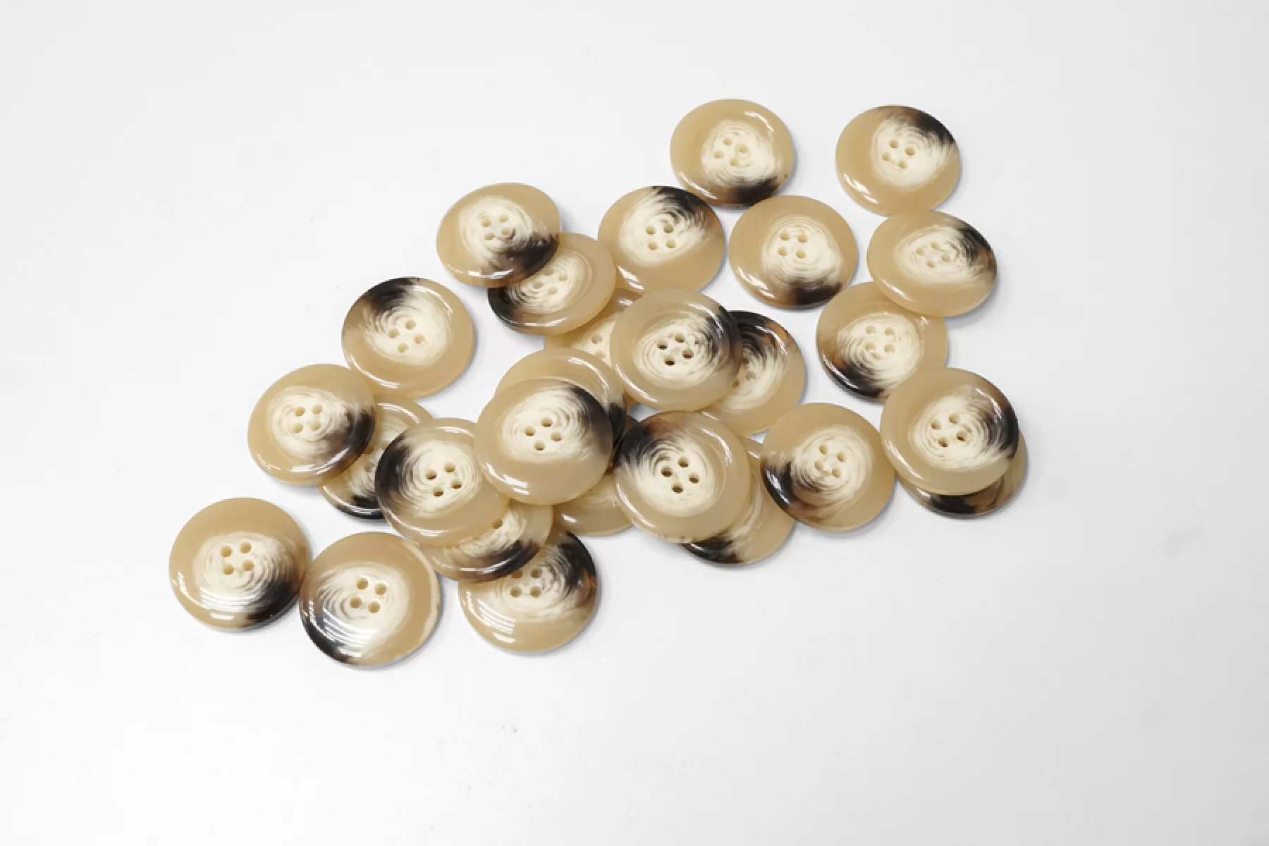 Пуговица костюмно-пальтовая пластиковая, глянцевая, полупрозрачная, размер 26 мм, бежевого цвета с молочно-черным пятном.