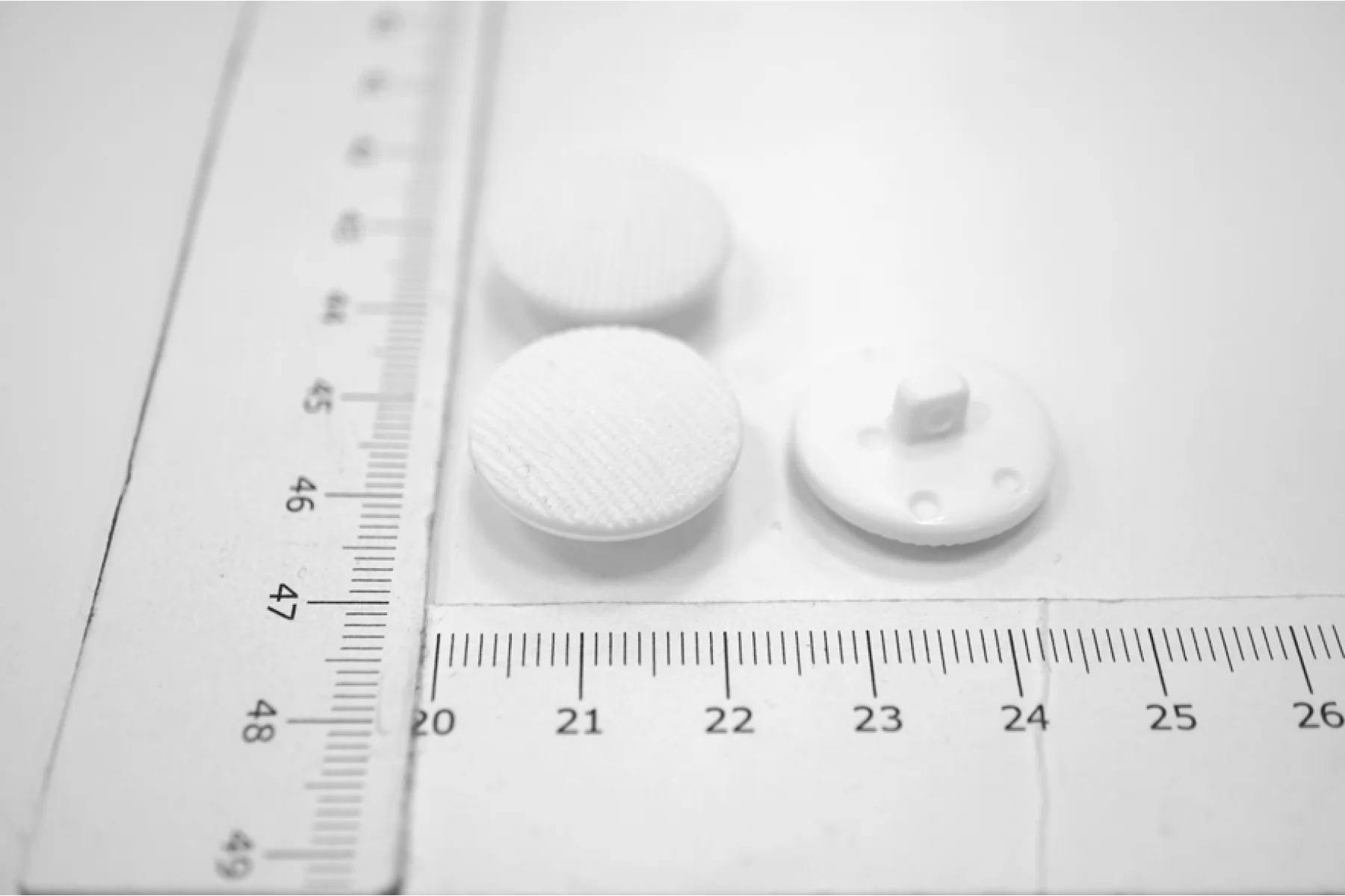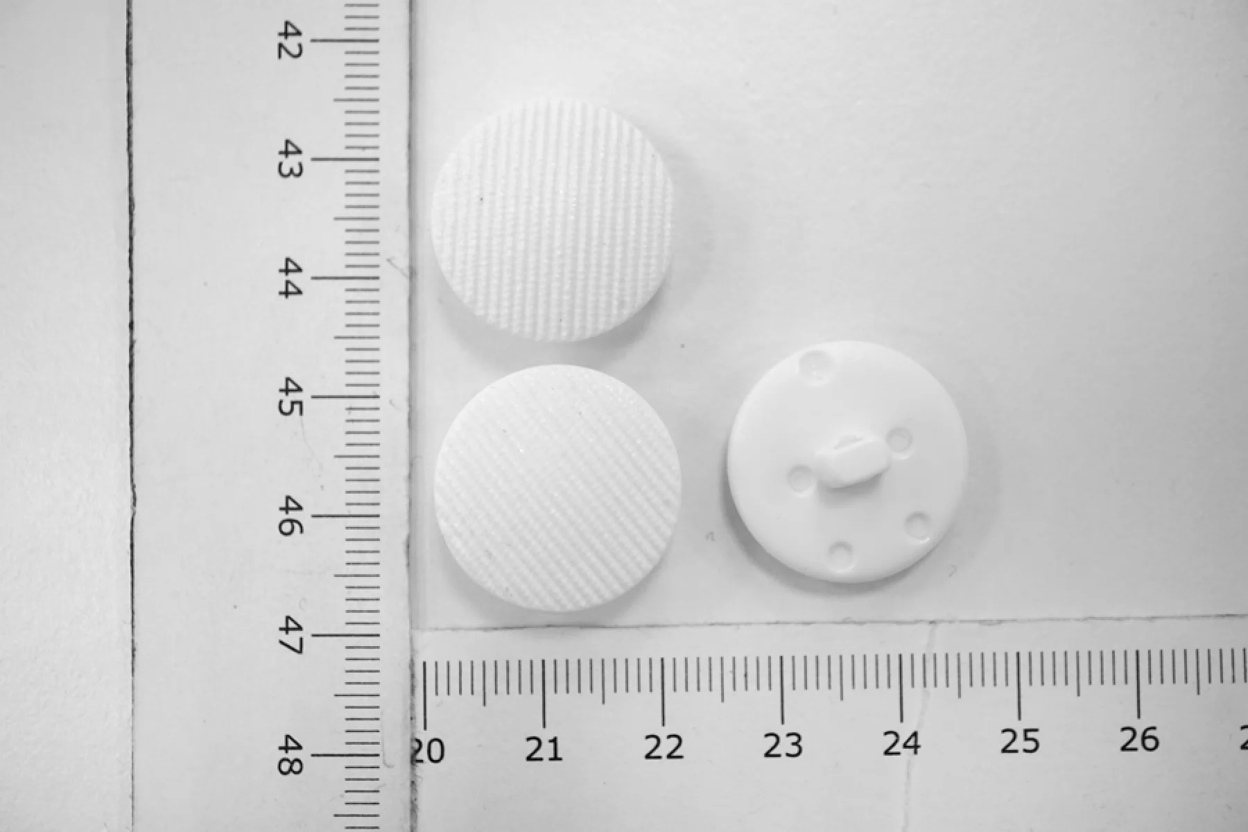 Пуговица костюмно-пальтовая из пластмассы, размер 20 мм, на ножке, белого цвета.