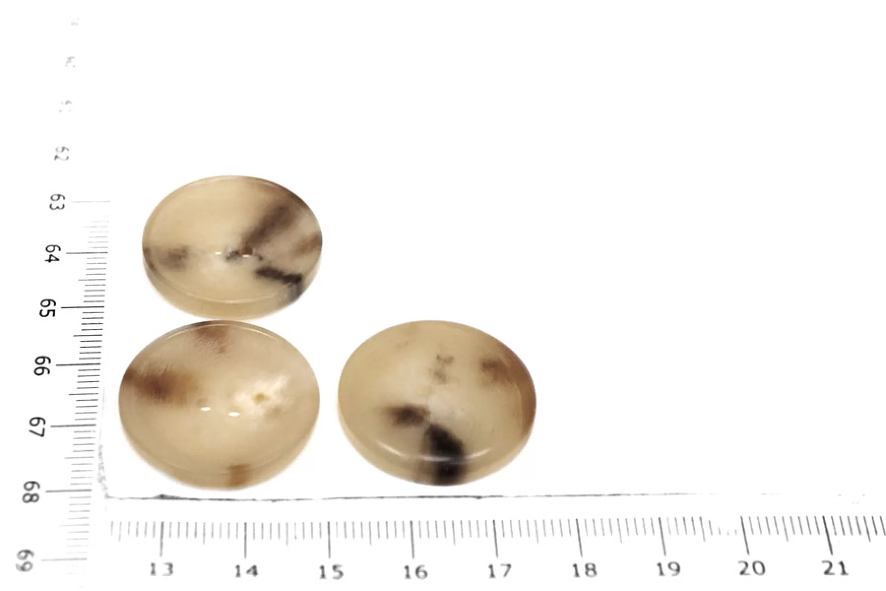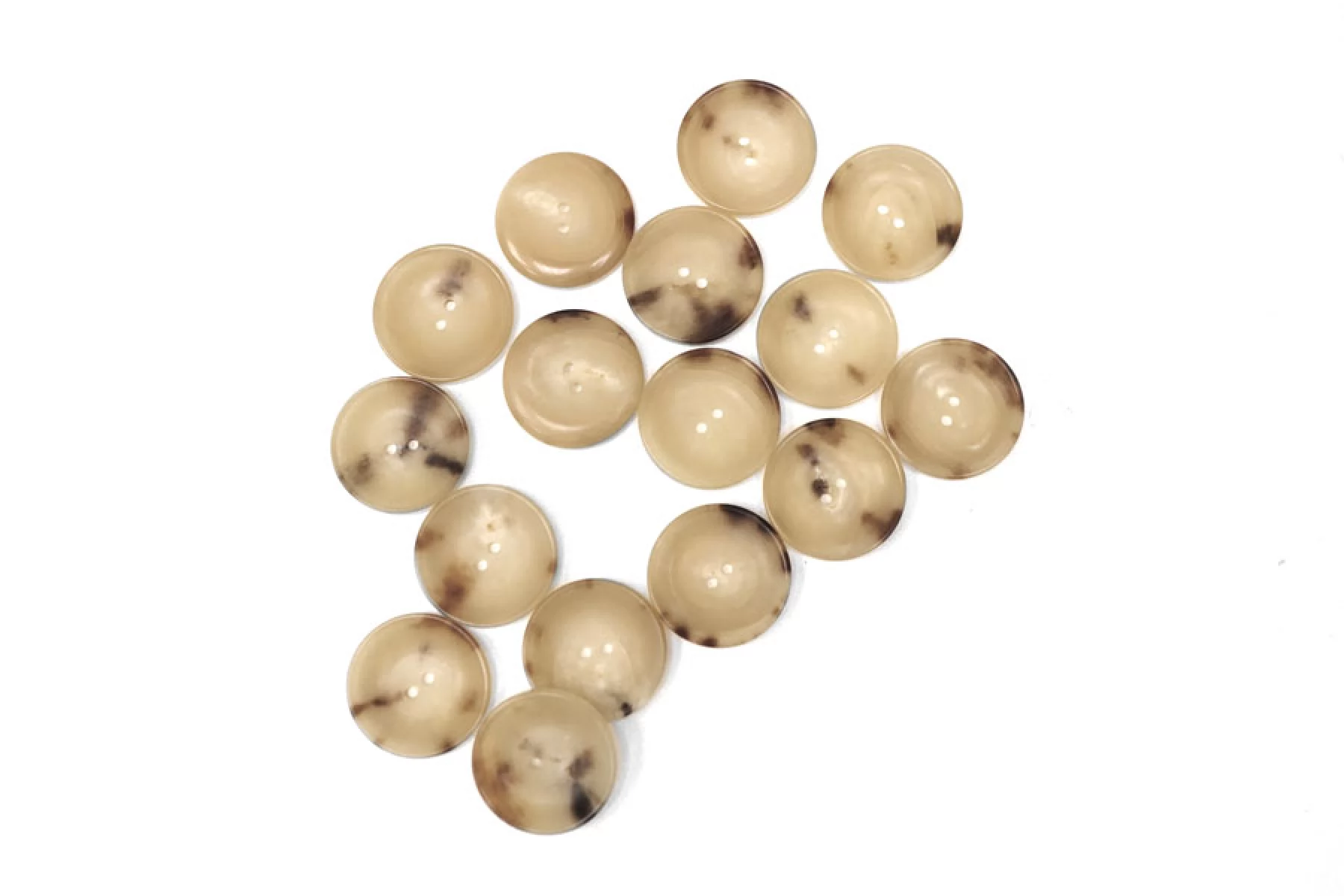Пуговица костюмно-пальтовая из пластмассы, размер 25 мм, под рог, бежевого цвета.