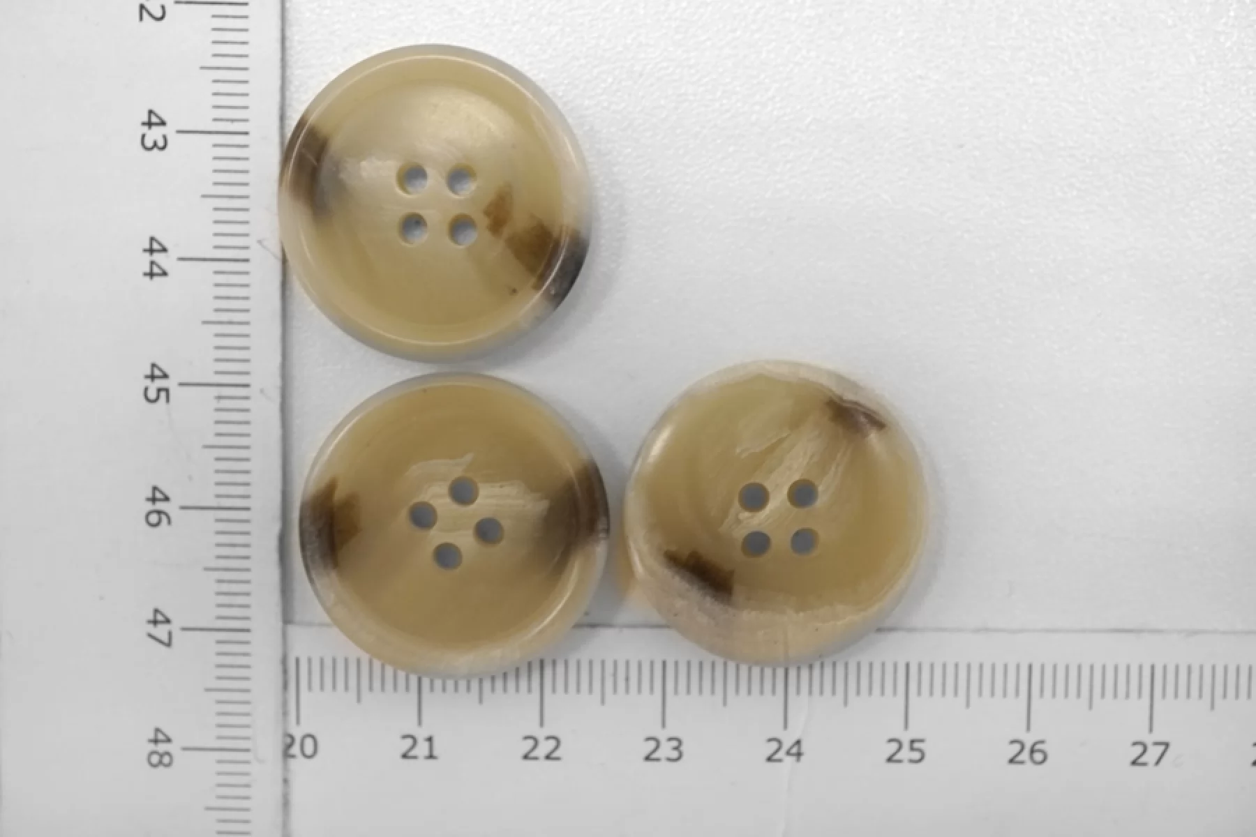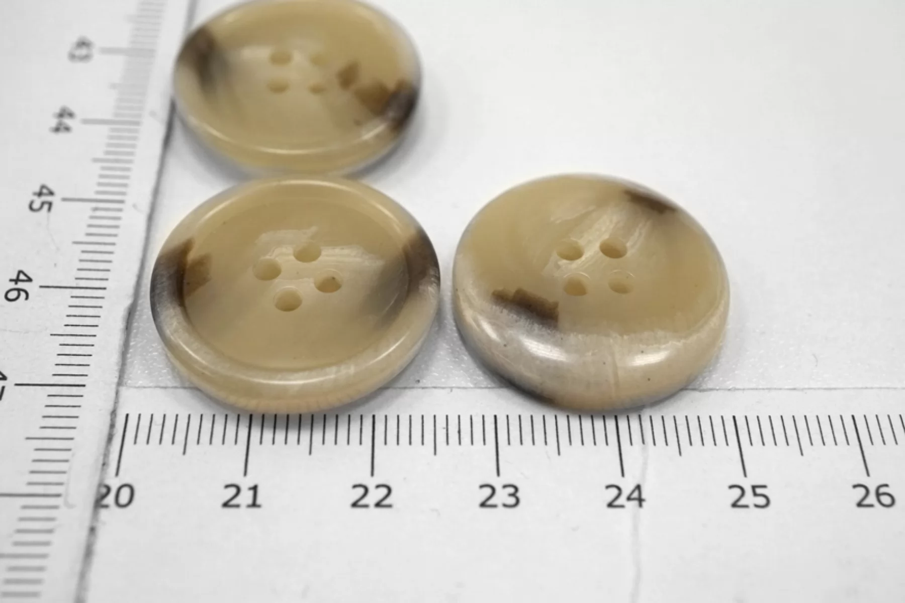 Пуговица костюмно-пальтовая из пластмассы, размер 24 мм, под рог, бежево-серого цвета.