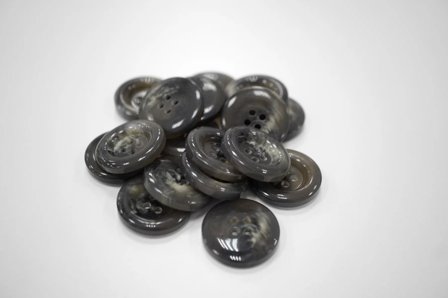 Пуговица костюмно-пальтовая из пластмассы, под рог, размер 22 мм, черно-серого цвета.