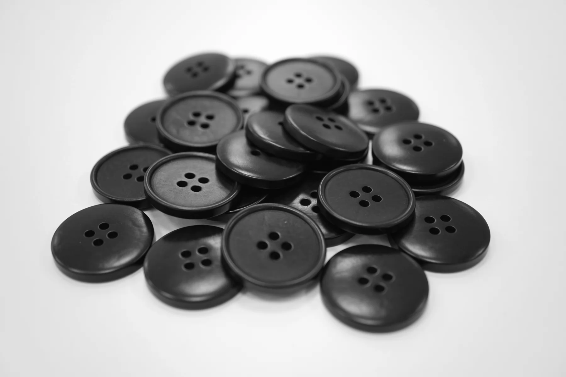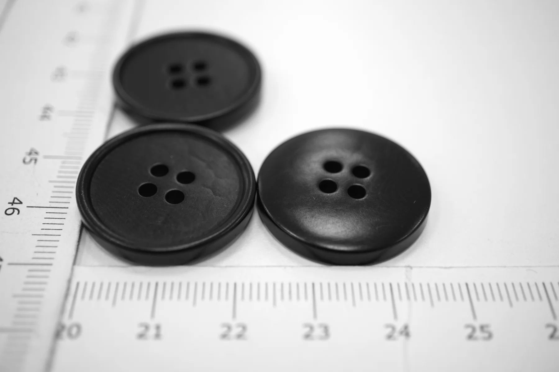 Пуговица костюмно-пальтовая из пластмассы, размер 25 мм, чёрного цвета.