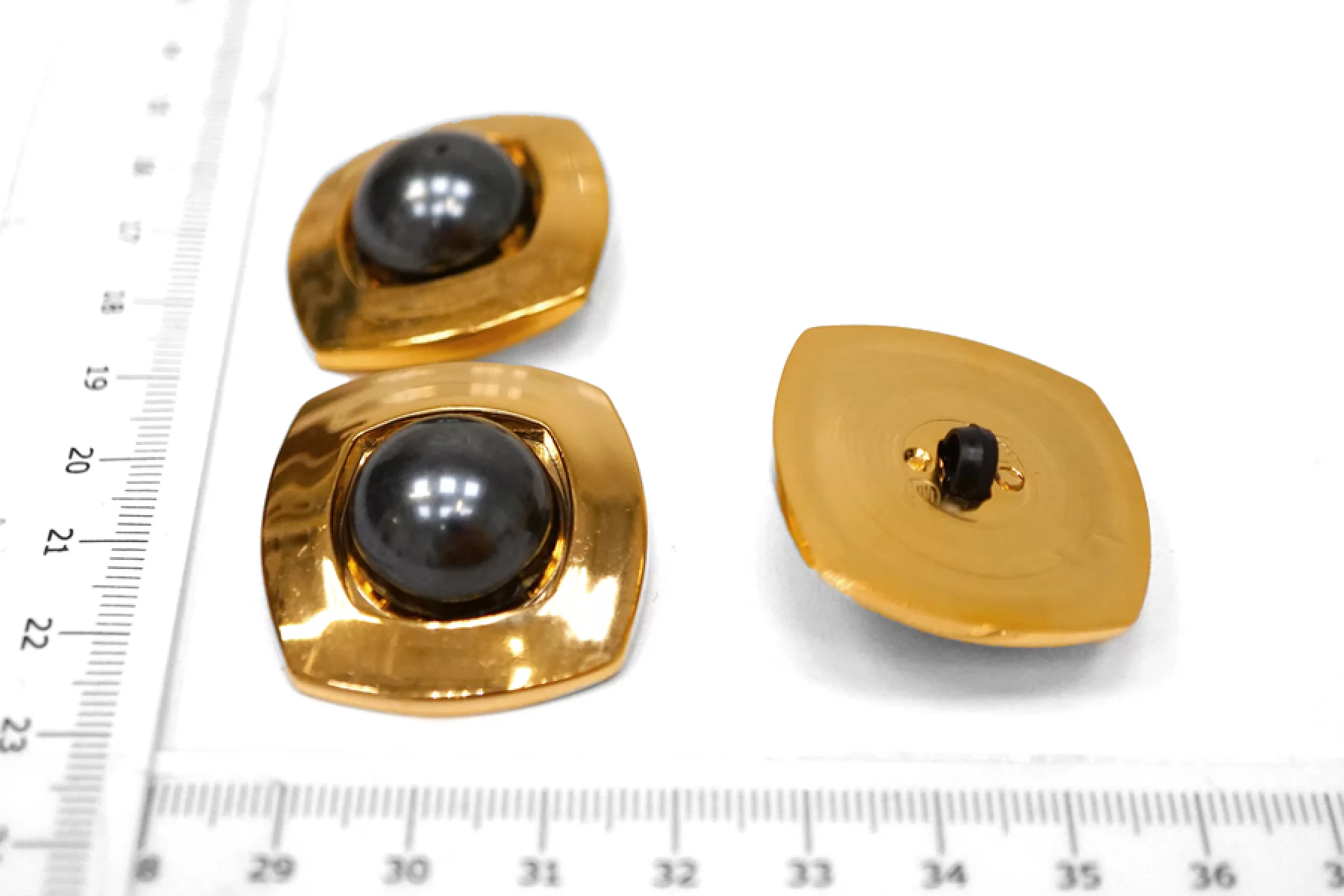 Пуговица костюмная пластиковая сераяс золотом , размер 32 мм, на ножке.
